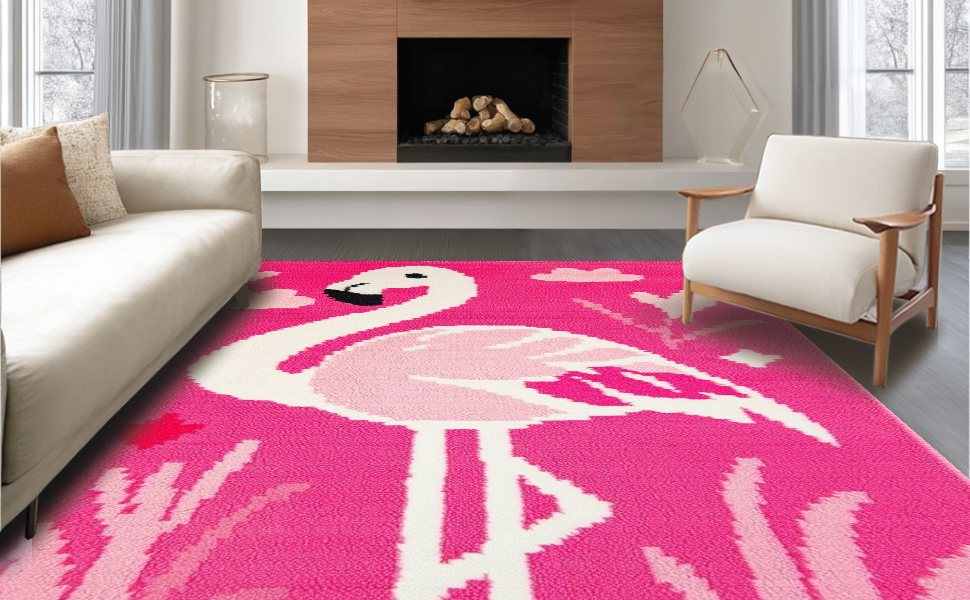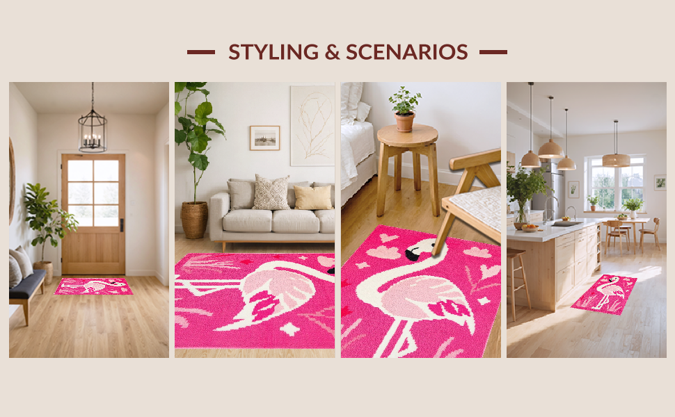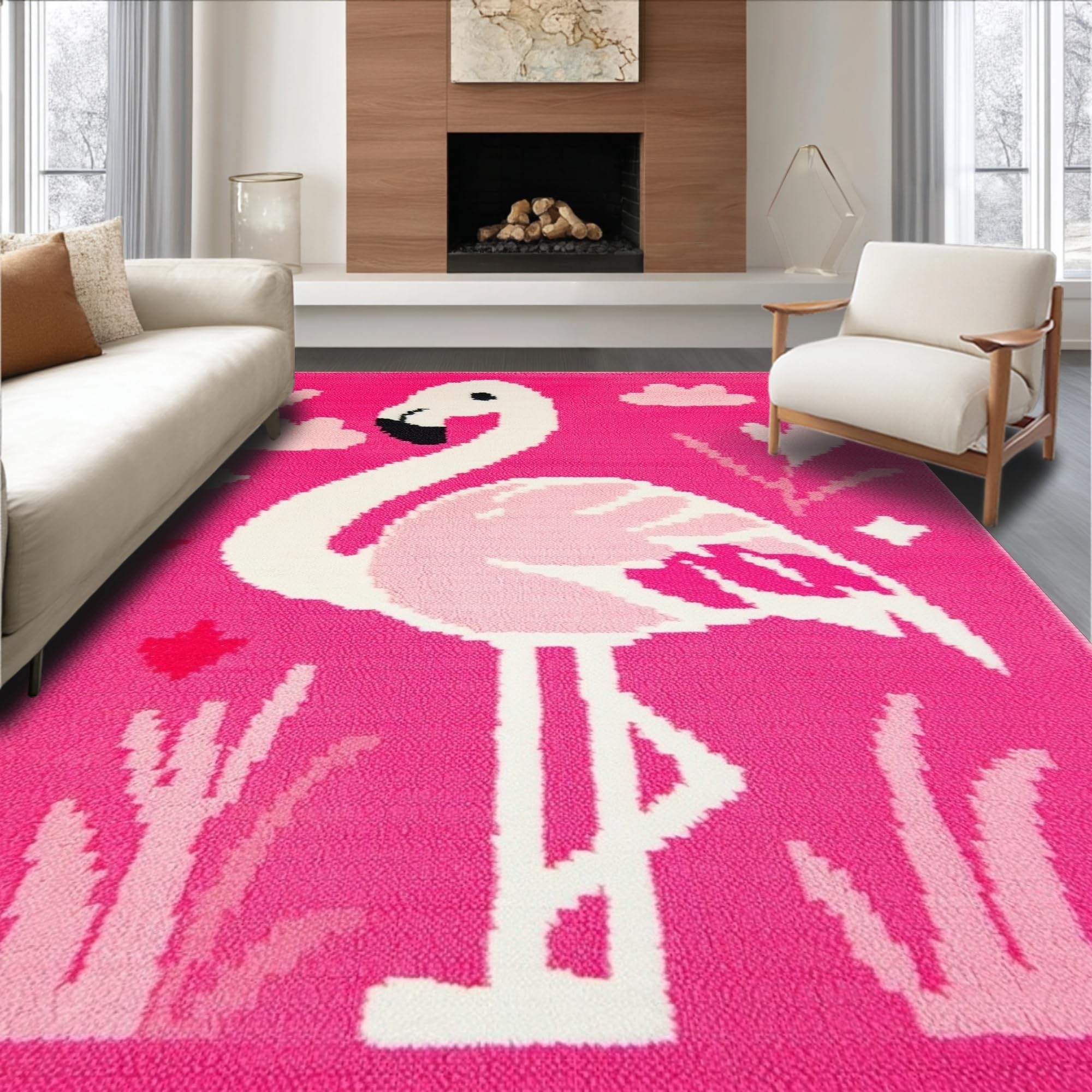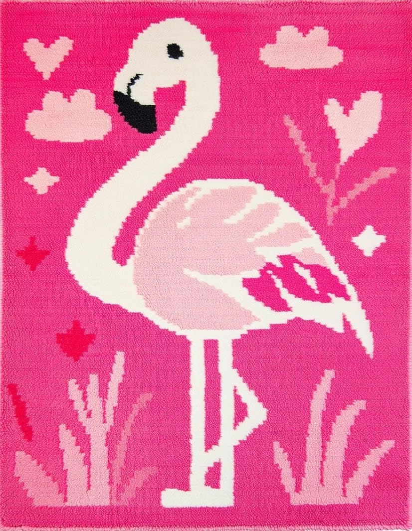 Ultra Soft Area Rug, Non Slip, Stain Resistant, Washable Area Rugs for Living Room, Bedroom, Lively Cartoon Flamingo Illustration(Pink) Overview: