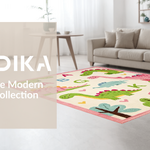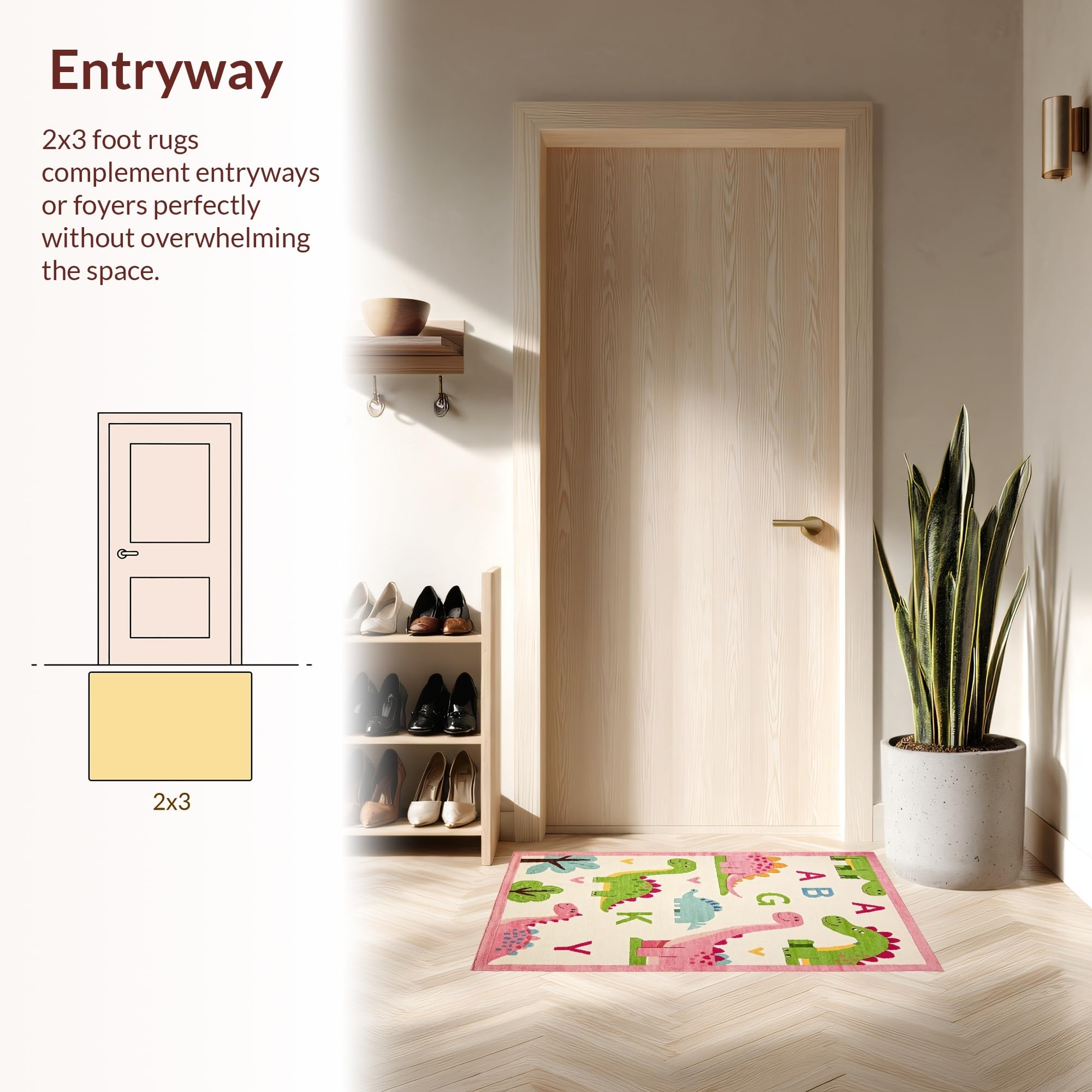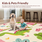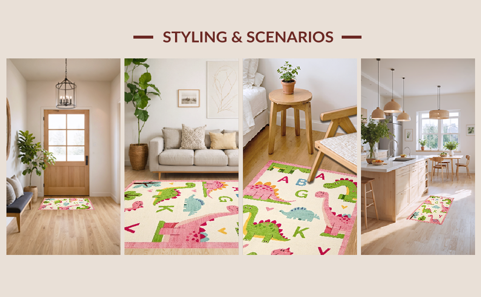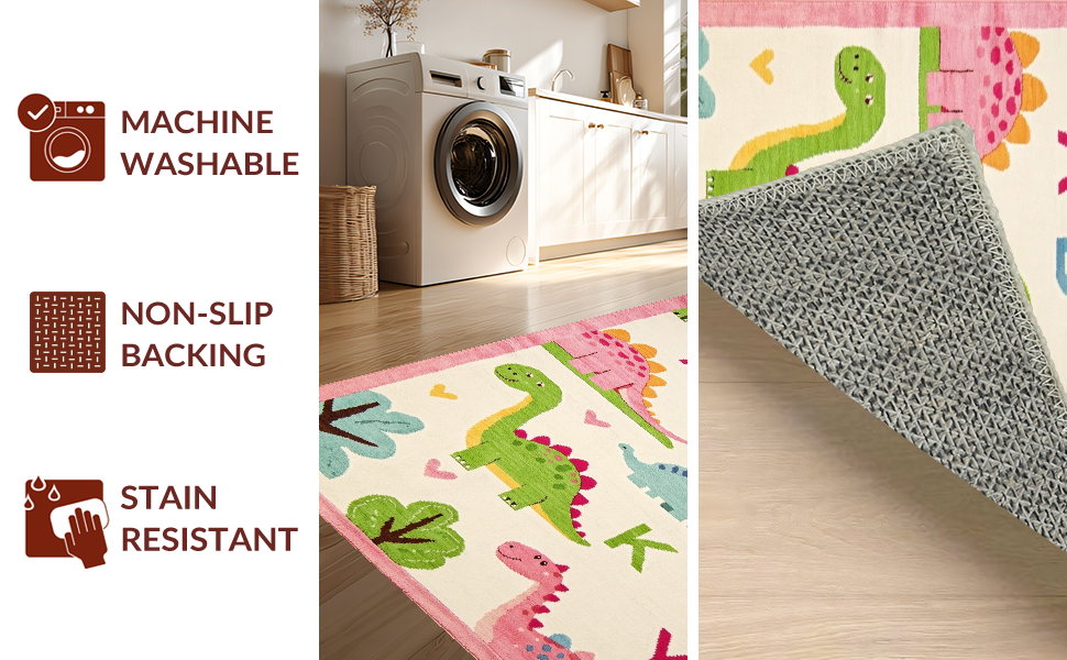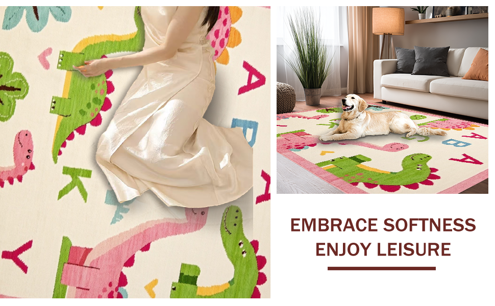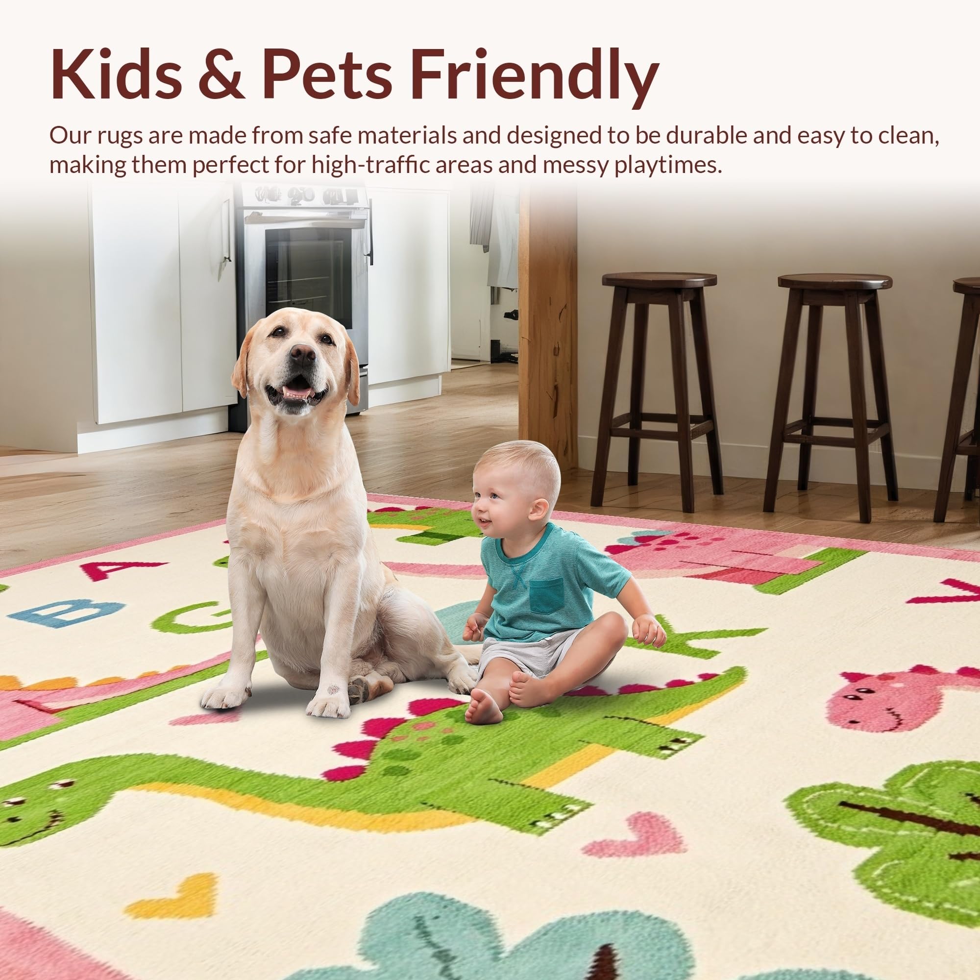 Ultra Soft Area Rug, Non Slip, Stain Resistant, Washable Area Rugs for Living Room, Bedroom, Lively Cartoonish Dino Character Layout(Pink) Overview: