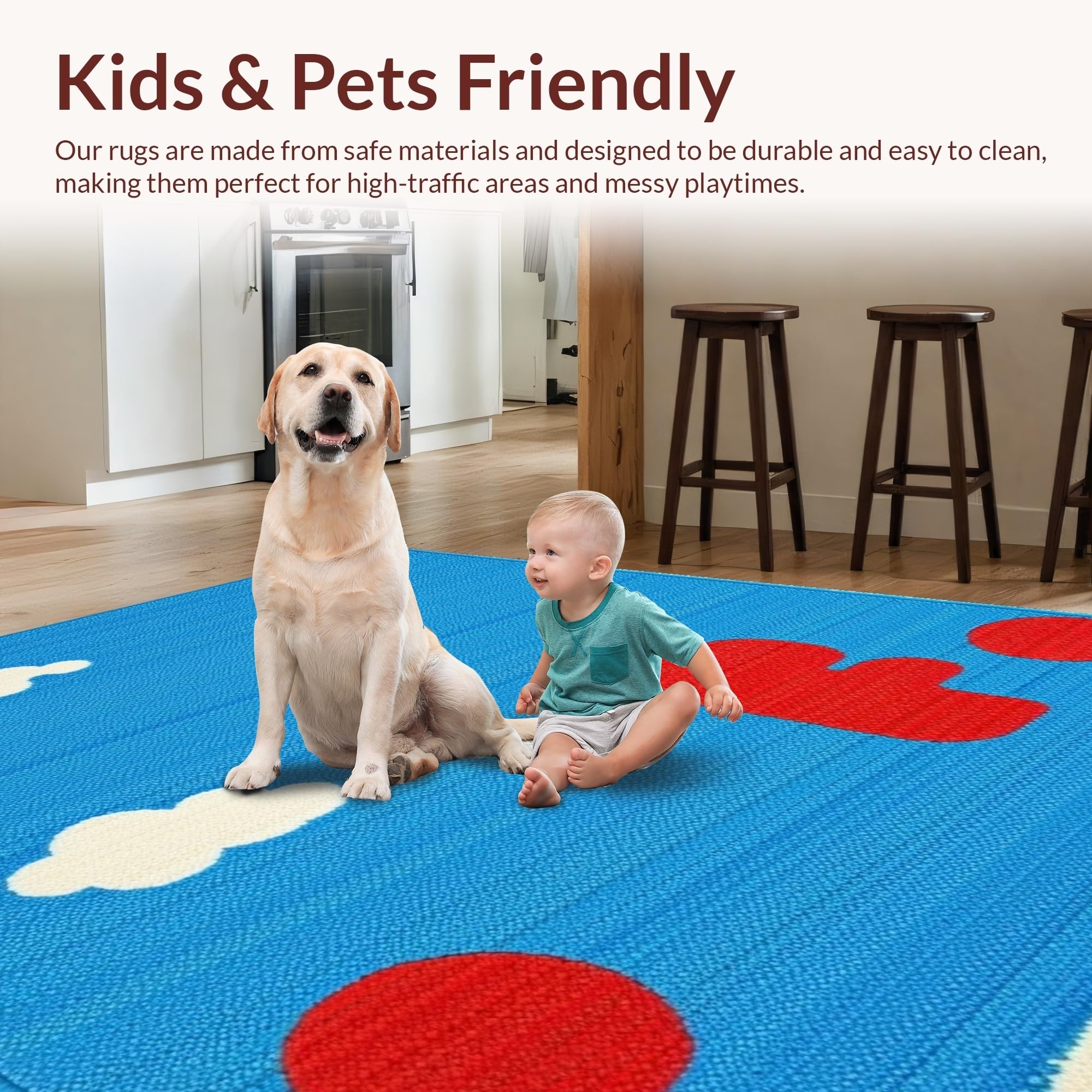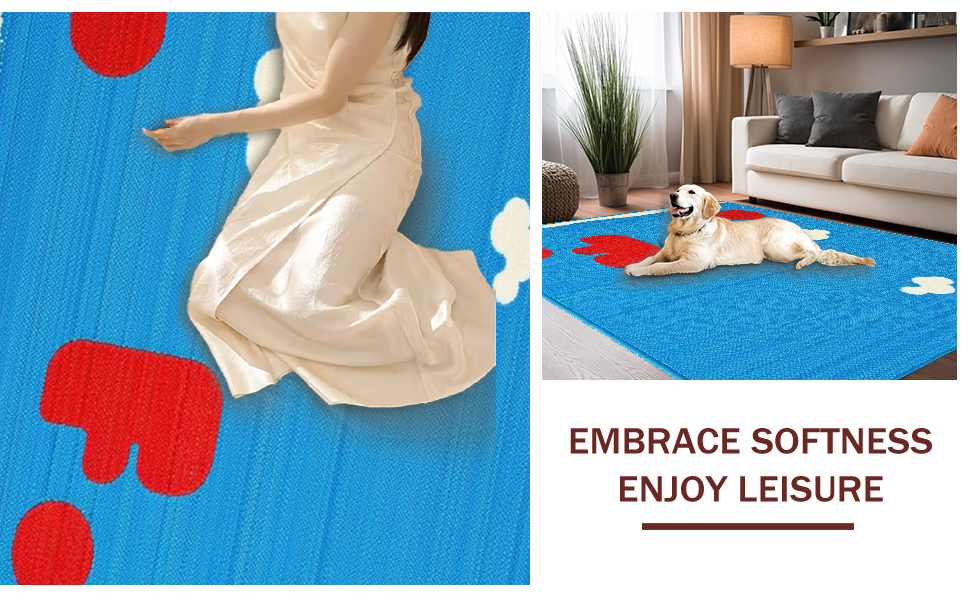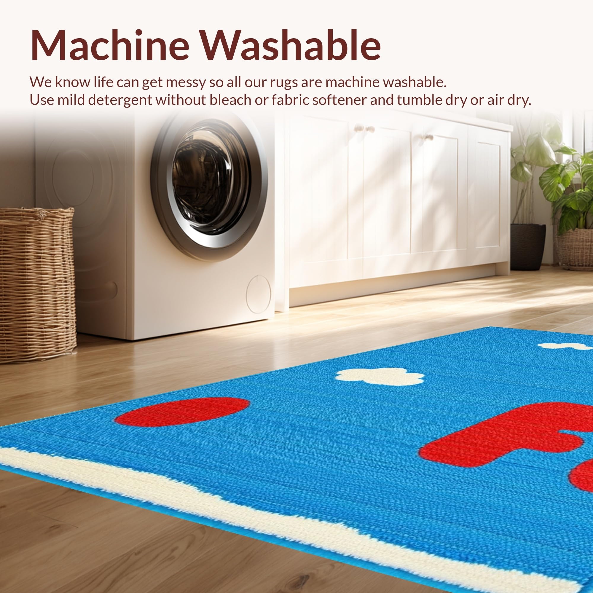 Ultra Soft Area Rug, Non Slip, Stain Resistant, Washable Area Rugs for Living Room, Bedroom, Lively Cartoonish Patterned Style(Blue) Overview: