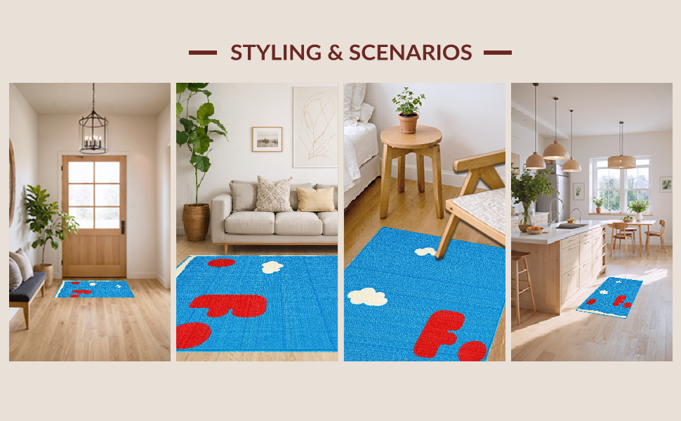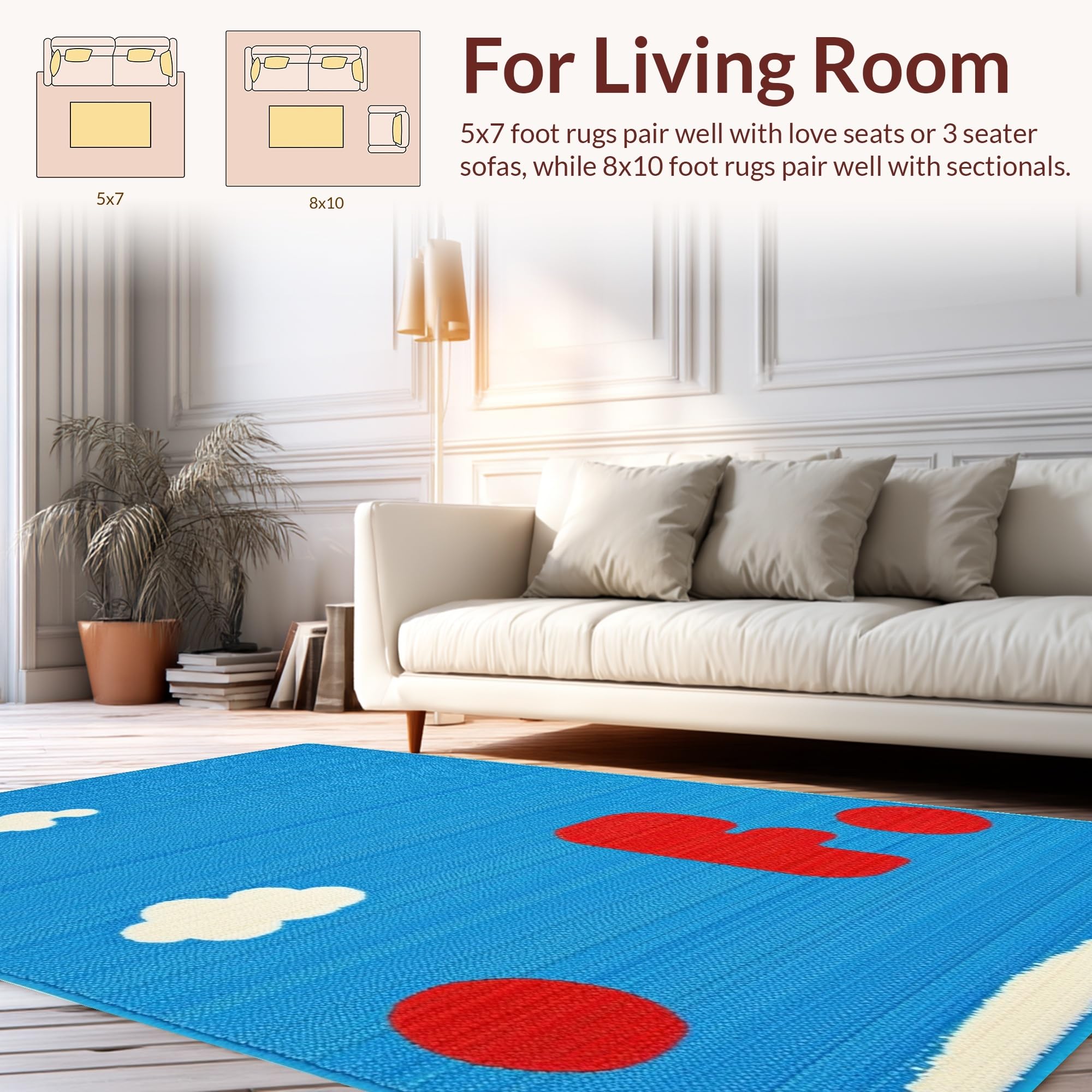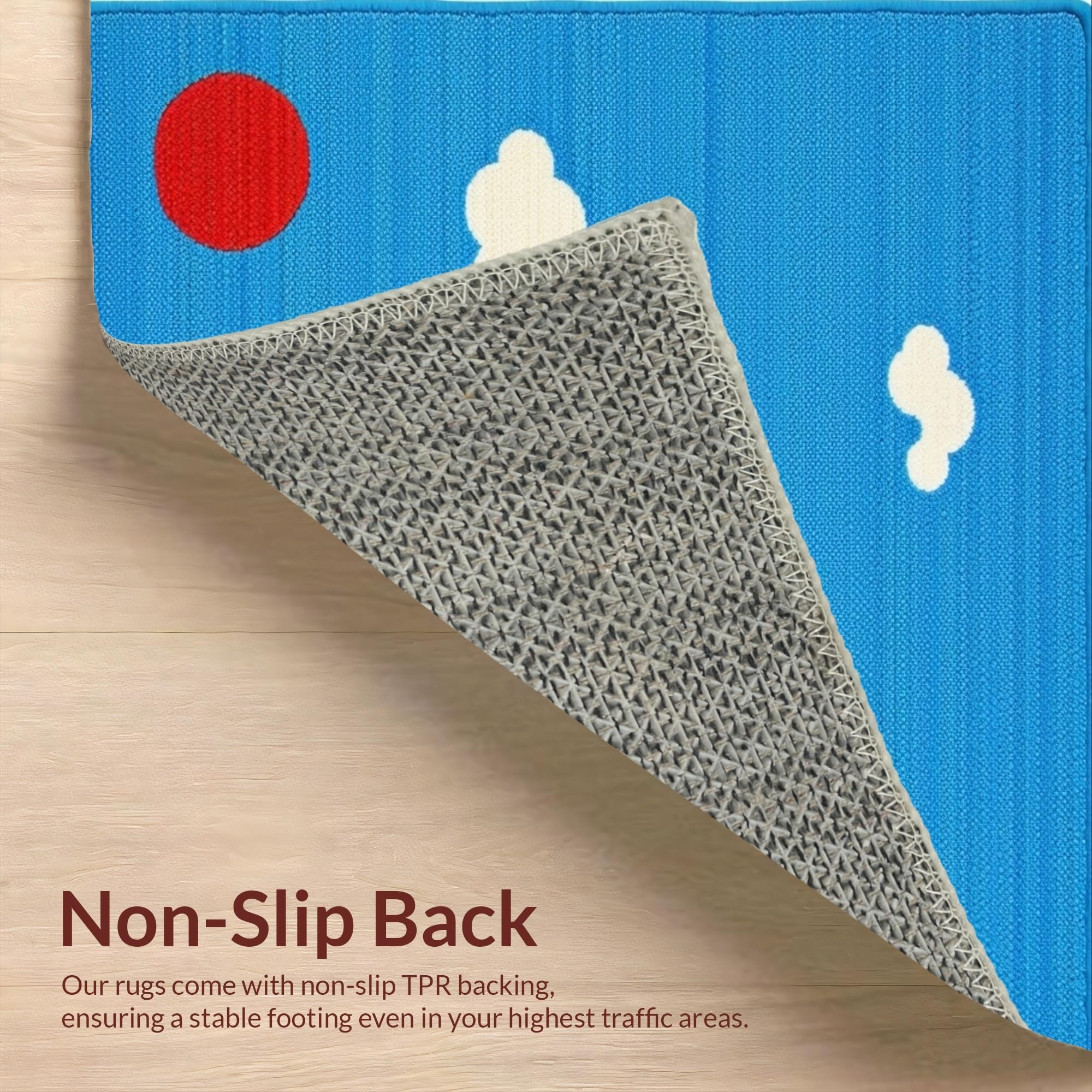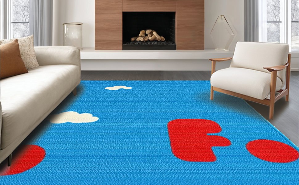 Ultra Soft Area Rug, Non Slip, Stain Resistant, Washable Area Rugs for Living Room, Bedroom, Lively Cartoonish Patterned Style(Blue) Overview: