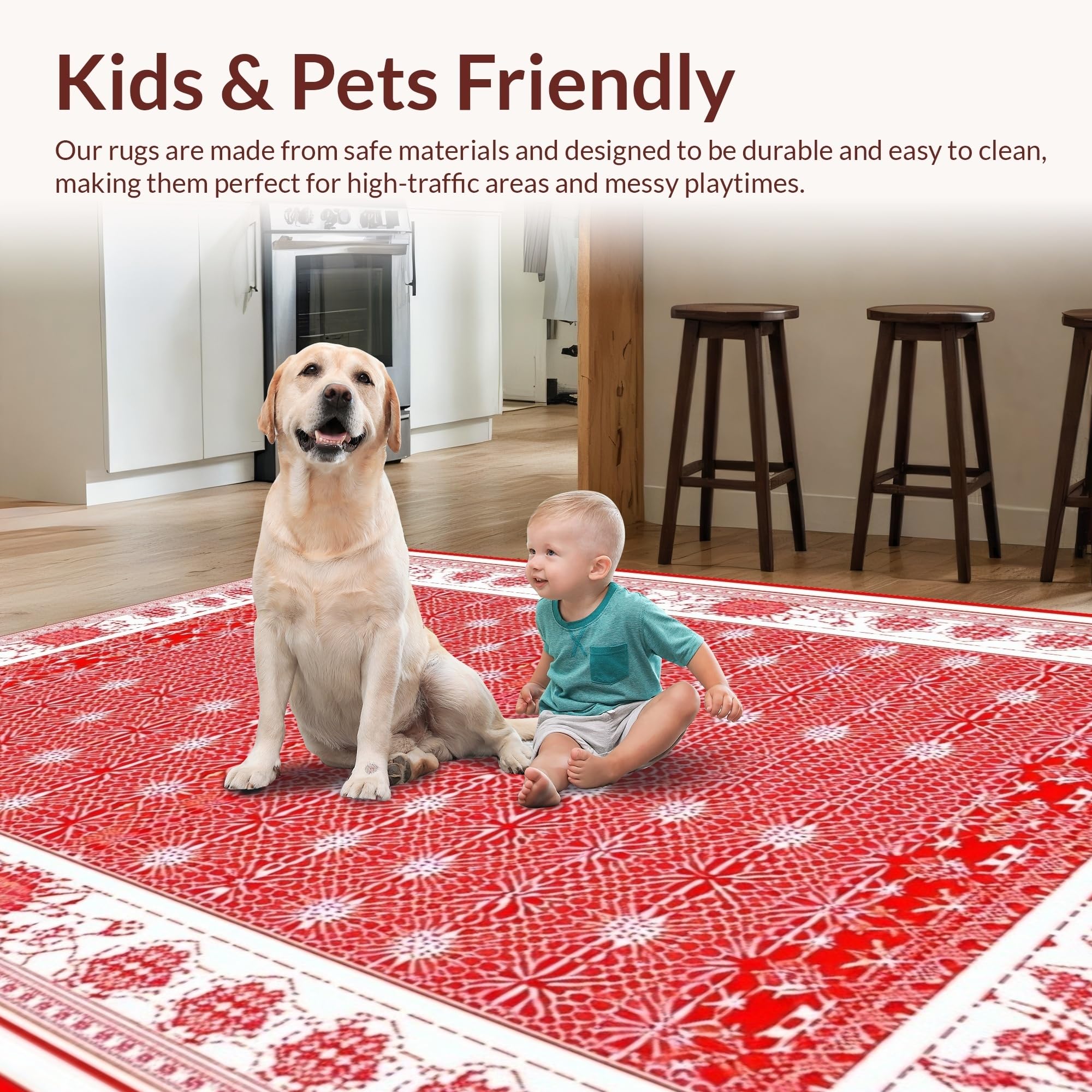Ultra Soft Area Rug, Non Slip, Stain Resistant, Washable Area Rugs for Living Room, Bedroom, Lively Cartoonish Spider Visual Appeal(Red) Overview: