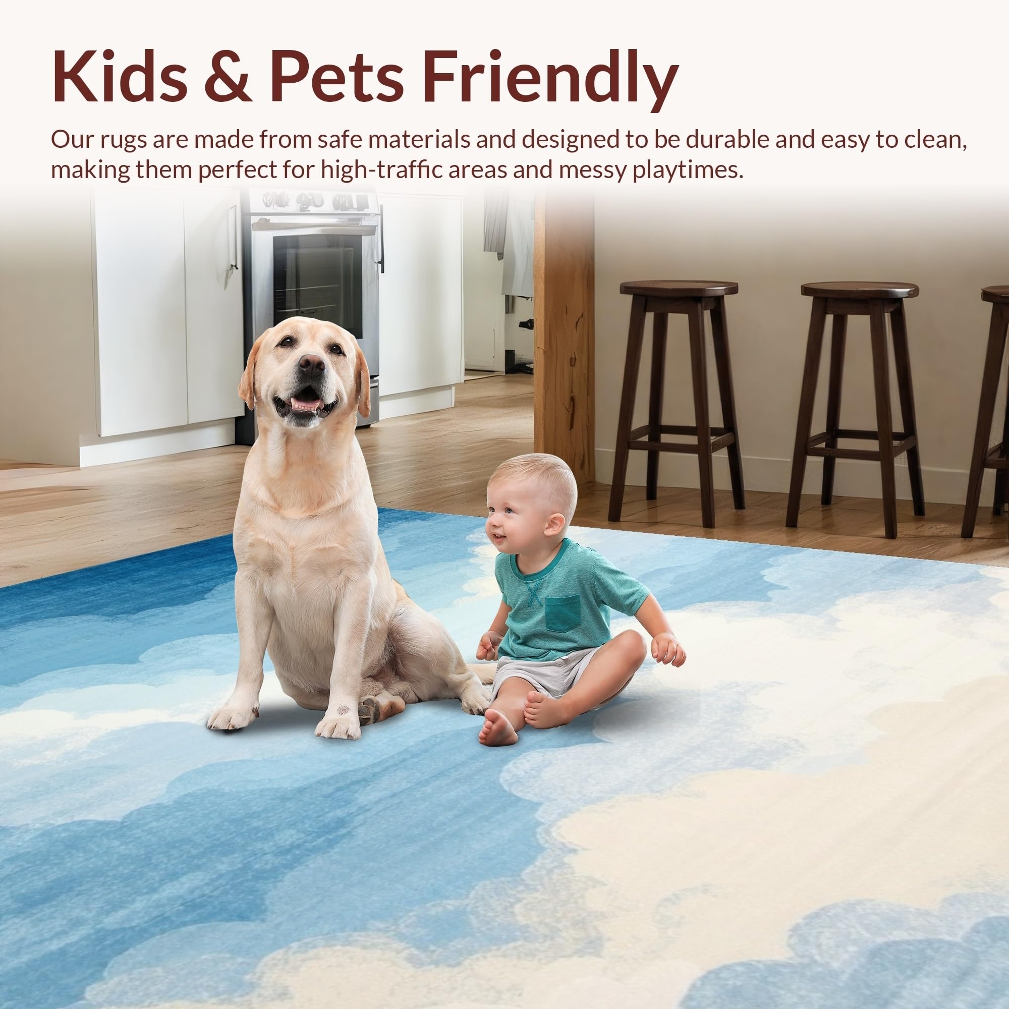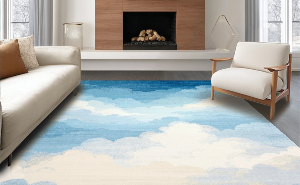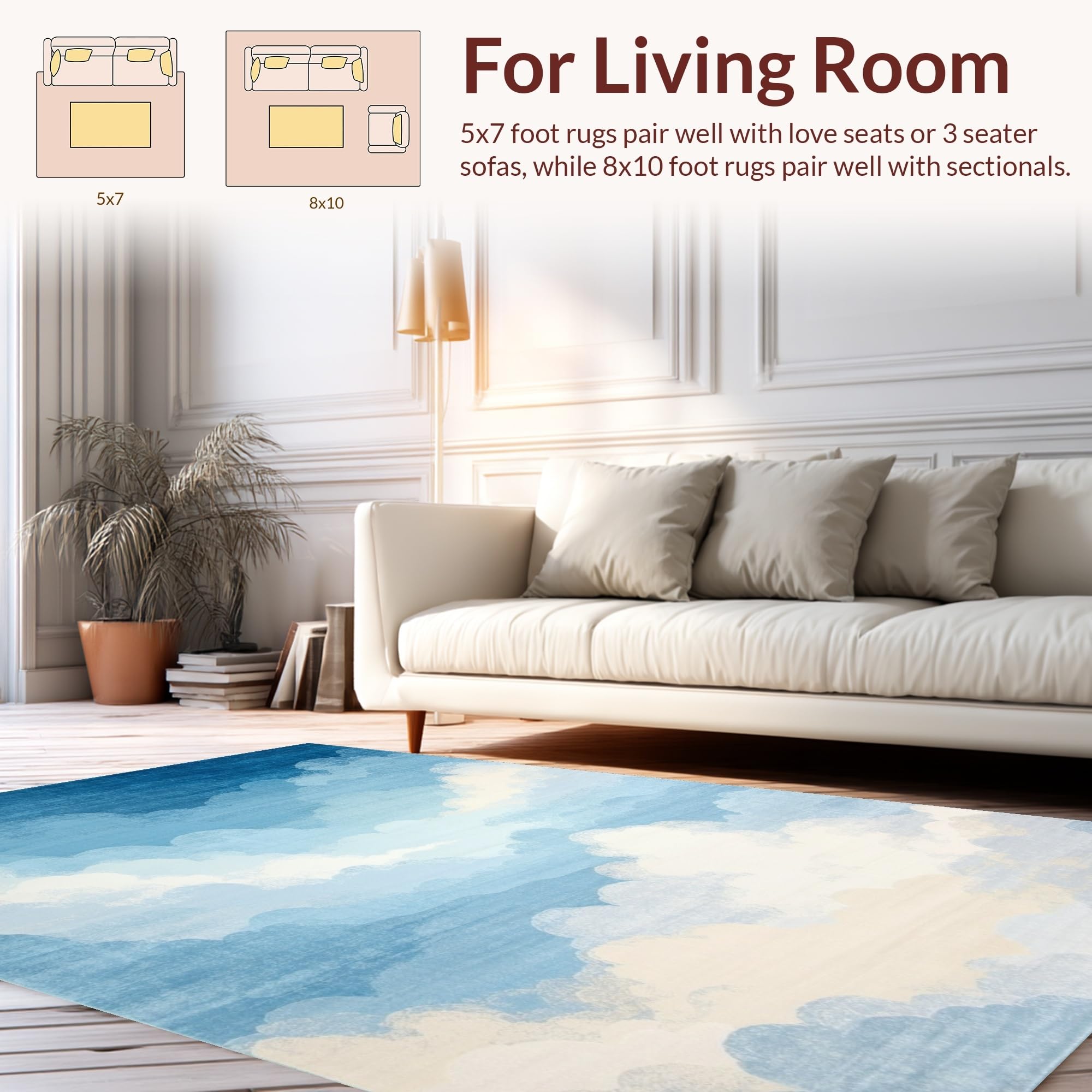 Ultra Soft Area Rug, Non Slip, Stain Resistant, Washable Area Rugs for Living Room, Bedroom, Lively Charming Blue and White Fusion(Blue) Overview: