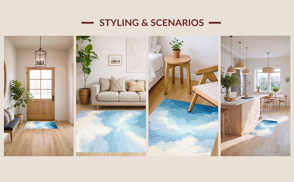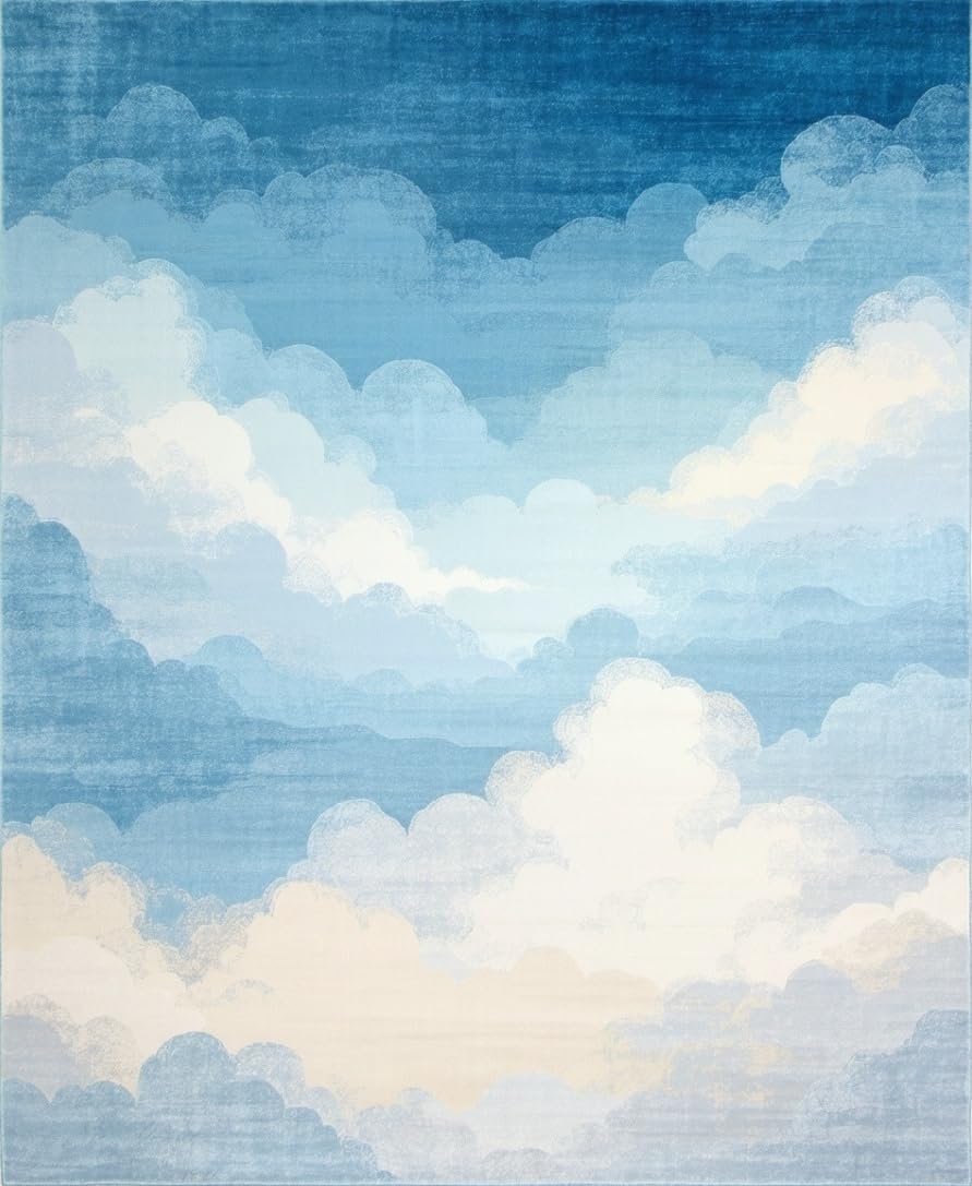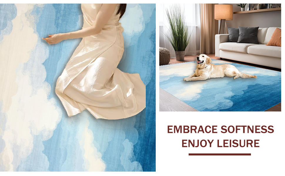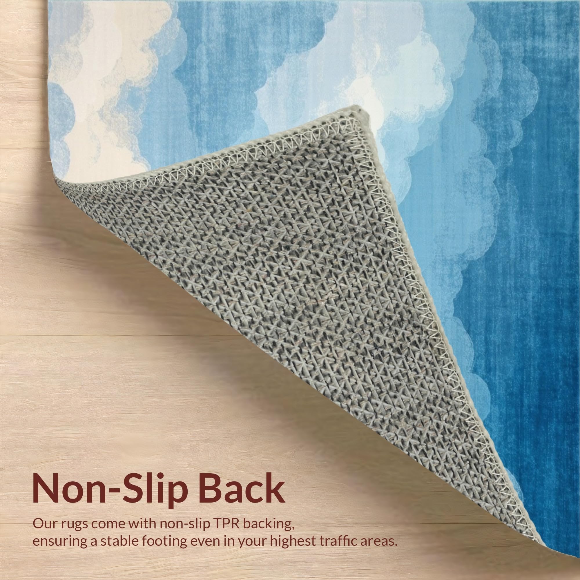 Ultra Soft Area Rug, Non Slip, Stain Resistant, Washable Area Rugs for Living Room, Bedroom, Lively Charming Blue and White Fusion(Blue) Overview: