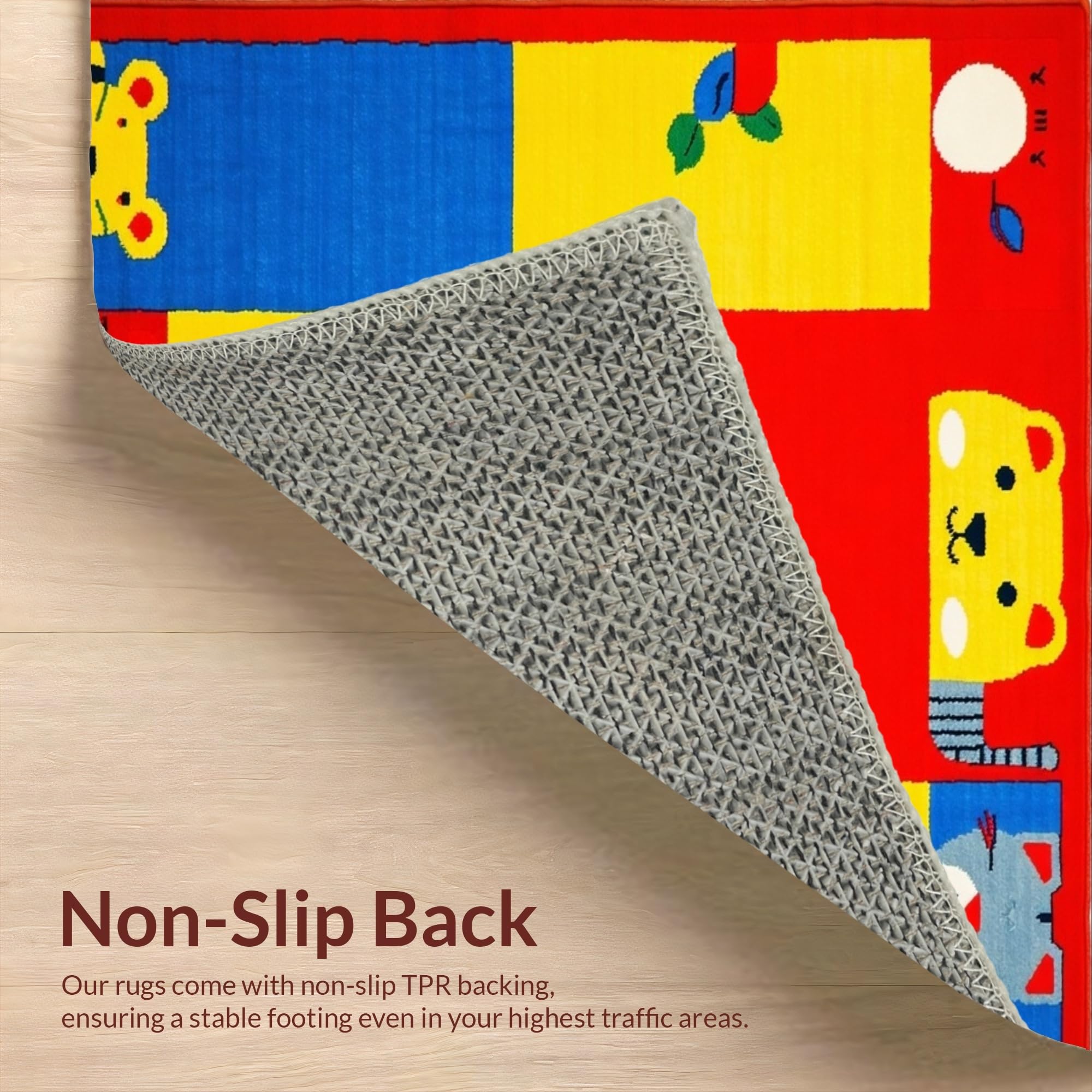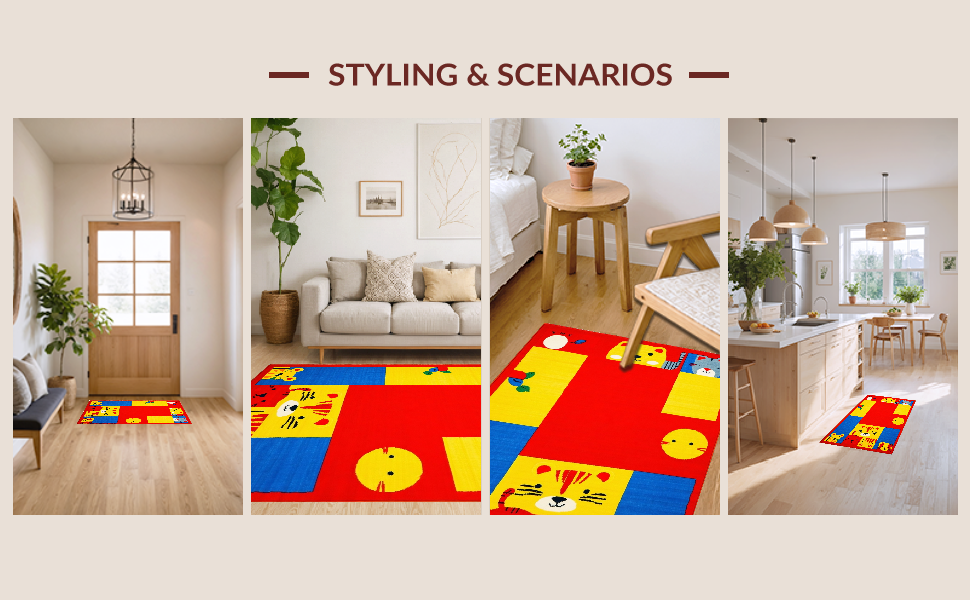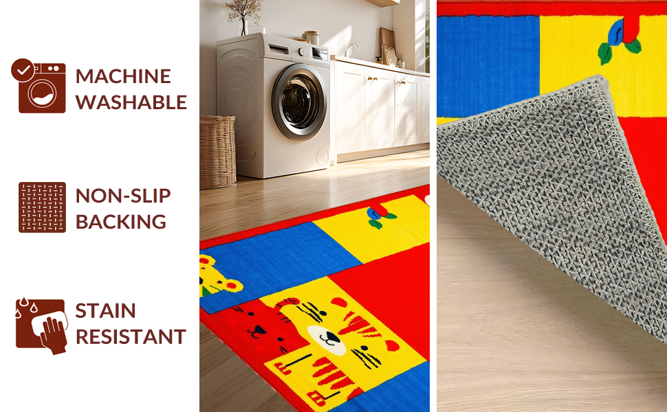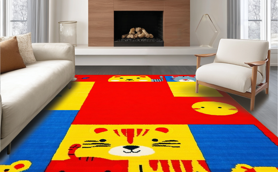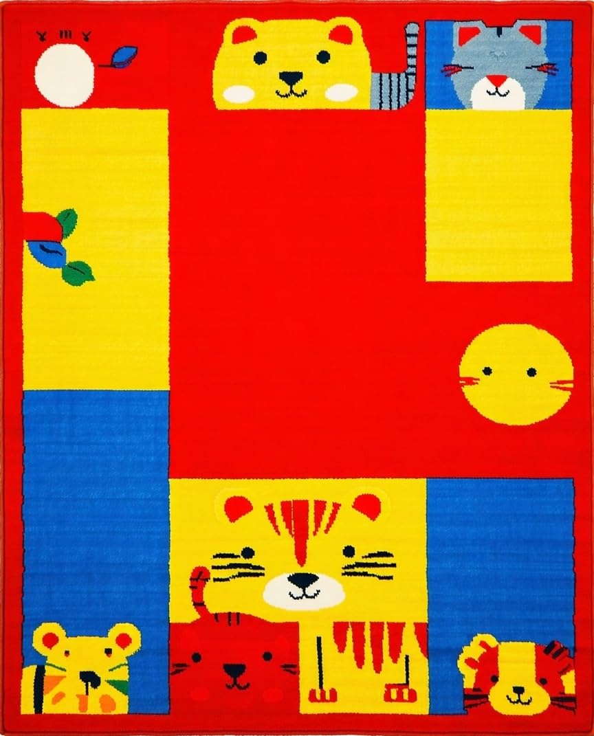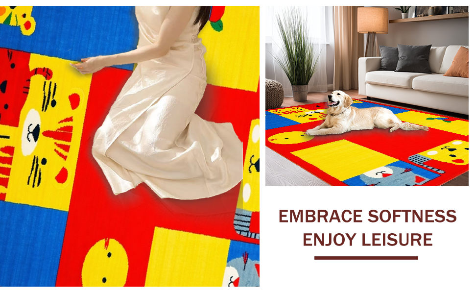 Ultra Soft Area Rug, Non Slip, Stain Resistant, Washable Area Rugs for Living Room, Bedroom, Lively Chart of Colors and Creatures(Red) Overview: