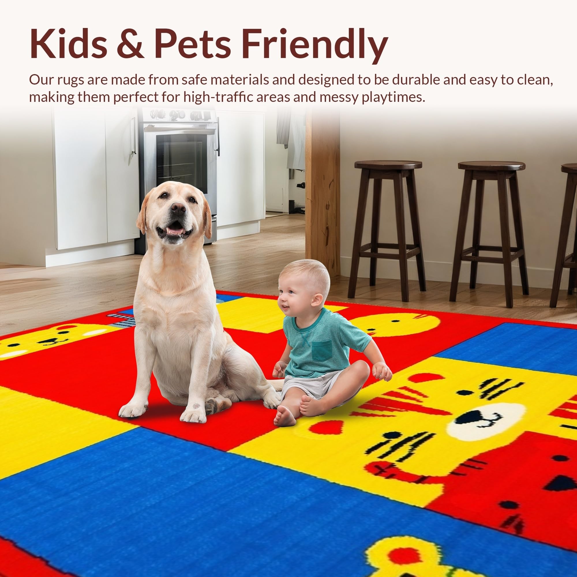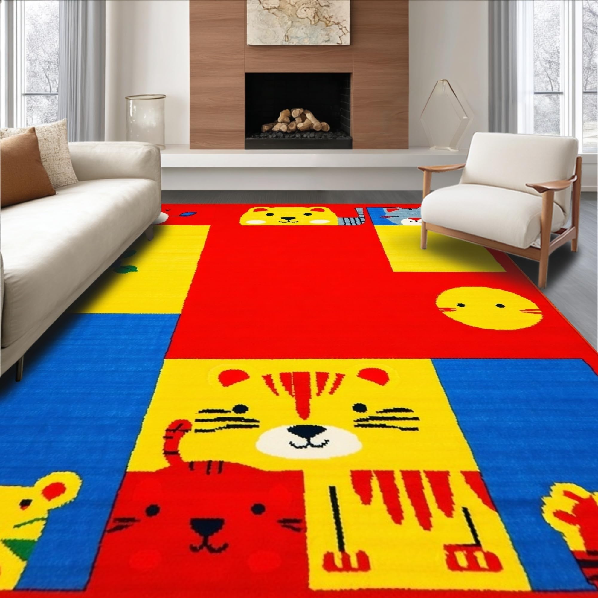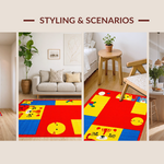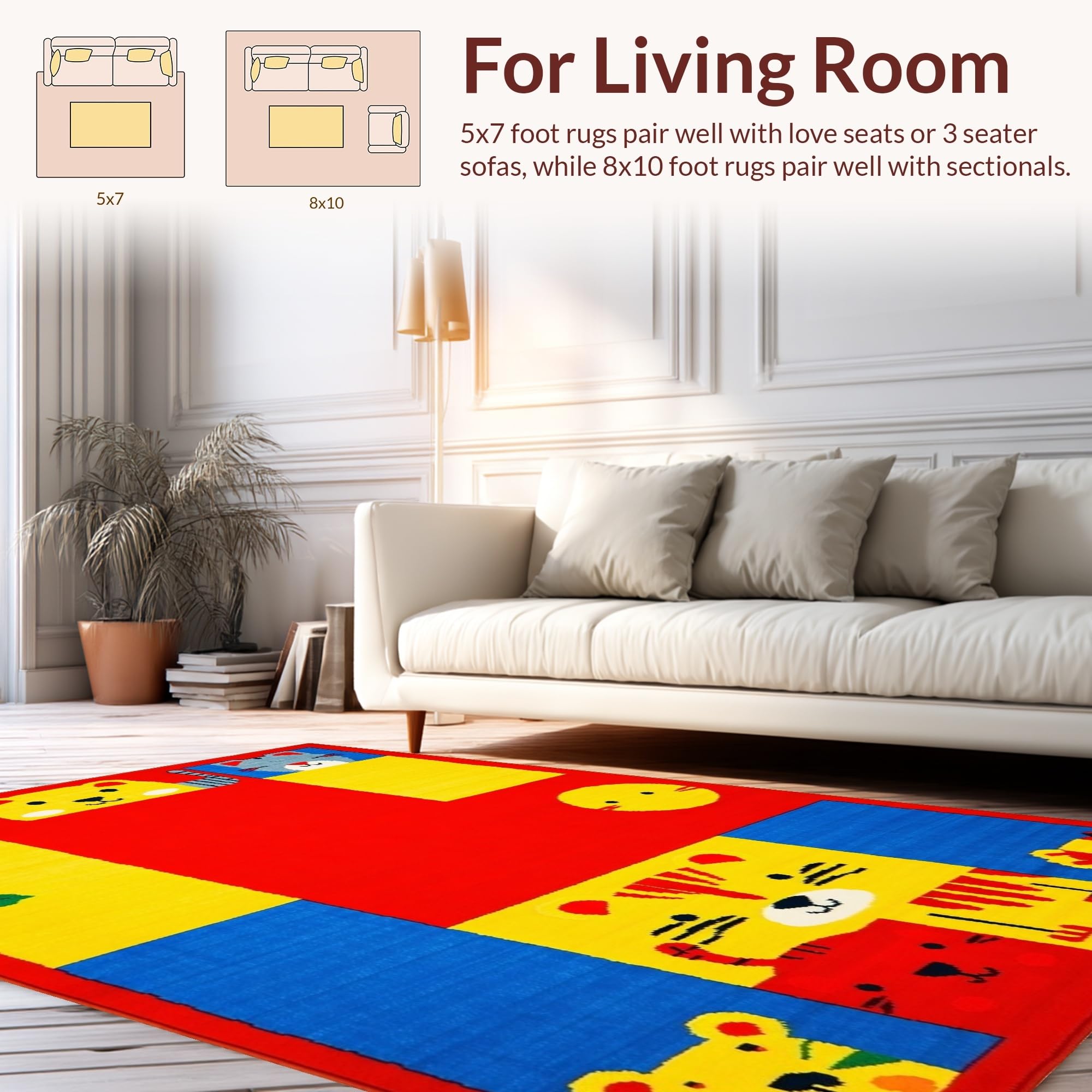 Ultra Soft Area Rug, Non Slip, Stain Resistant, Washable Area Rugs for Living Room, Bedroom, Lively Chart of Colors and Creatures(Red) Overview: