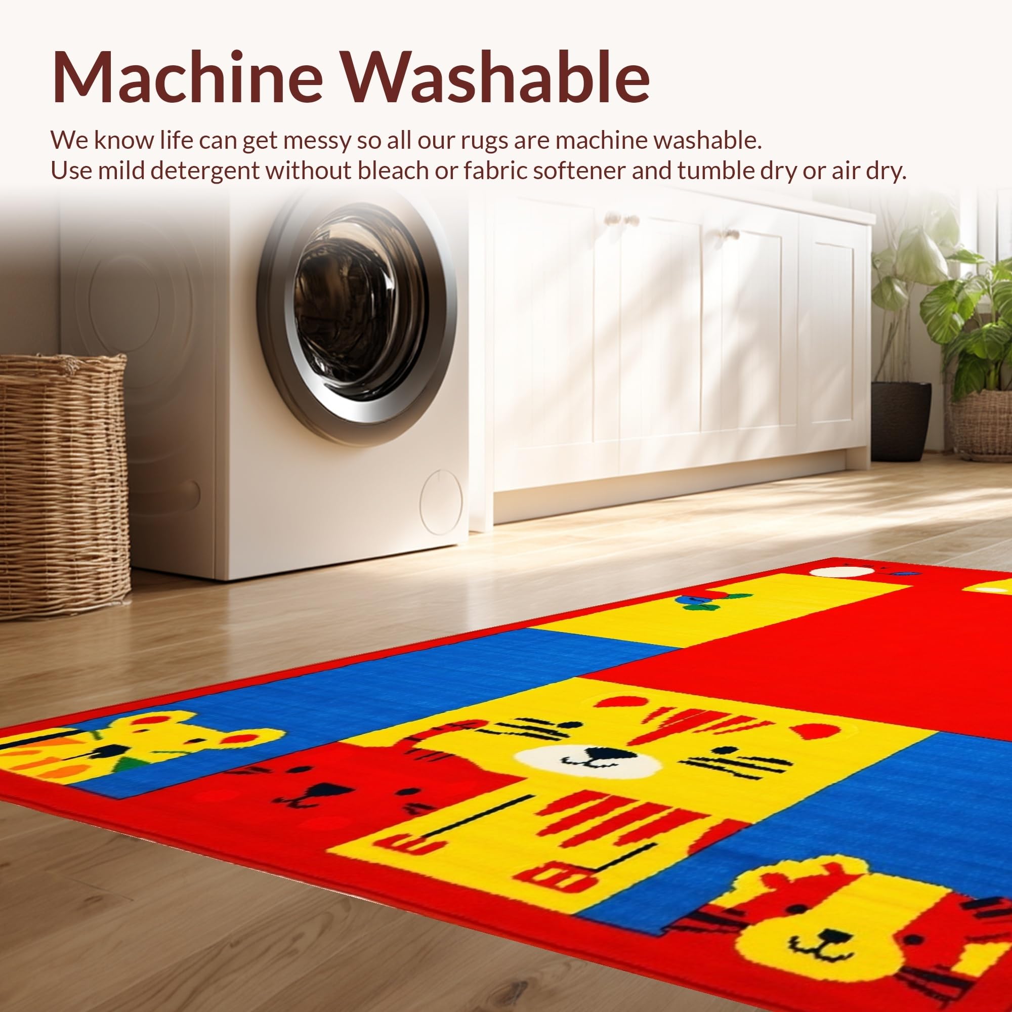 - Machine Washable: Our rugs can be easily thrown in the wash machine.