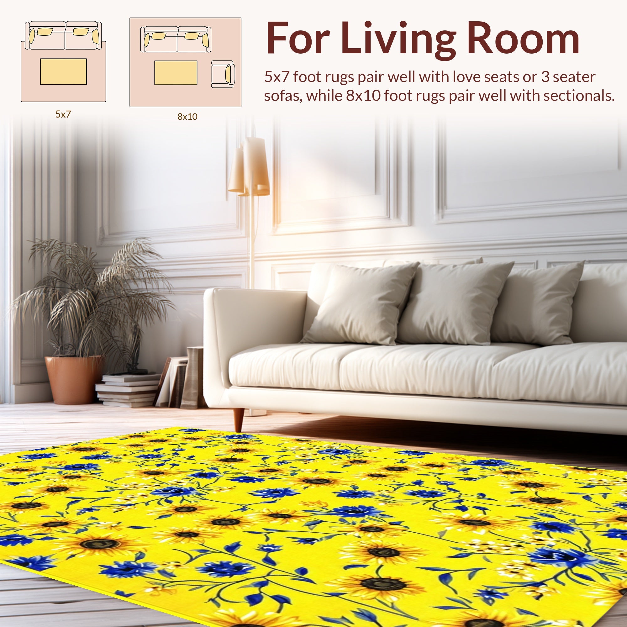 Flatwoven High Traffic Area Rug, Lively Friendly, Non Slip, Stain Resistant, Washable Area Rugs for Living Room, Bedroom (Yellow) Overview: