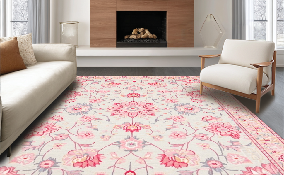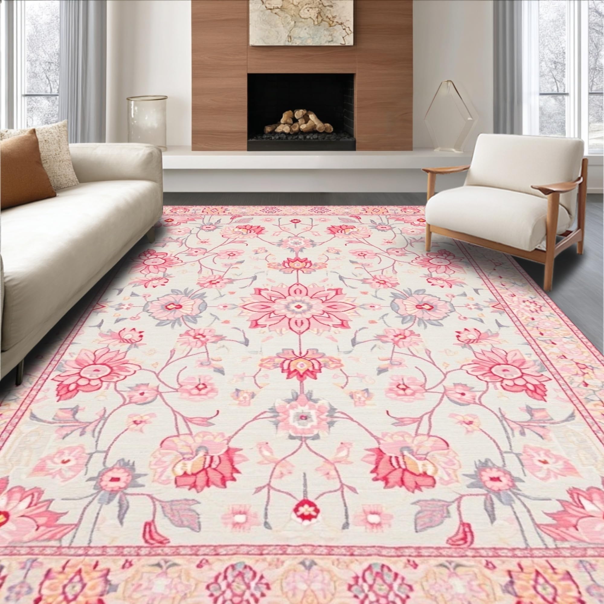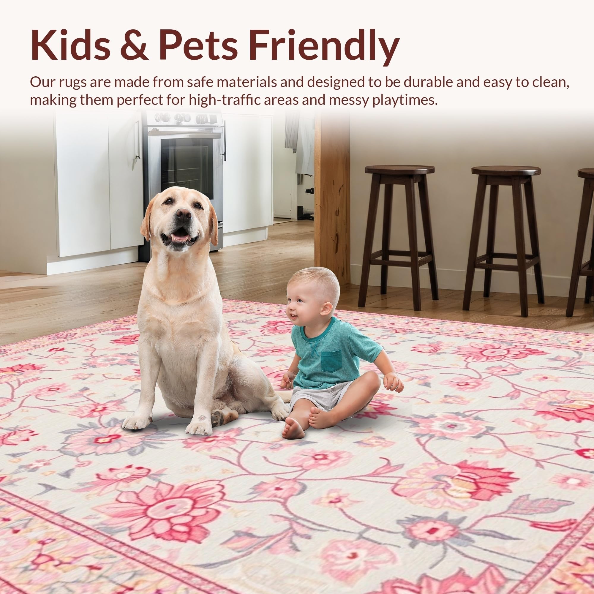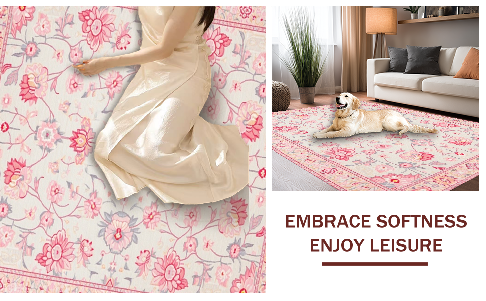 Ultra Soft Area Rug, Non Slip, Stain Resistant, Washable Area Rugs for Living Room, Bedroom, Lively Colorful Petal Print(Pink) Overview:
