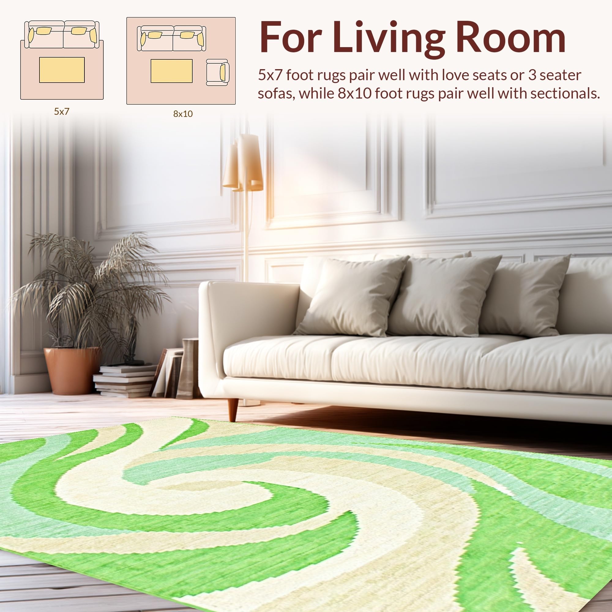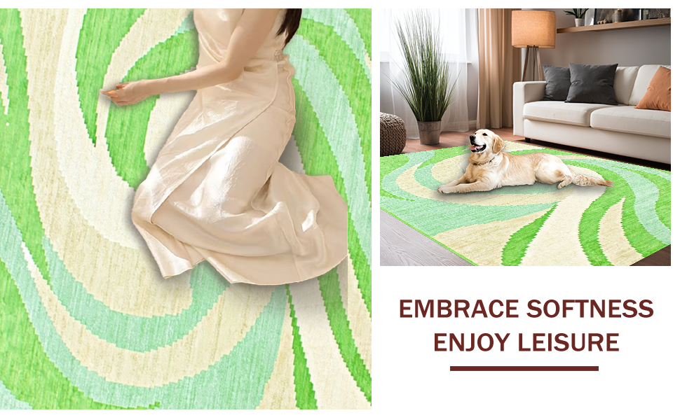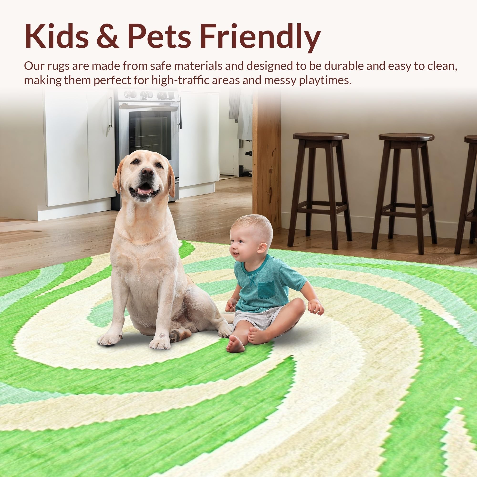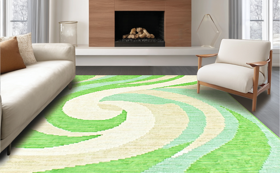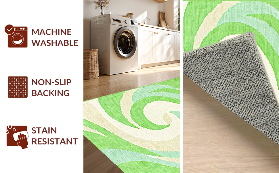 Ultra Soft Area Rug, Non Slip, Stain Resistant, Washable Area Rugs for Living Room, Bedroom, Lively Cream and Green Tiled Look(Green) Overview: