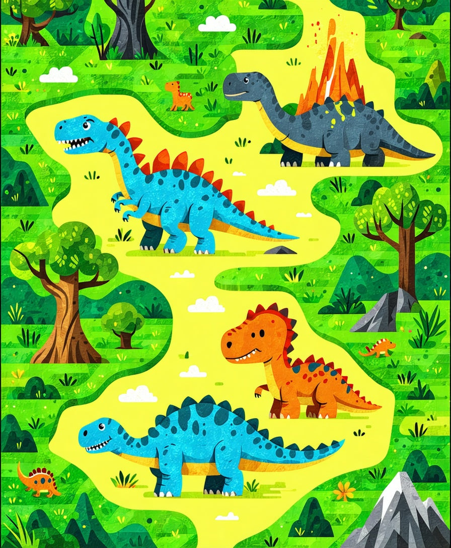 Lively Dinosaur Map Artwork(Blue)
