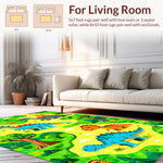 Flatwoven High Traffic Area Rug, Lively Dinosaur Map Artwork, Non Slip, Stain Resistant, Washable Area Rugs for Living Room, Bedroom (Blue) Overview: