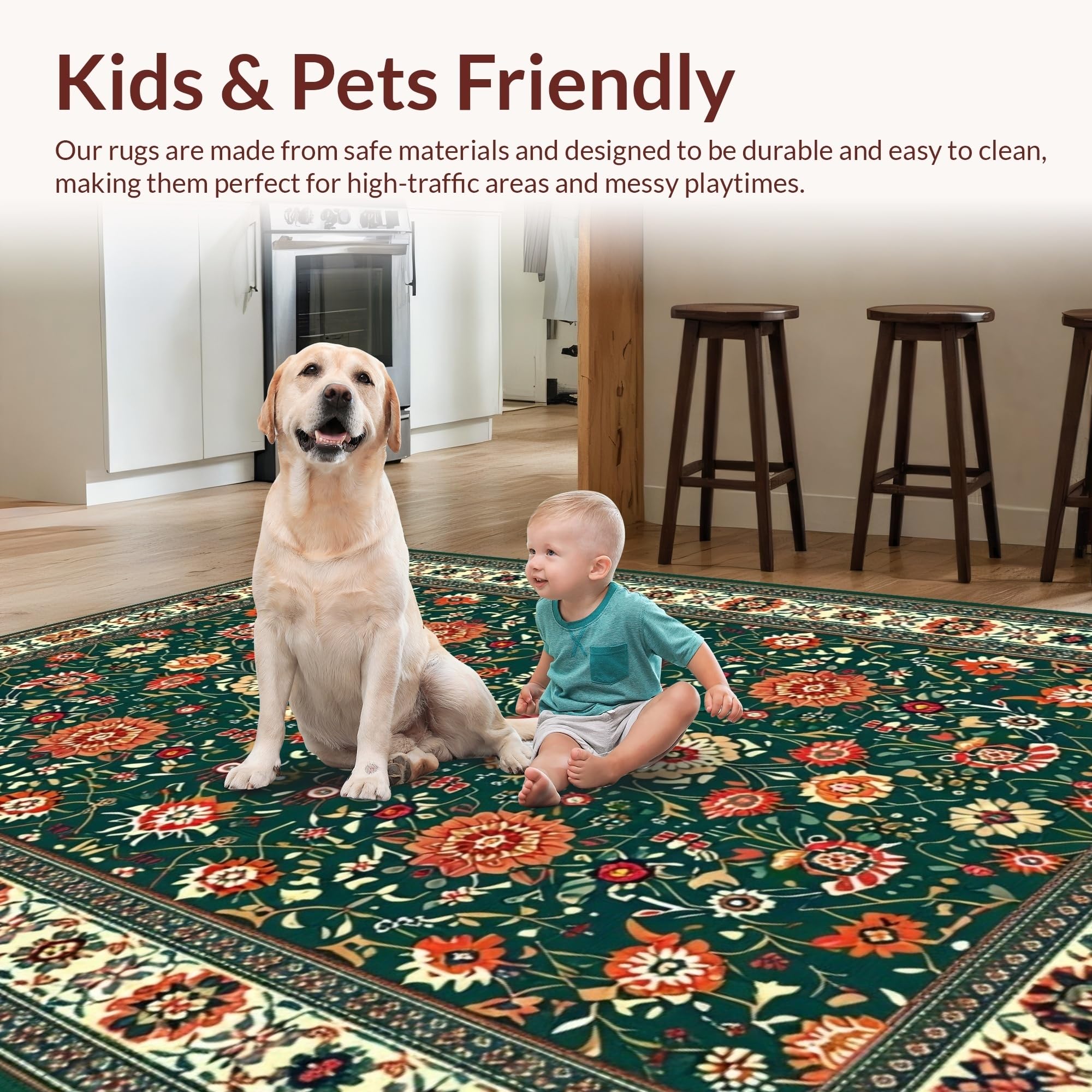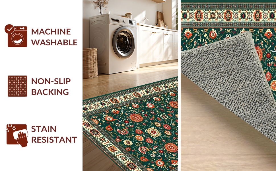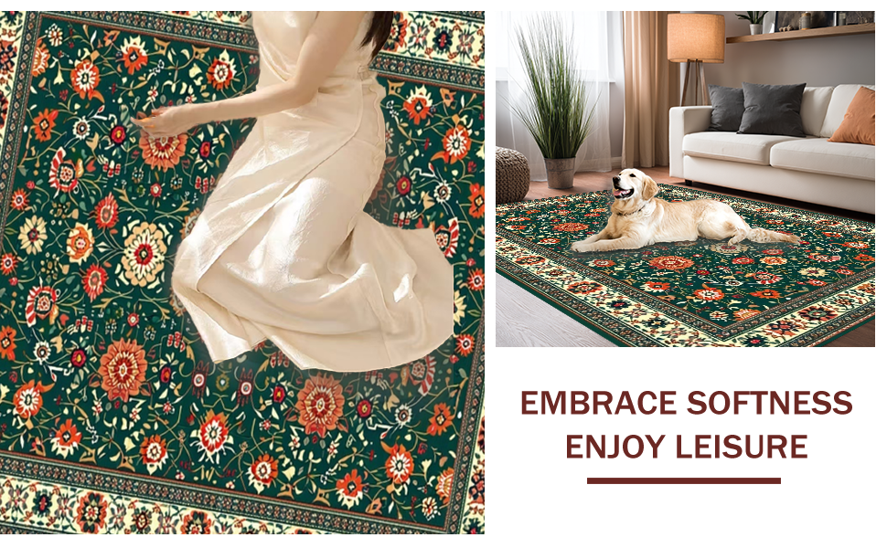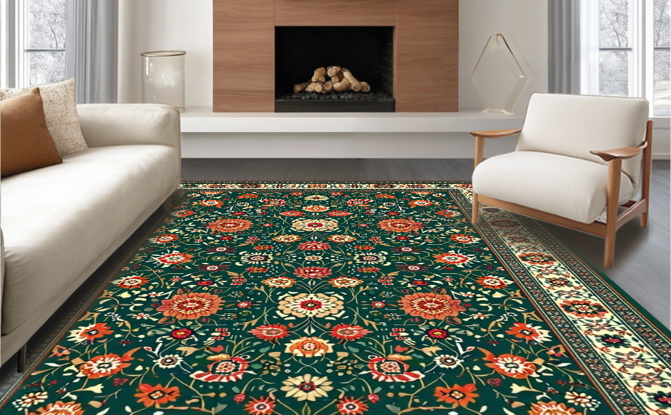 Ultra Soft Area Rug, Non Slip, Stain Resistant, Washable Area Rugs for Living Room, Bedroom, Lively Eclectic Green Floral Palette(Green) Overview: