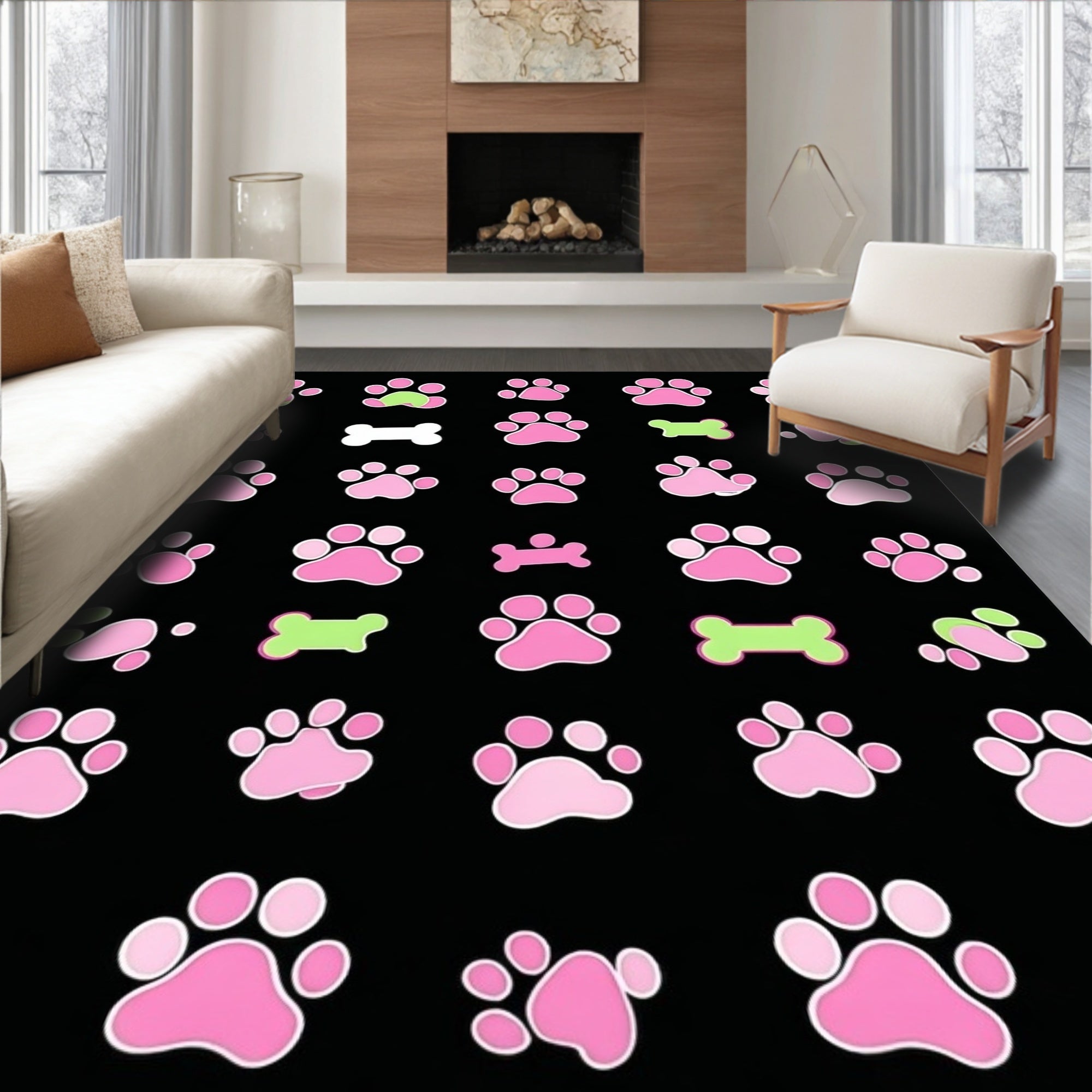 Flatwoven High Traffic Area Rug, Lively Flannel Pet Print Design, Non Slip, Stain Resistant, Washable Area Rugs for Living Room, Bedroom (Pink) Overview: