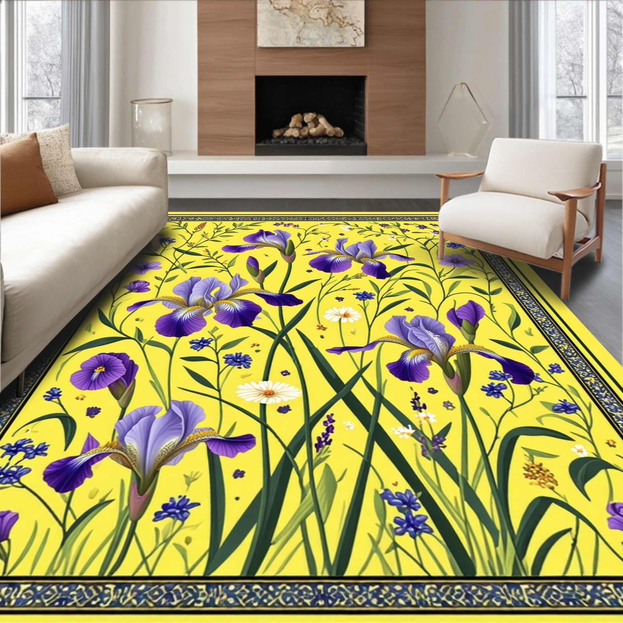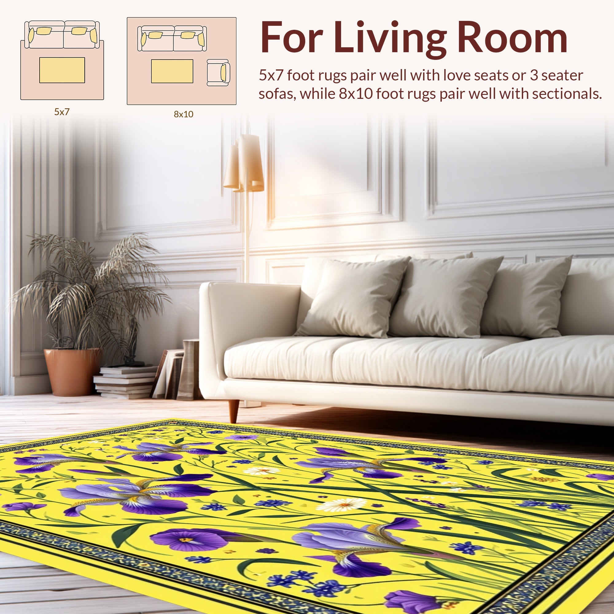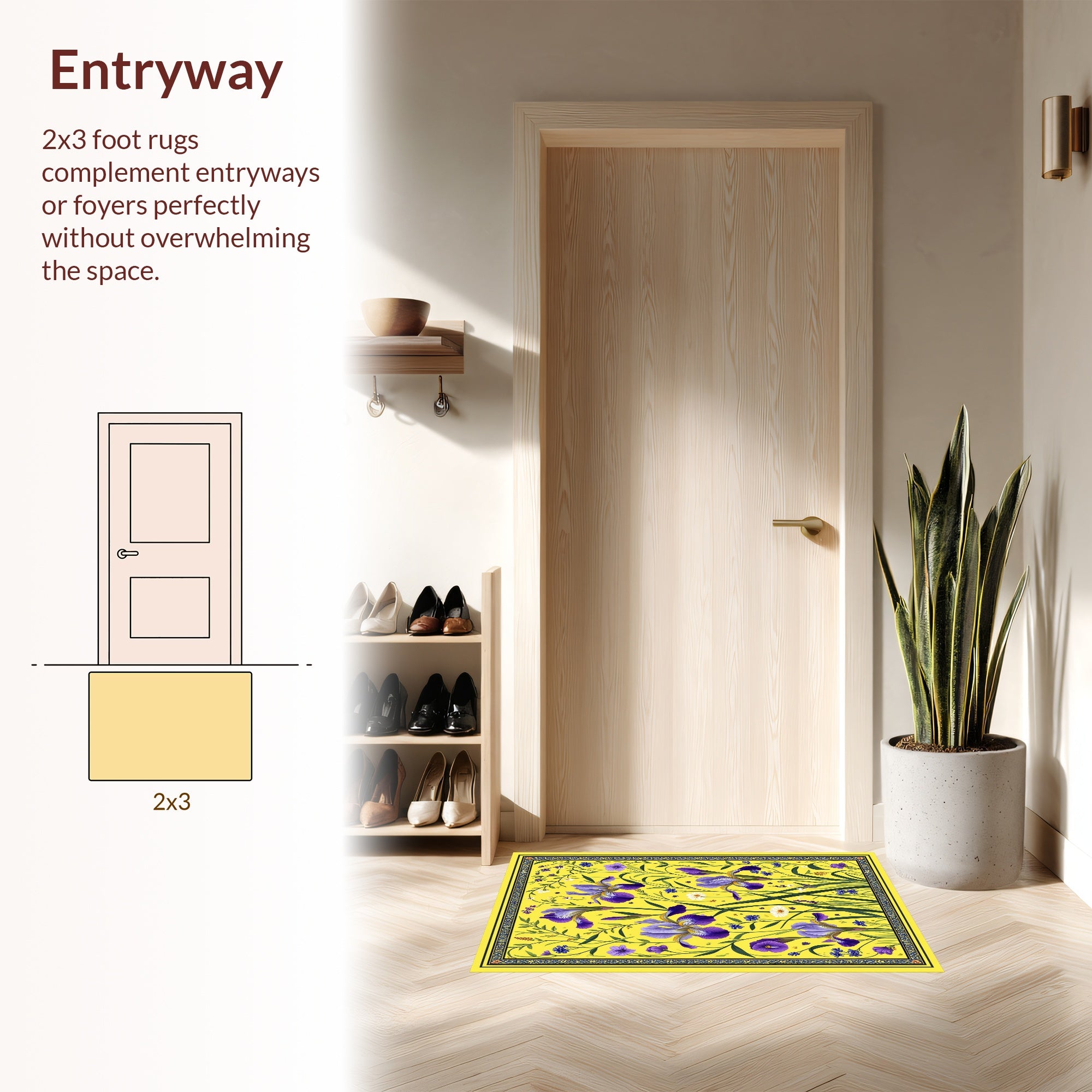 Flatwoven High Traffic Area Rug, Lively Garden Inspired Entrance, Non Slip, Stain Resistant, Washable Area Rugs for Living Room, Bedroom (Yellow) Overview: