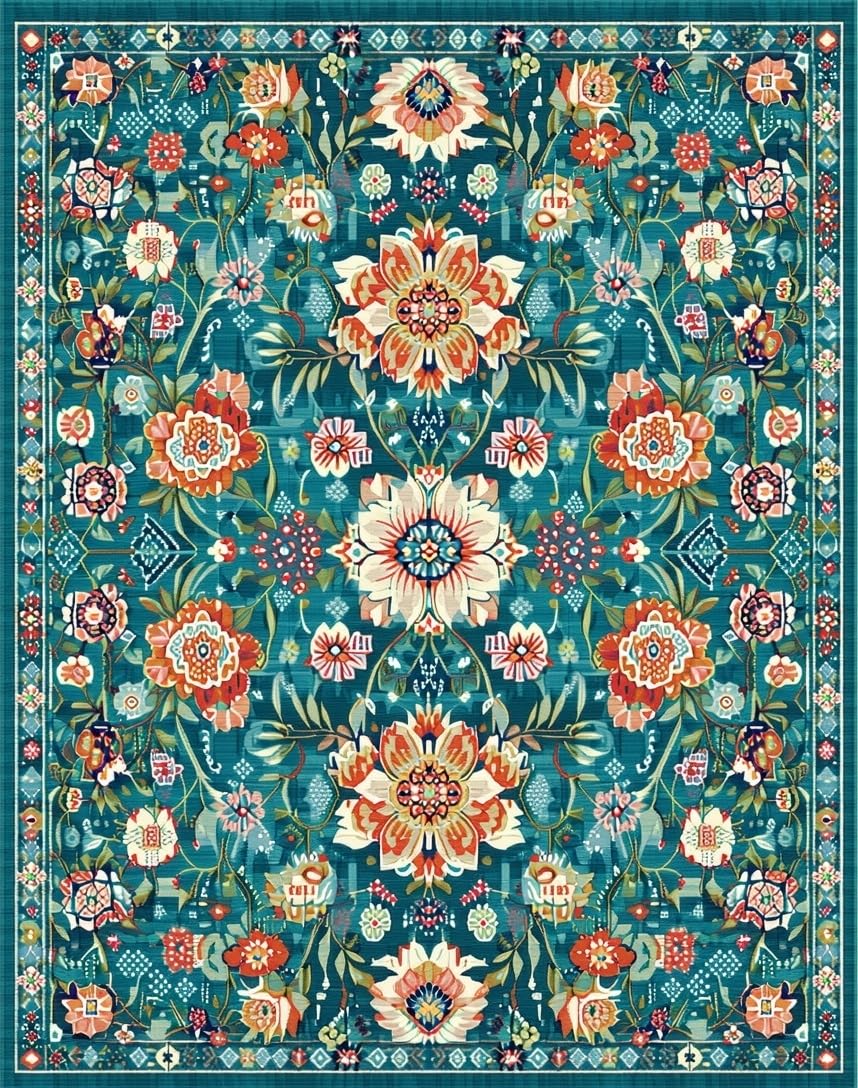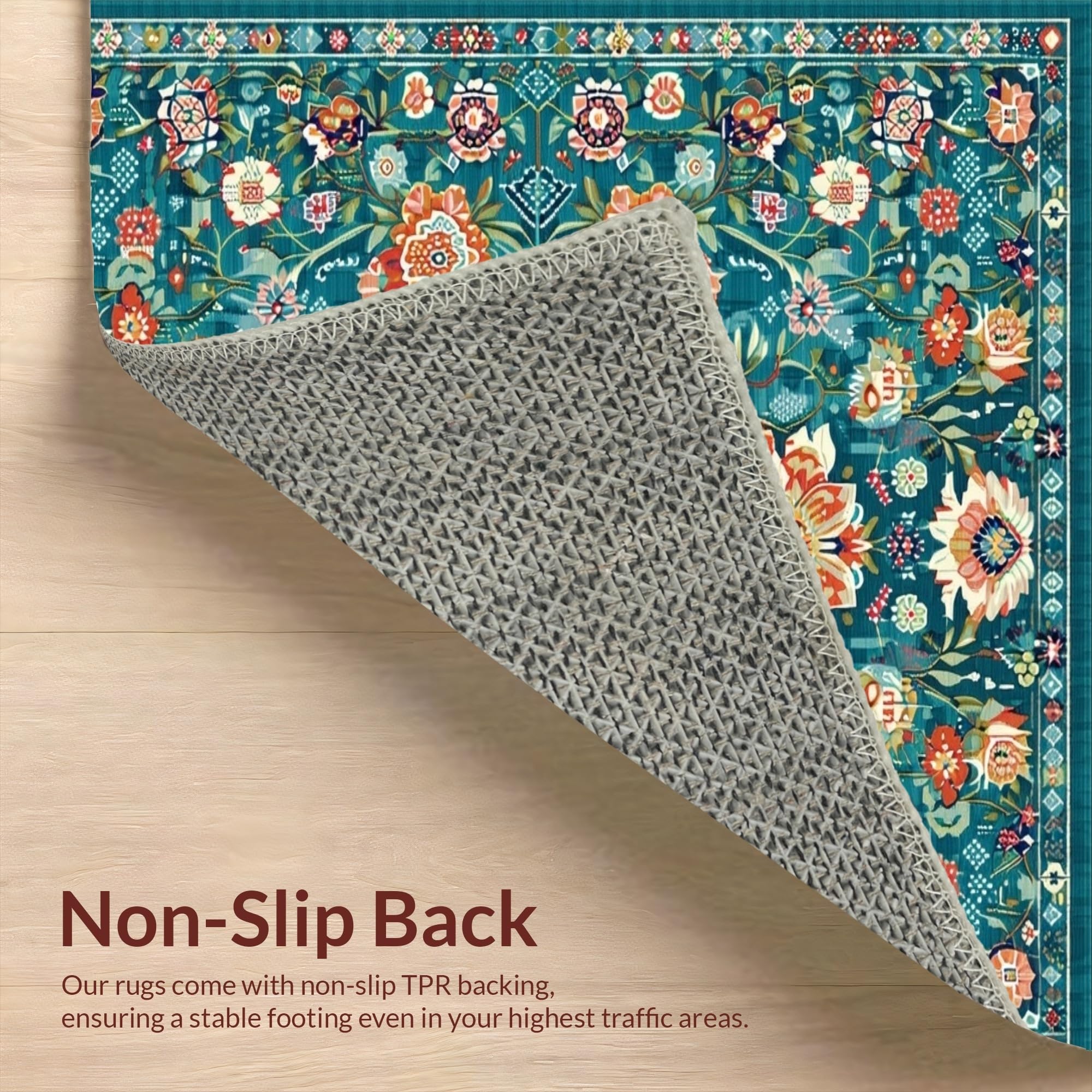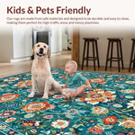 Ultra Soft Area Rug, Non Slip, Stain Resistant, Washable Area Rugs for Living Room, Bedroom, Lively Geometric Flower Fusion(Blue) Overview: