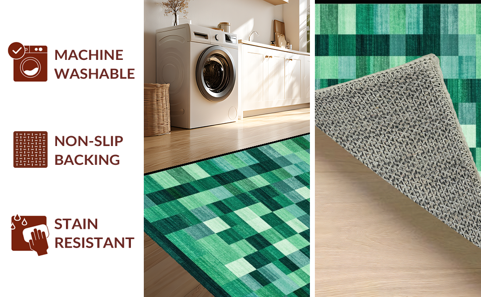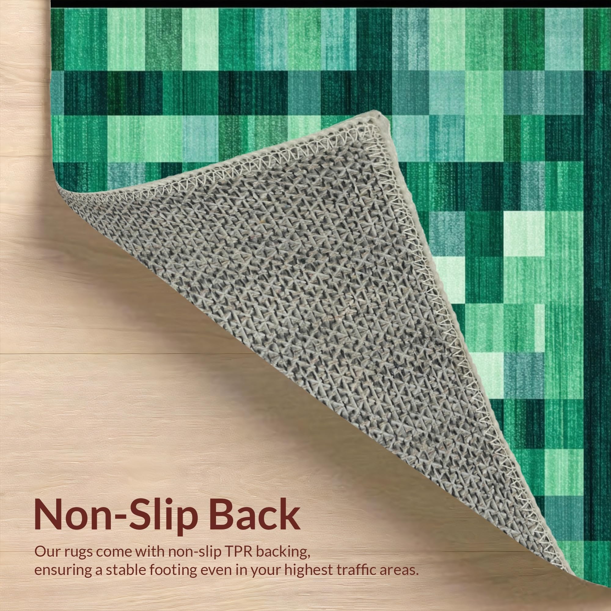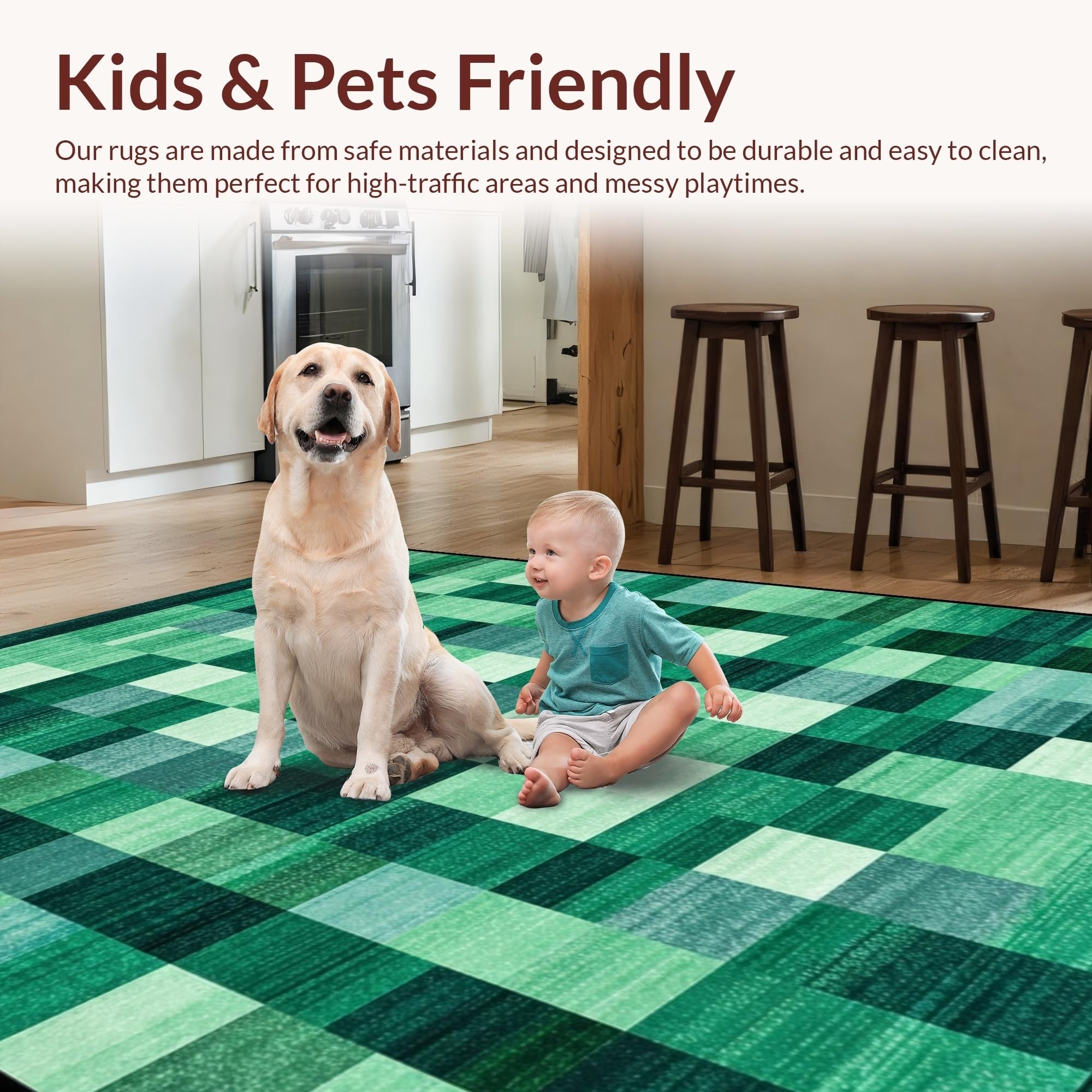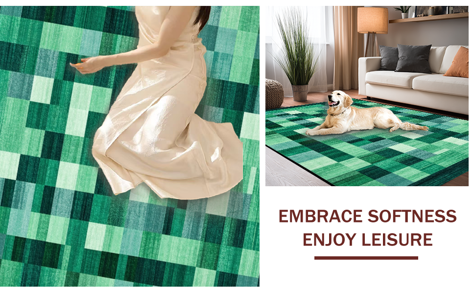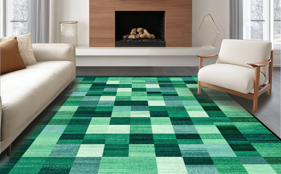 Ultra Soft Area Rug, Non Slip, Stain Resistant, Washable Area Rugs for Living Room, Bedroom, Lively Green Geometric Flow(Green) Overview: