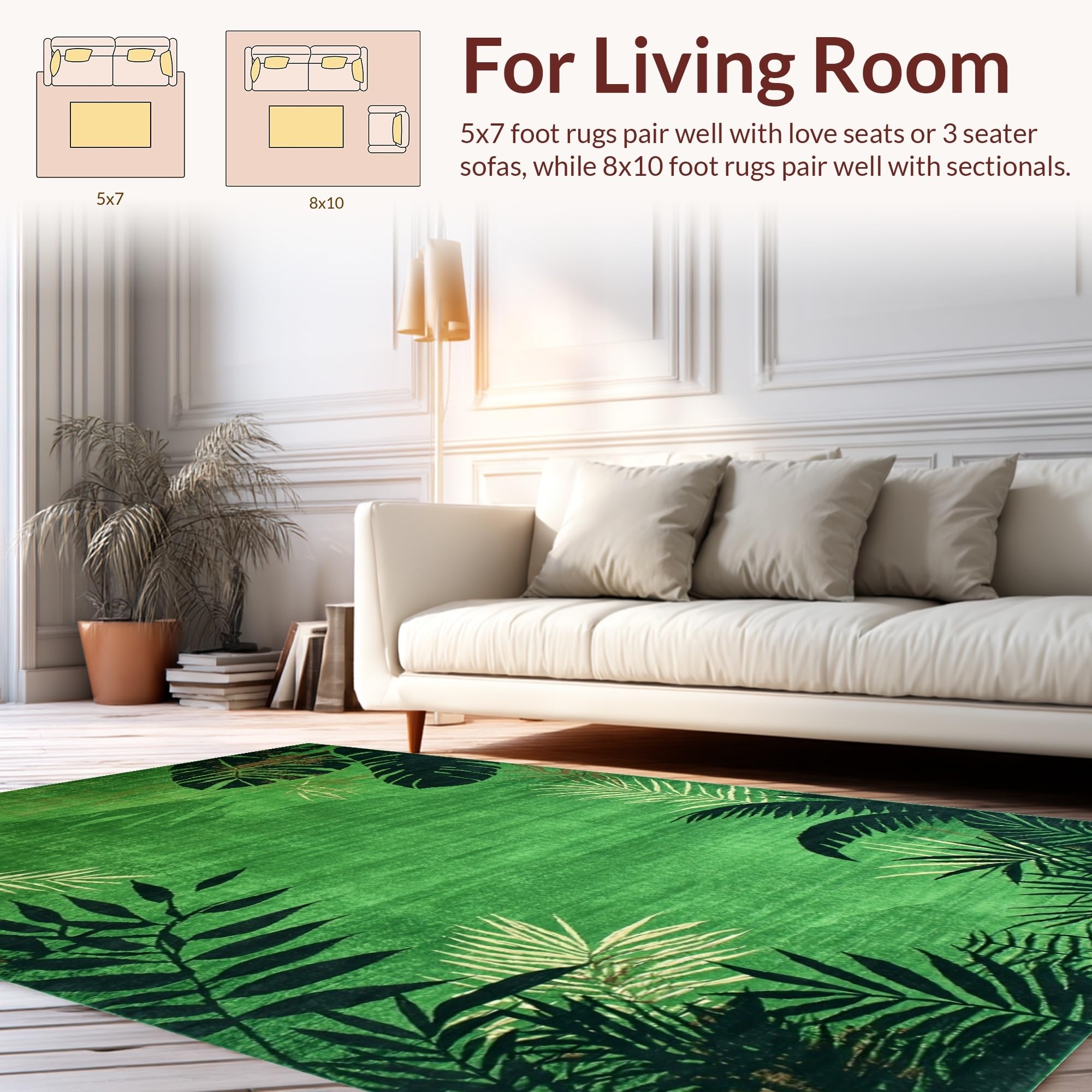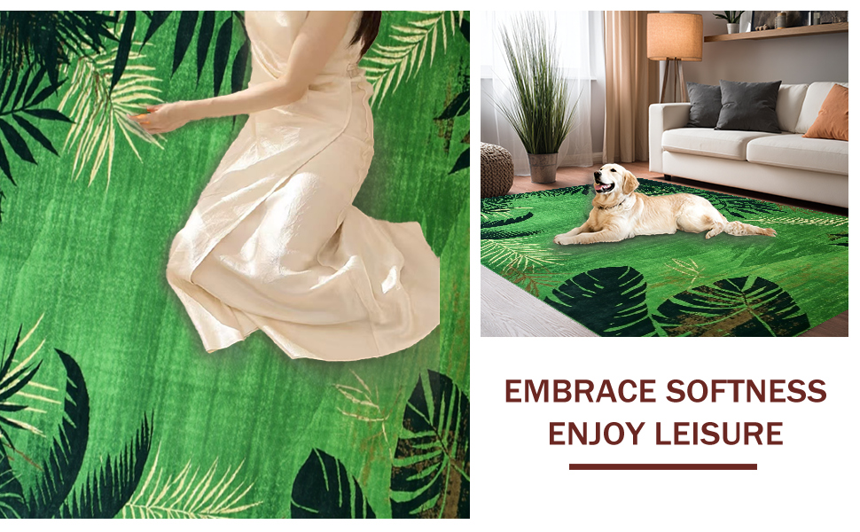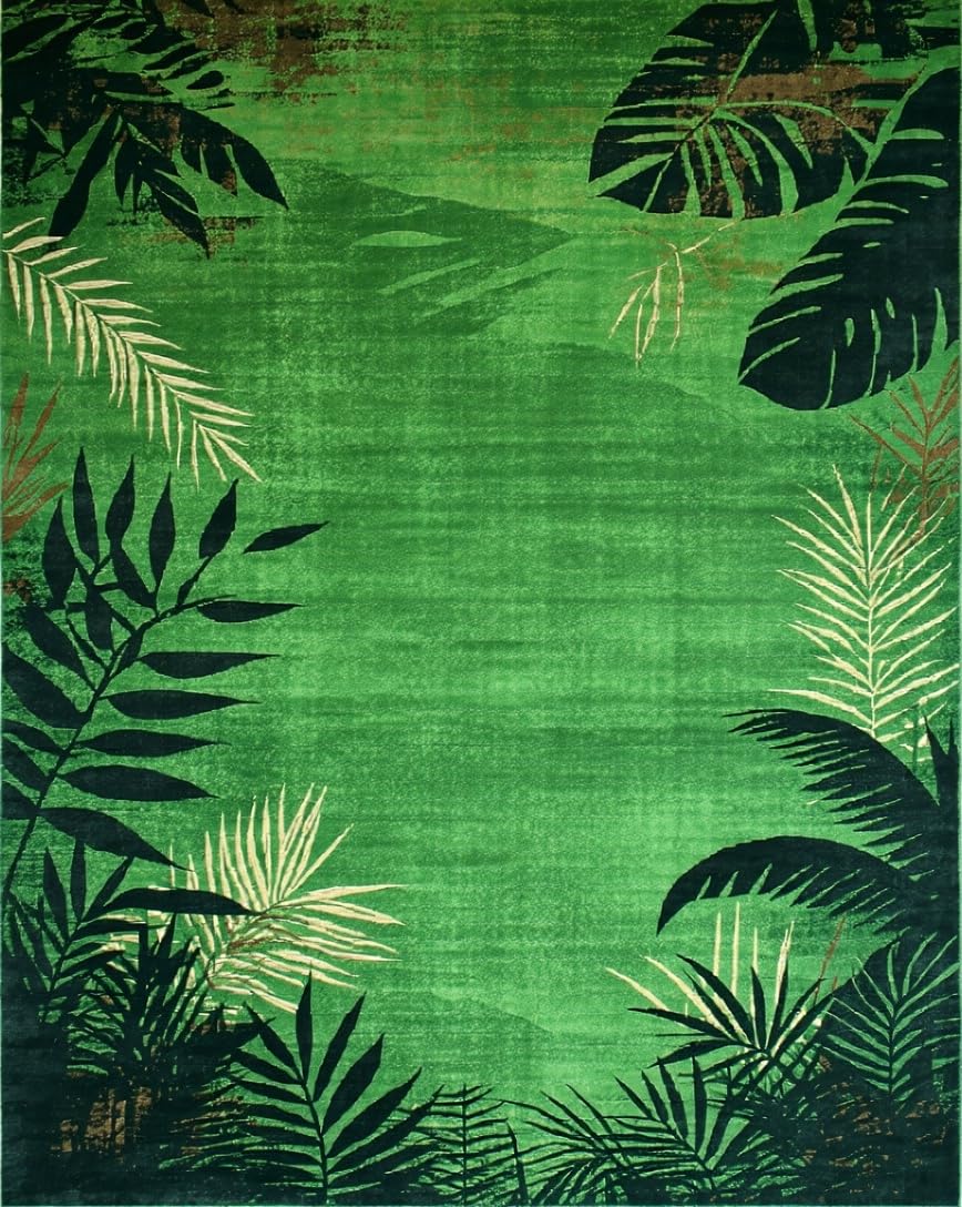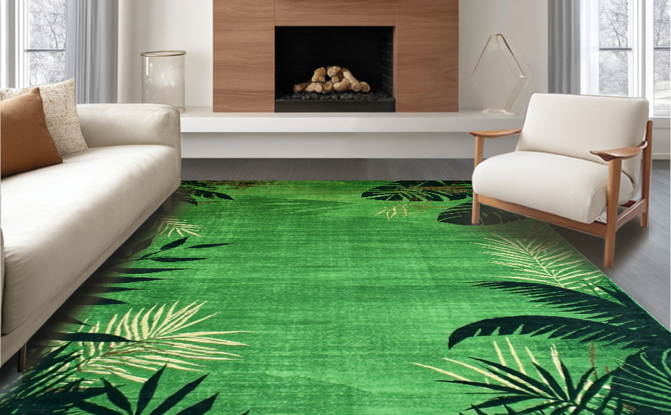 Ultra Soft Area Rug, Non Slip, Stain Resistant, Washable Area Rugs for Living Room, Bedroom, Lively Green Safari Wildlife Theme(Green) Overview:
