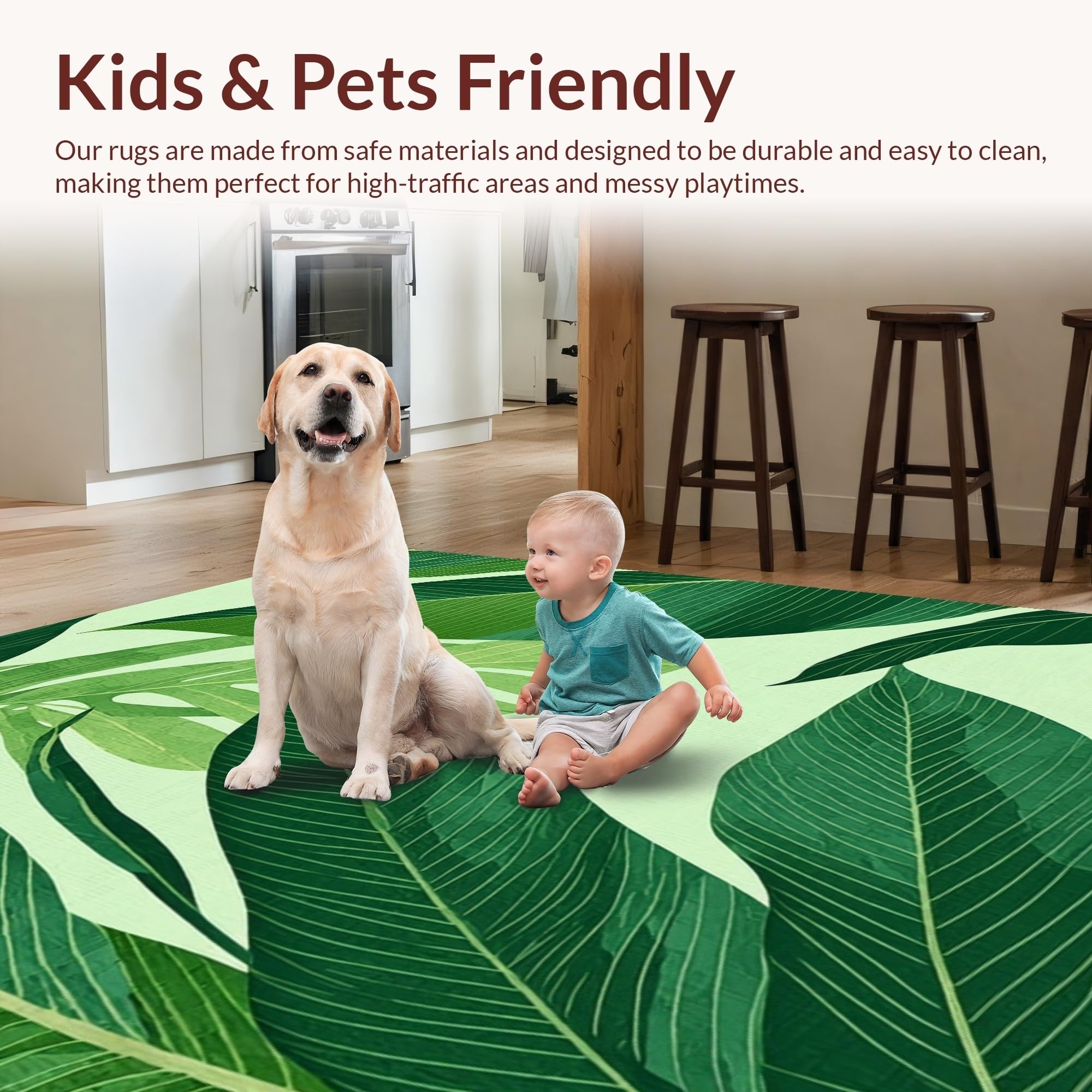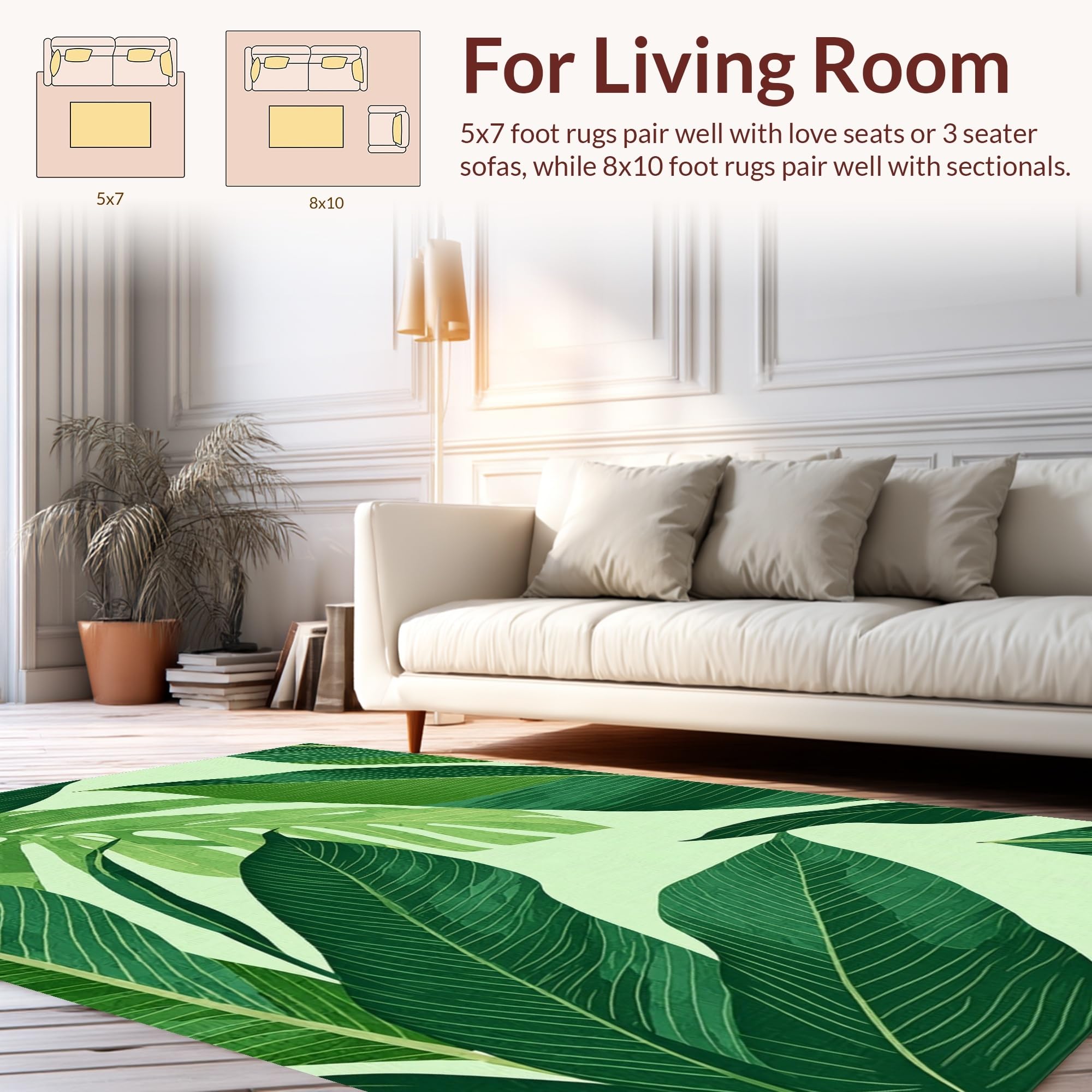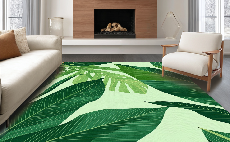 Ultra Soft Area Rug, Non Slip, Stain Resistant, Washable Area Rugs for Living Room, Bedroom, Lively Greenery Geometric Elements(Green) Overview: