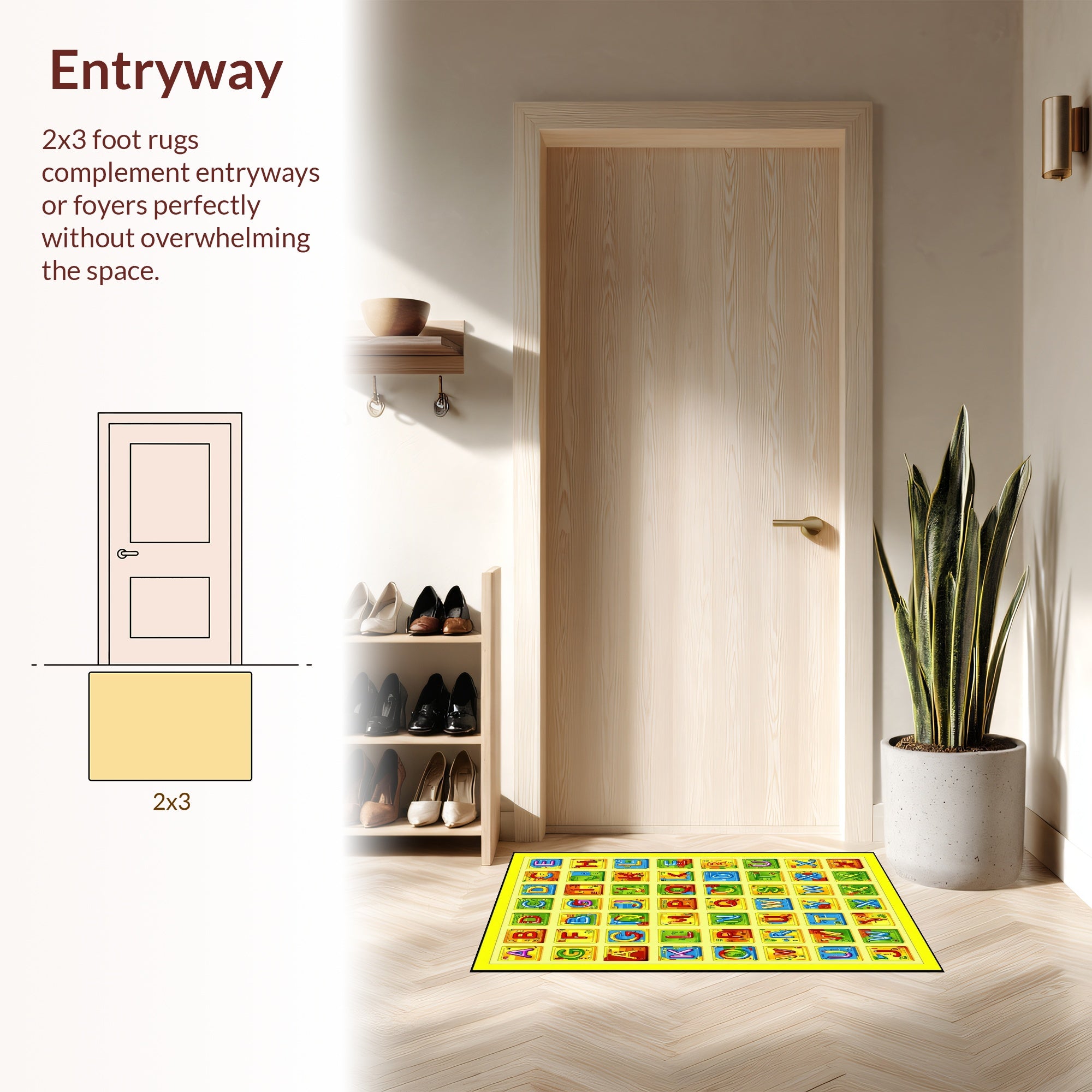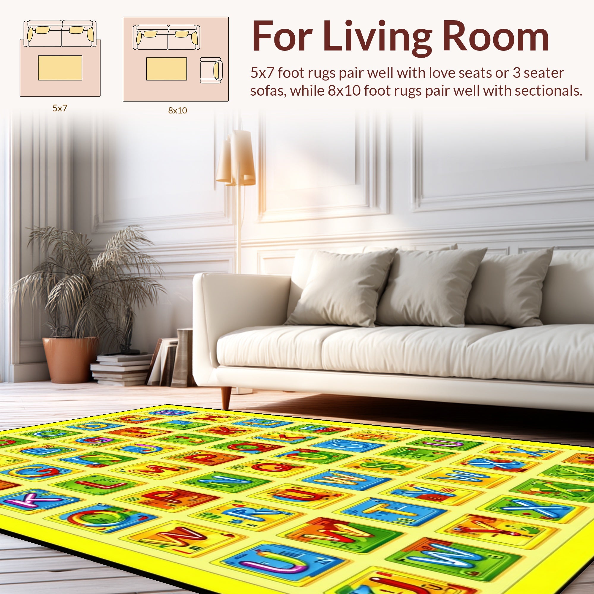 Flatwoven High Traffic Area Rug, Lively Kaleidoscopic Educational Display, Non Slip, Stain Resistant, Washable Area Rugs for Living Room, Bedroom (Yellow) Overview: