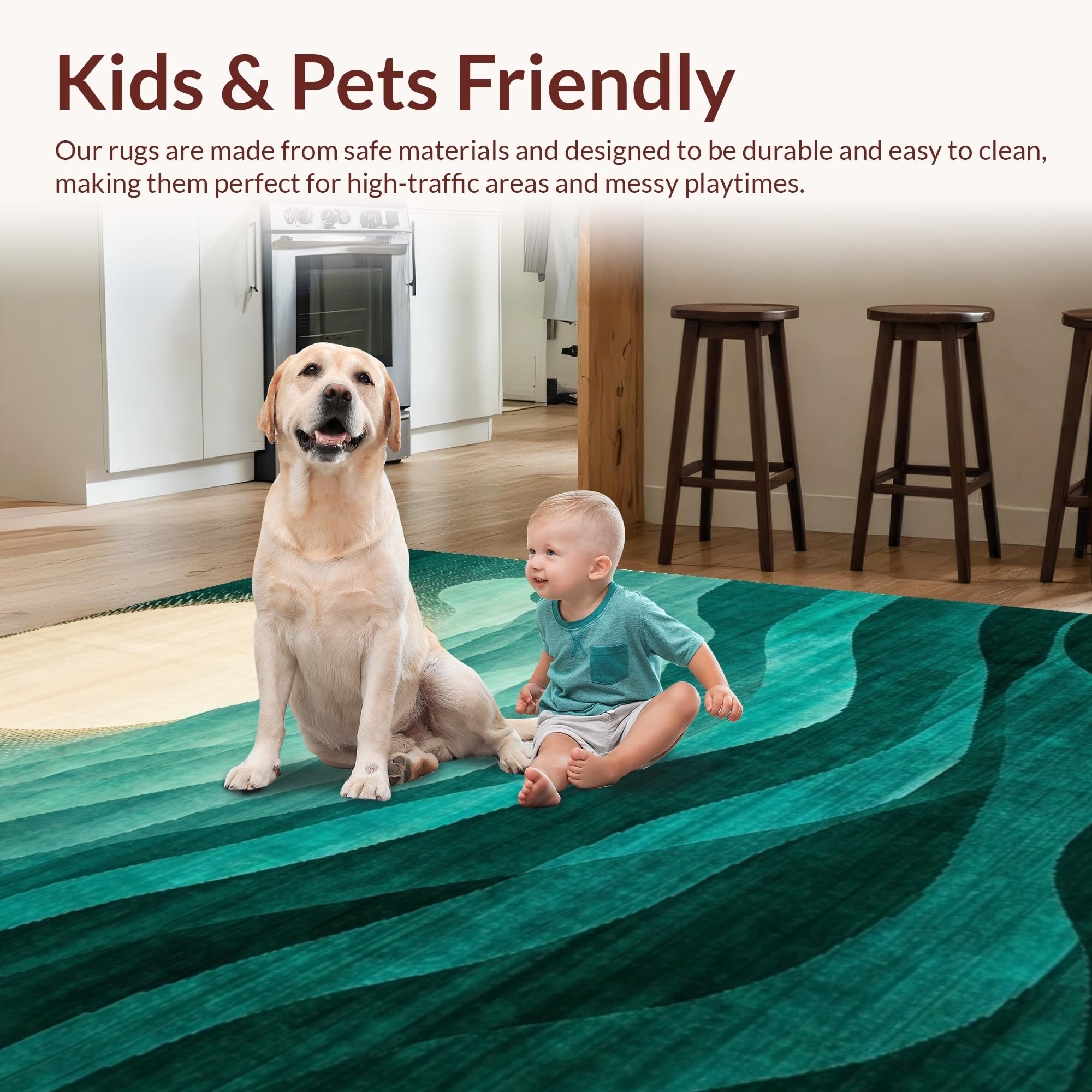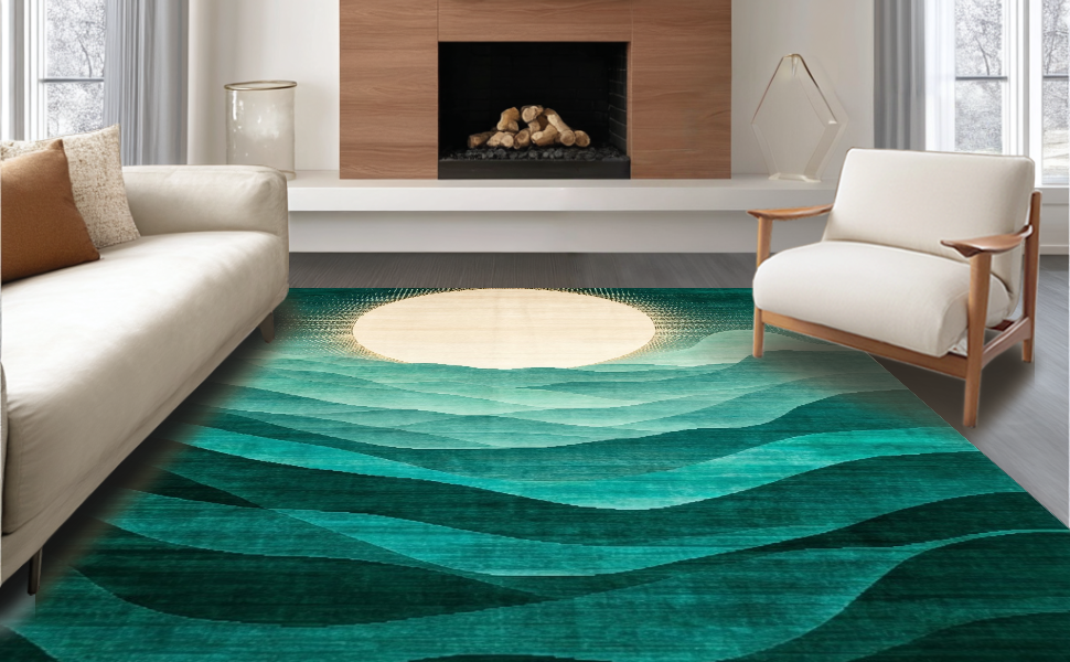 Ultra Soft Area Rug, Non Slip, Stain Resistant, Washable Area Rugs for Living Room, Bedroom, Lively Multi-Toned Artistic Composition(Blue) Overview: