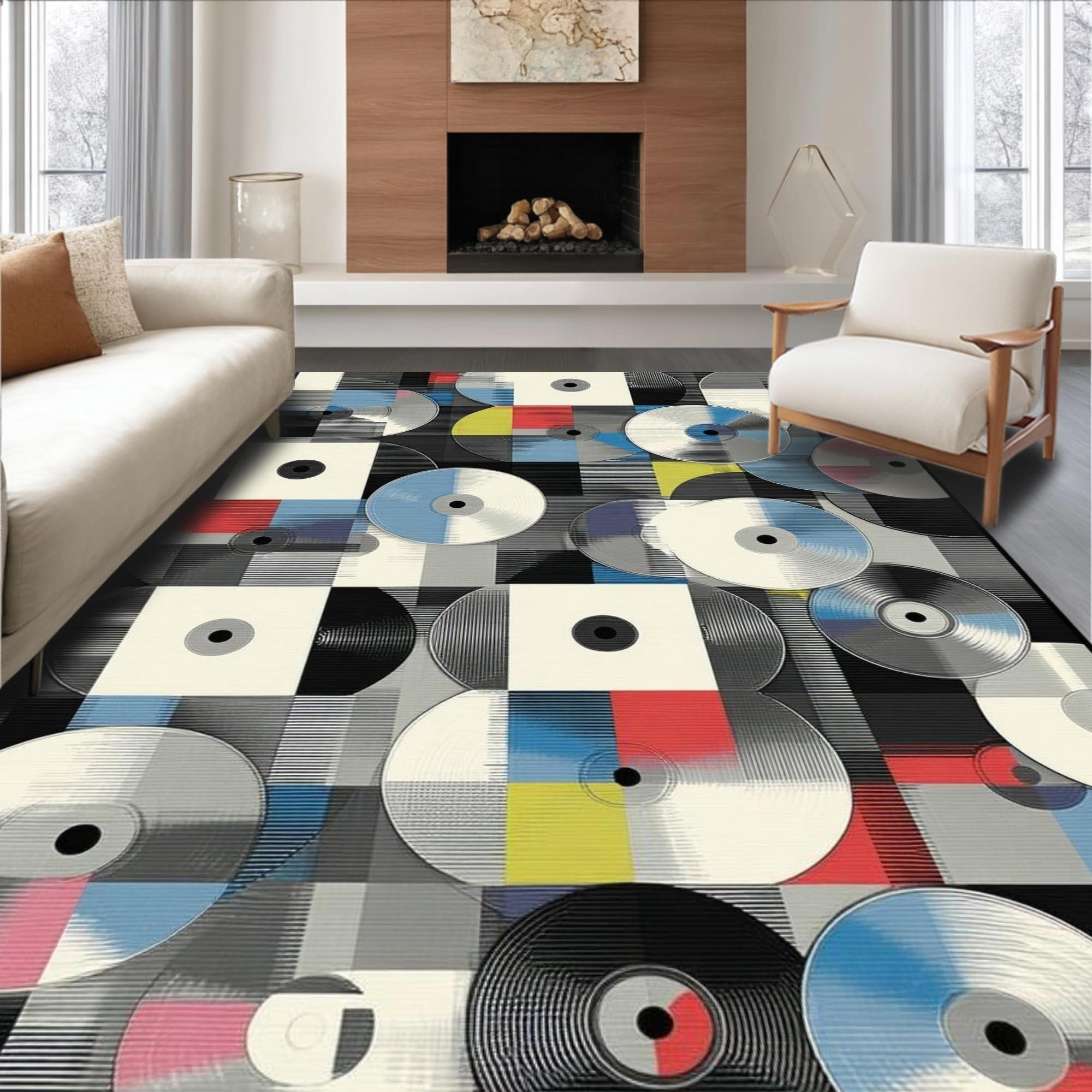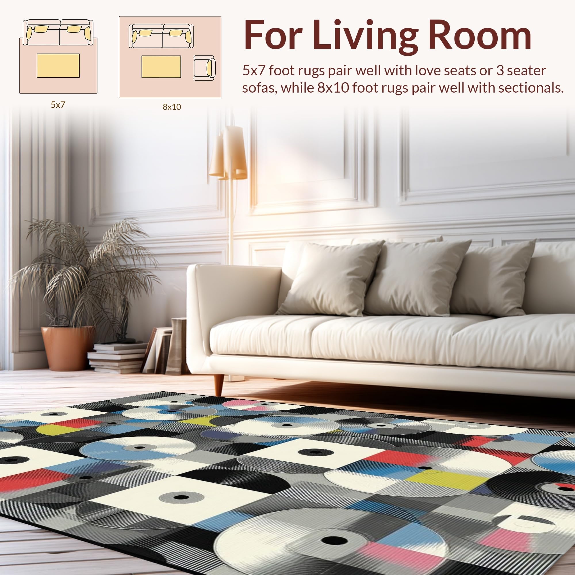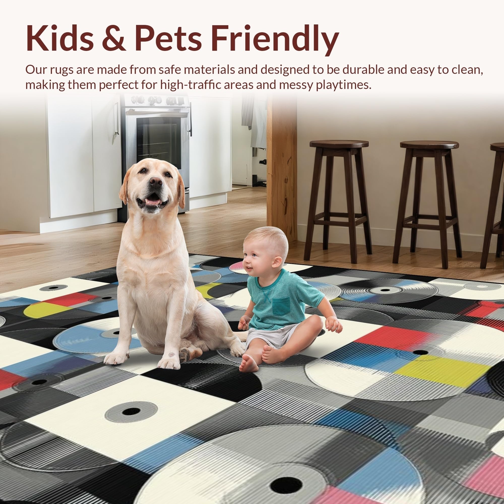 Ultra Soft Area Rug, Non Slip, Stain Resistant, Washable Area Rugs for Living Room, Bedroom, Lively Multicolor Circular Pattern(Gray) Overview: