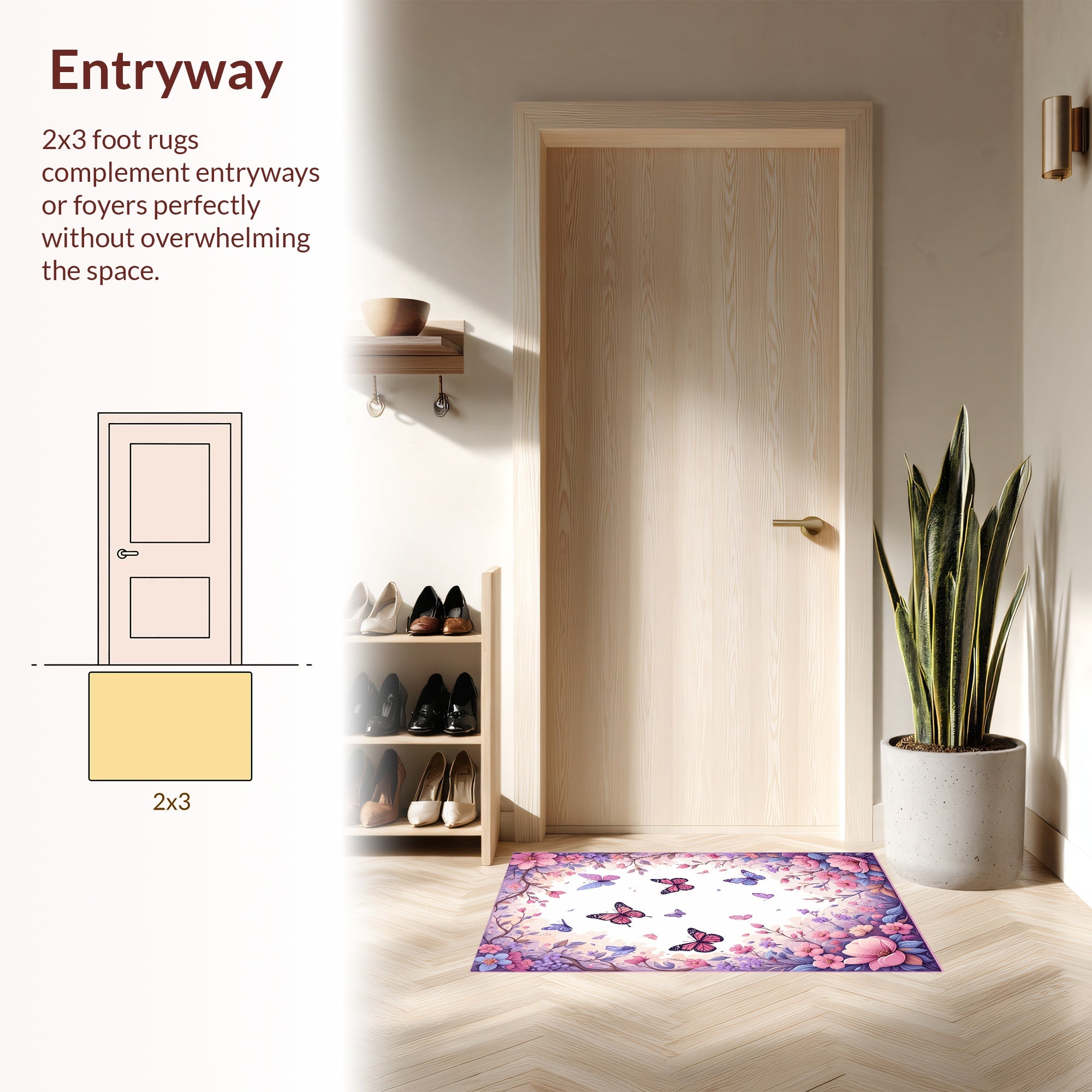Flatwoven High Traffic Area Rug, Lively Nature Themed Visual Appeal, Non Slip, Stain Resistant, Washable Area Rugs for Living Room, Bedroom (Pink) Overview: