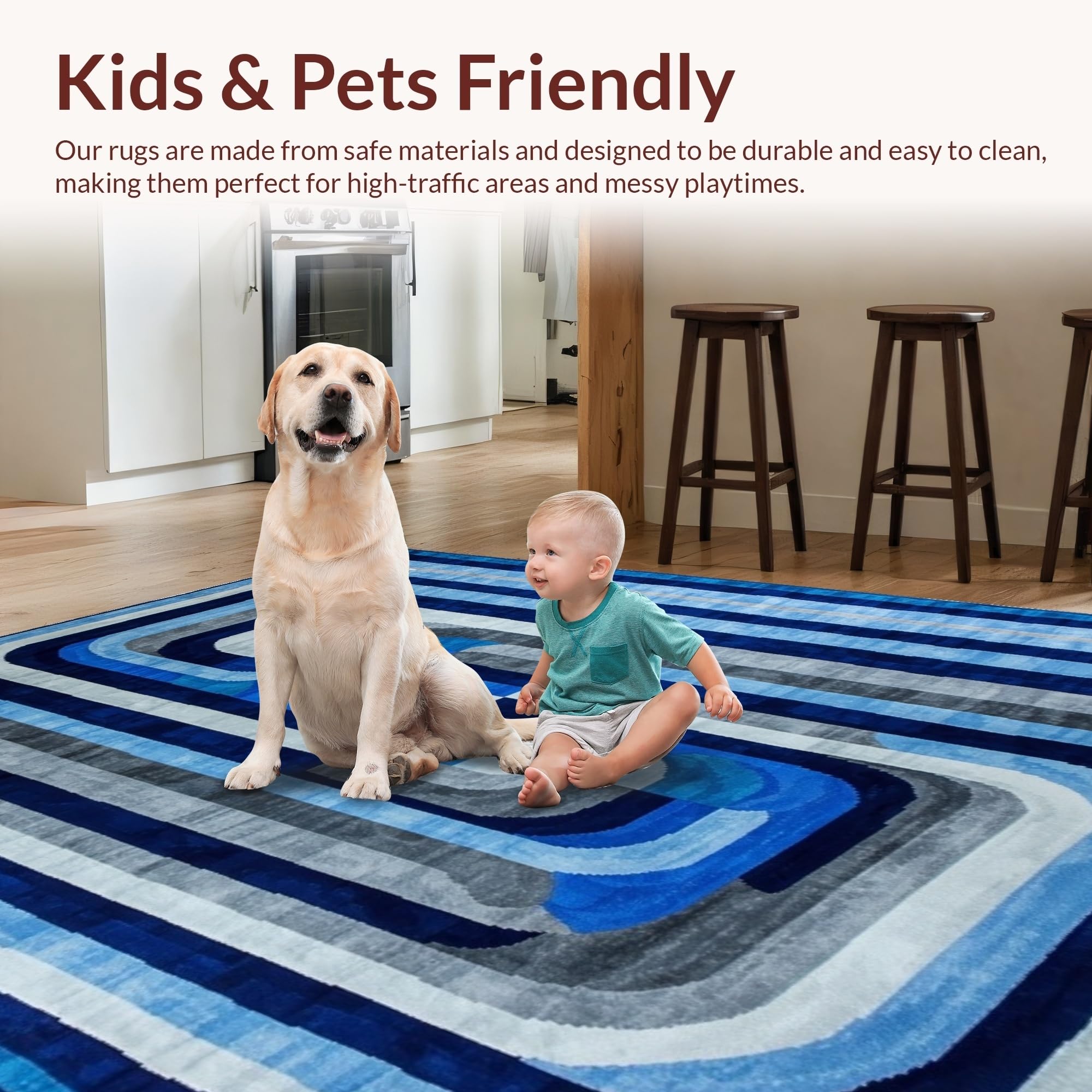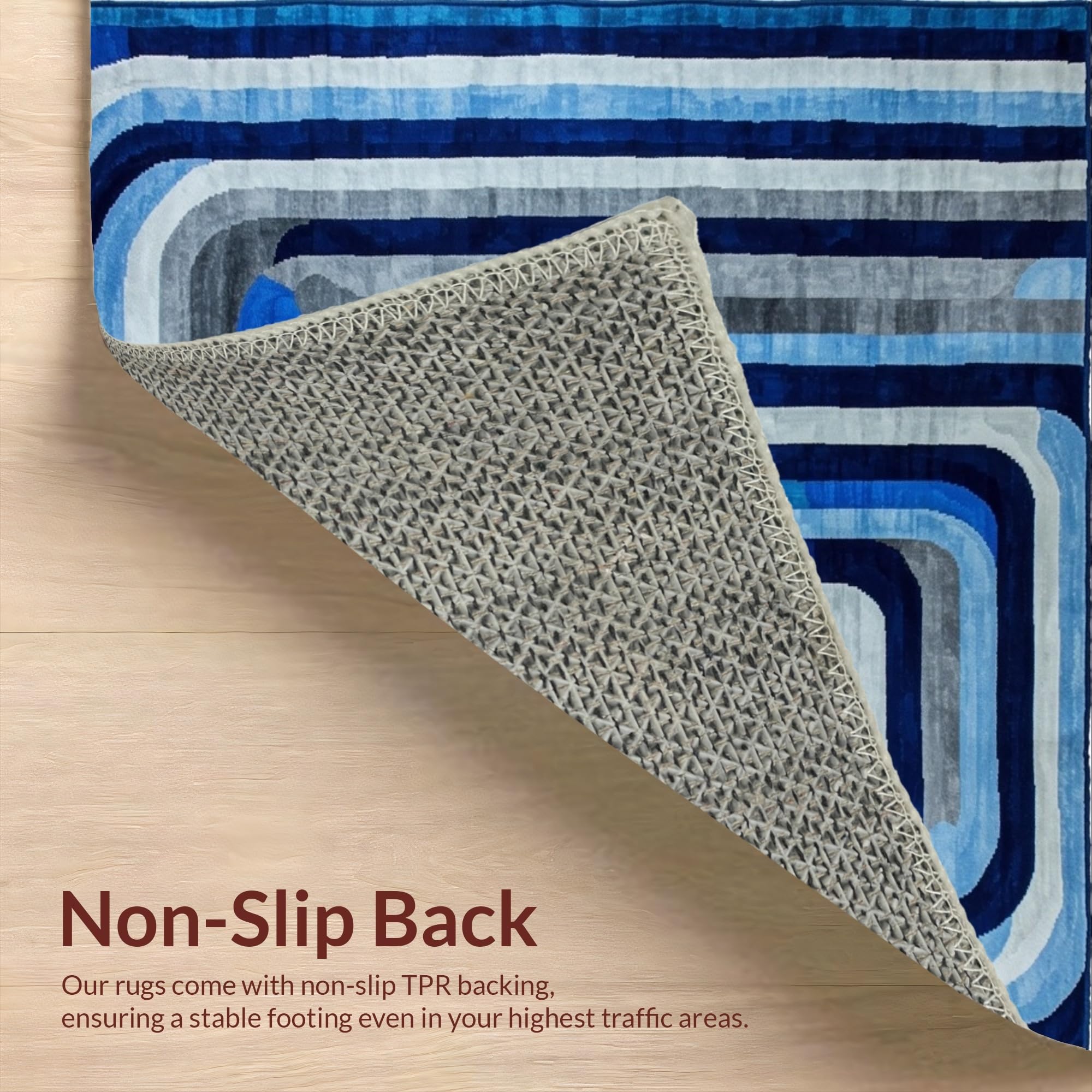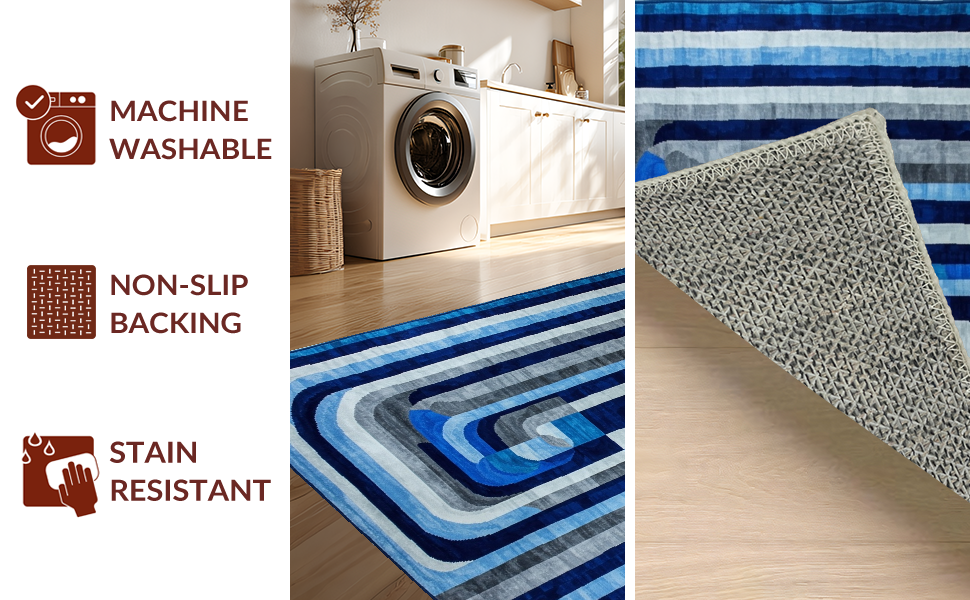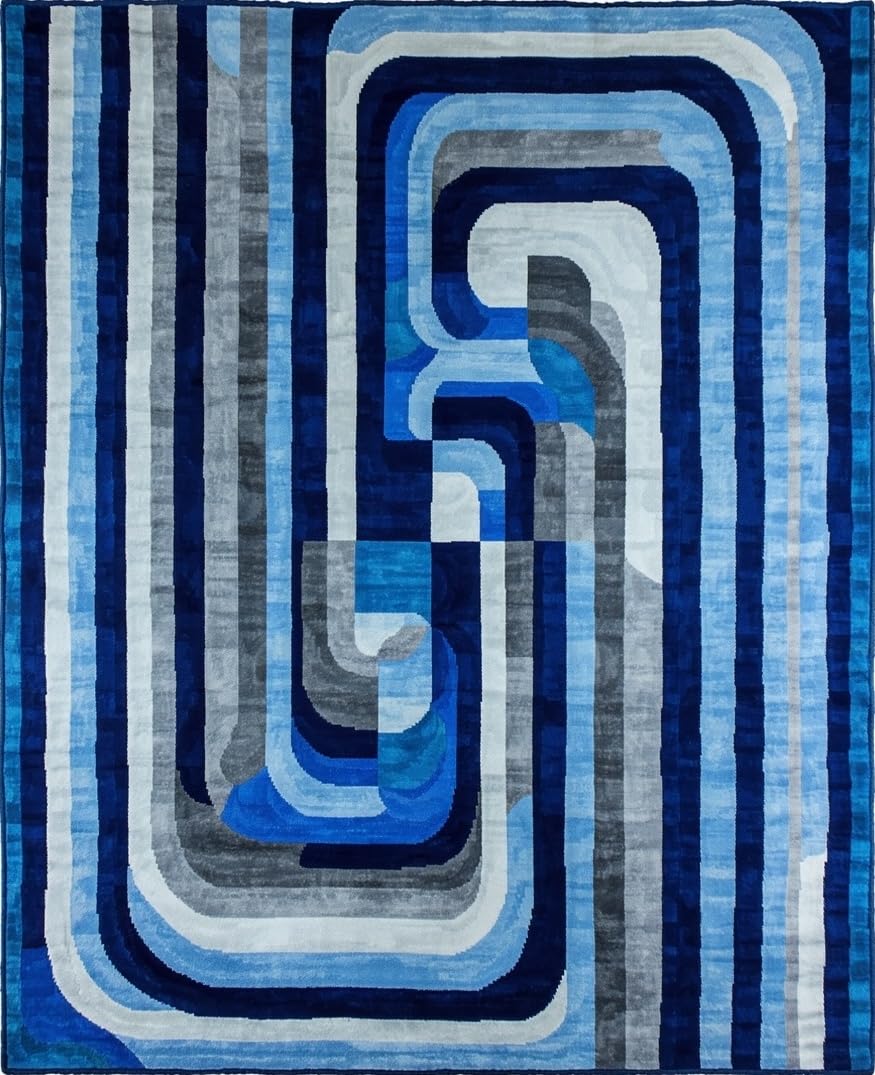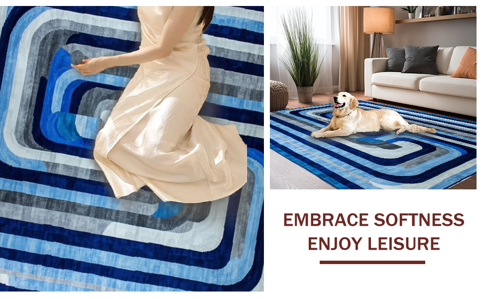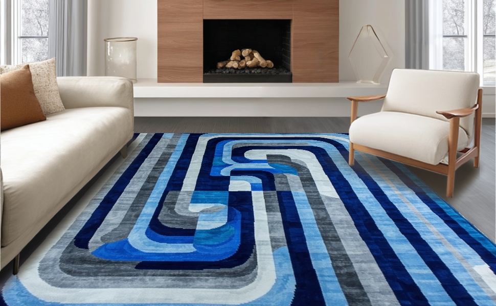 Ultra Soft Area Rug, Non Slip, Stain Resistant, Washable Area Rugs for Living Room, Bedroom, Lively Optical Flowing Shapes(Blue) Overview: