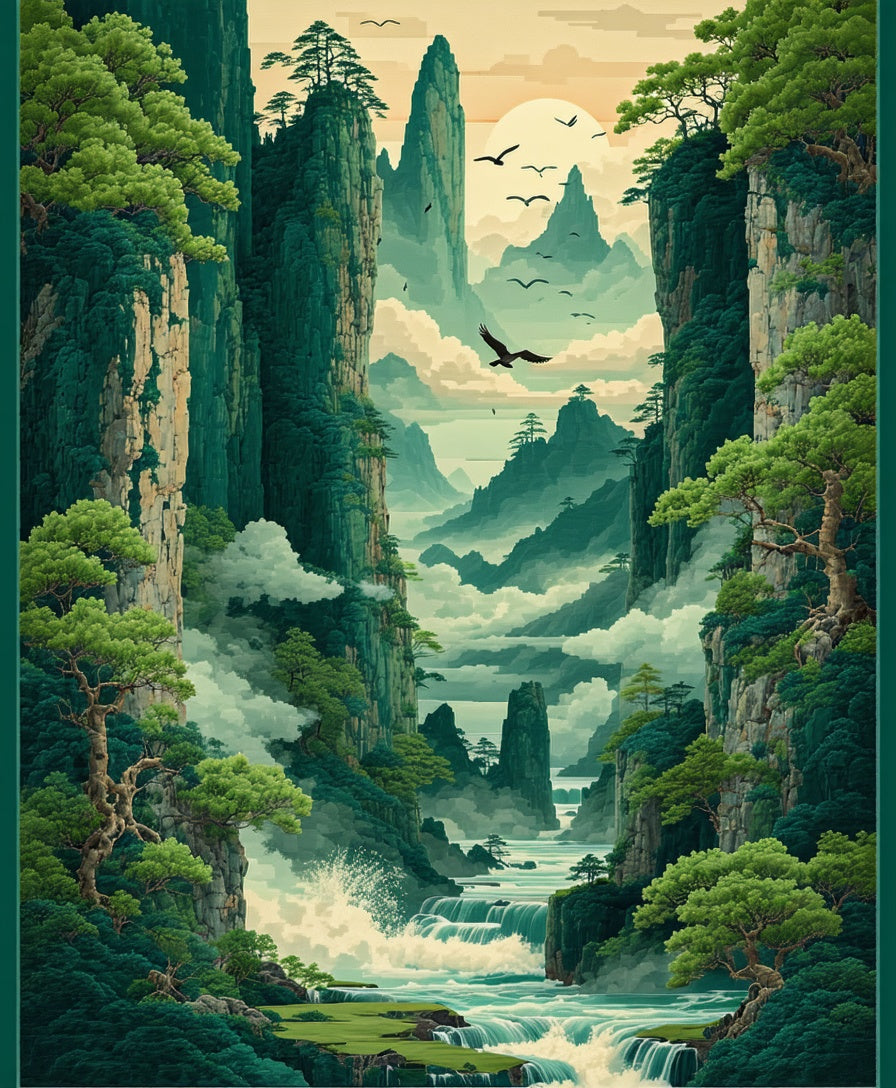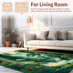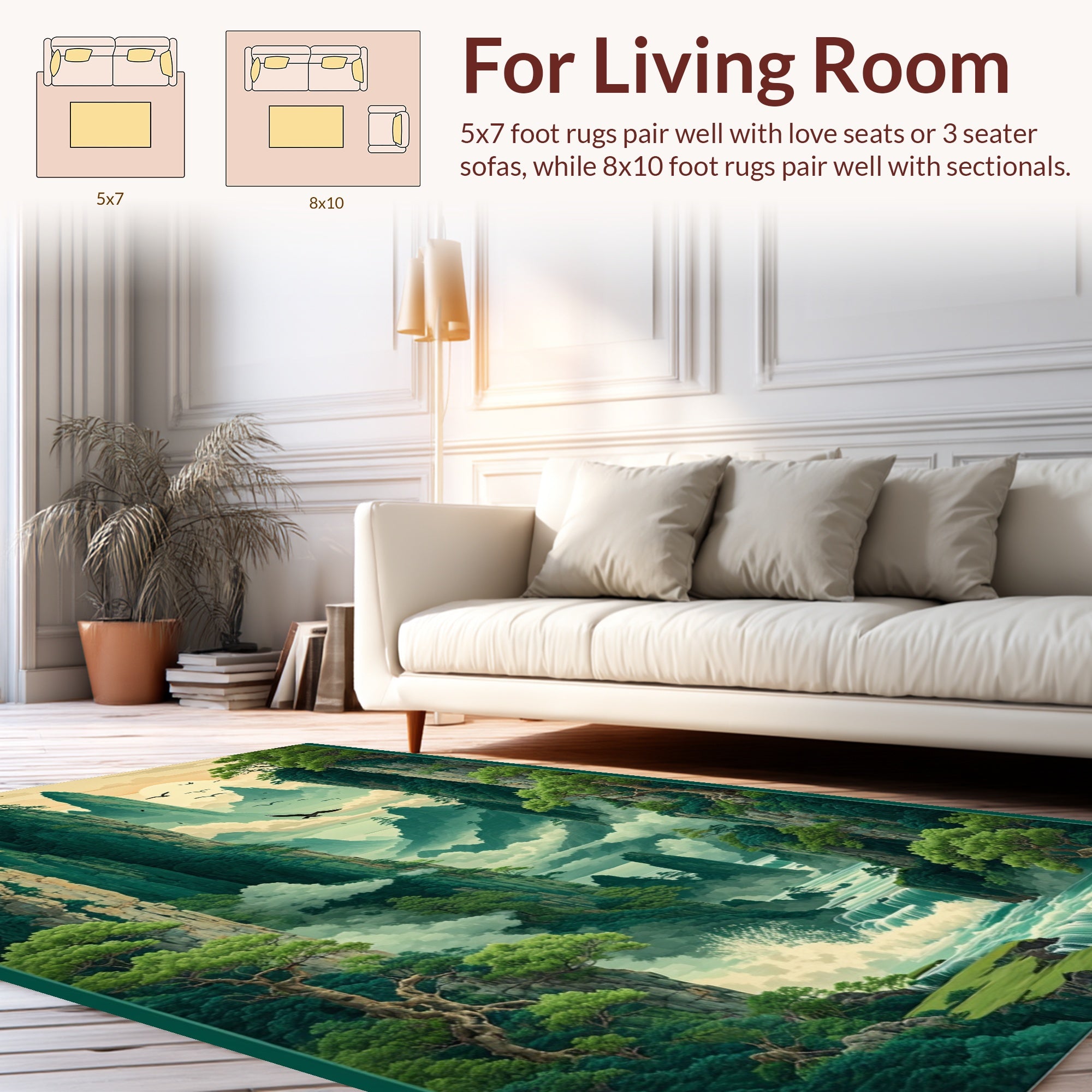 Flatwoven High Traffic Area Rug, Lively Optical Graphic with Cranes, Non Slip, Stain Resistant, Washable Area Rugs for Living Room, Bedroom (Green) Overview: