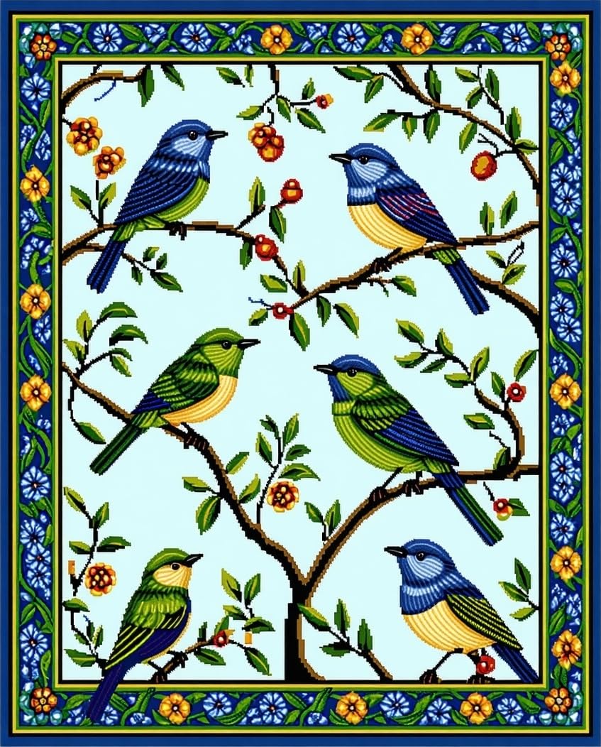 Lively Ornate Bird and Branch Ensemble(Blue)