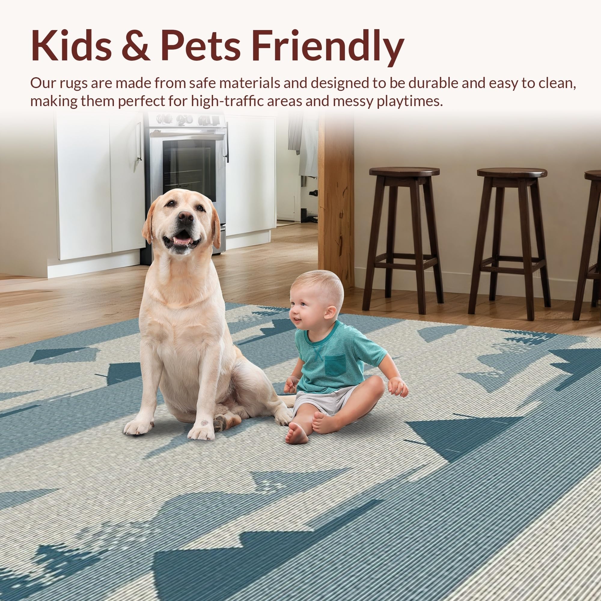 Ultra Soft Area Rug, Non Slip, Stain Resistant, Washable Area Rugs for Living Room, Bedroom, Lively Outdoor Exploration Pattern(Gray) Overview: