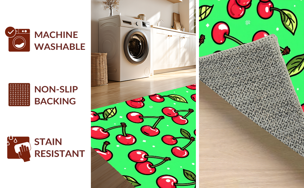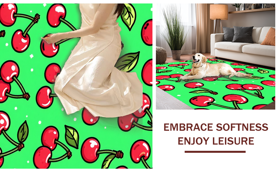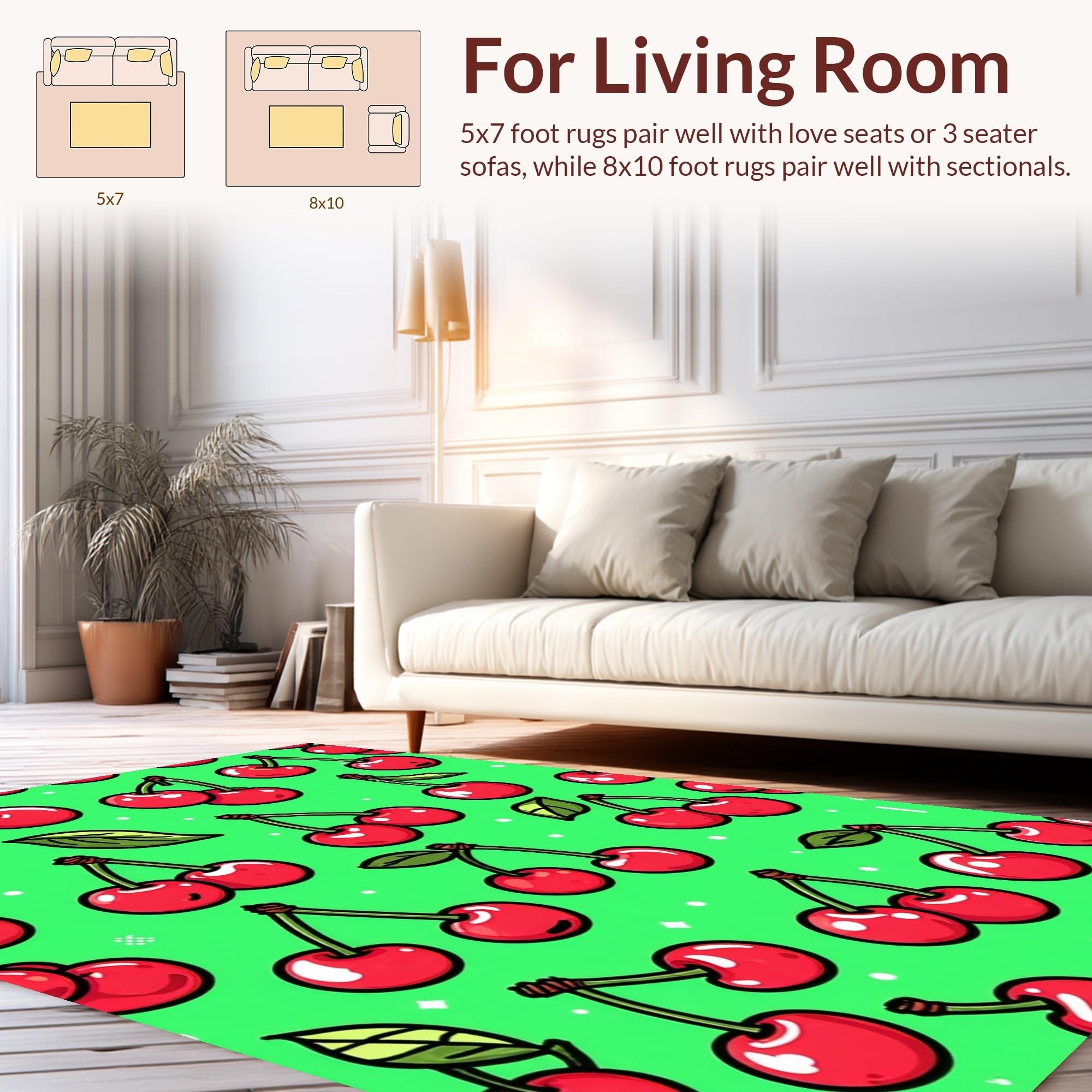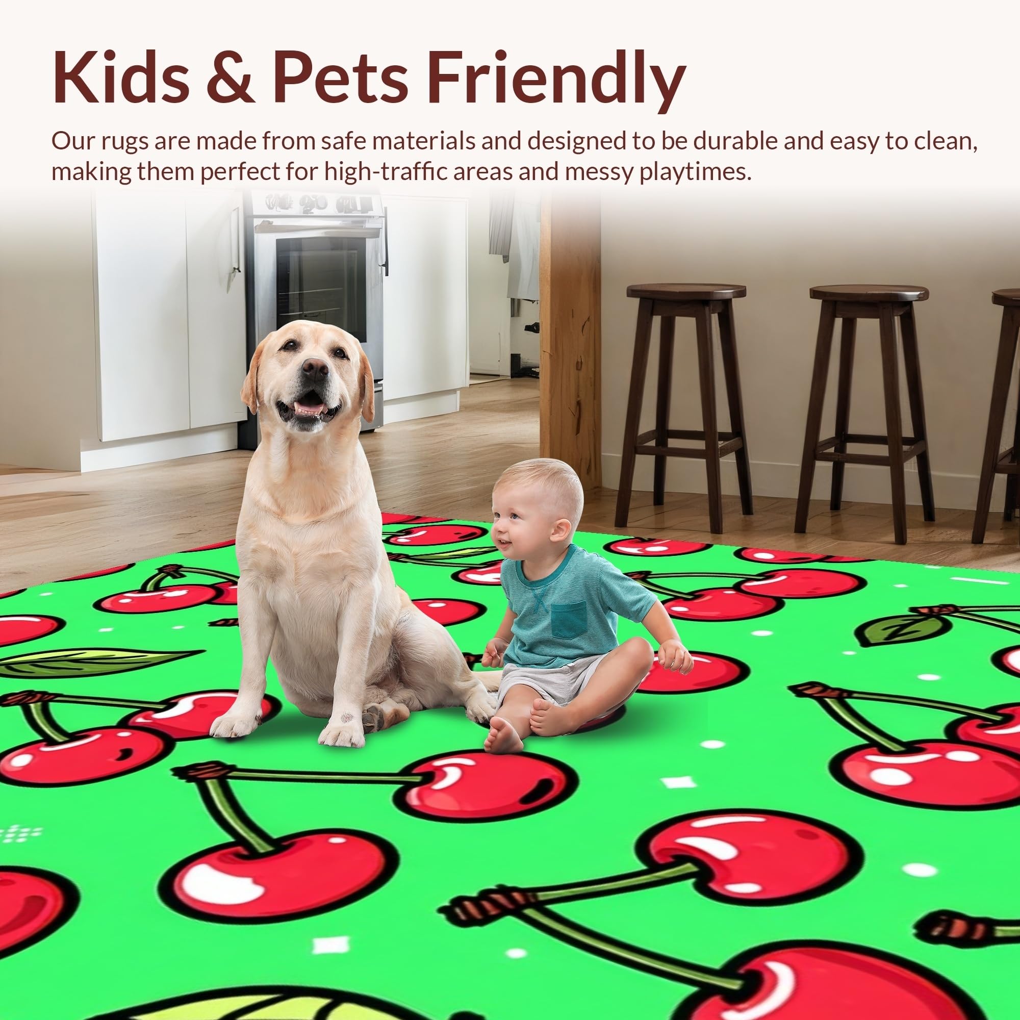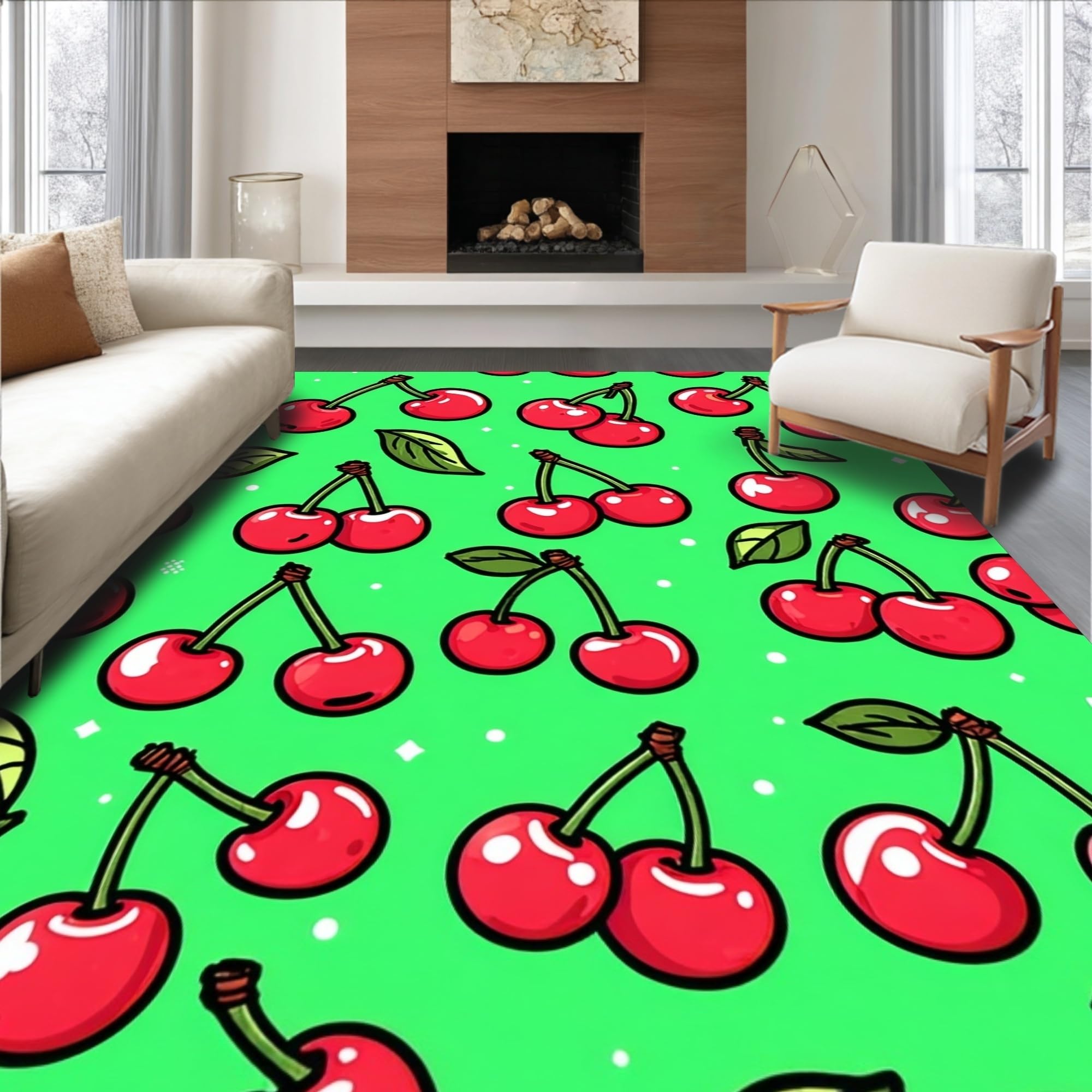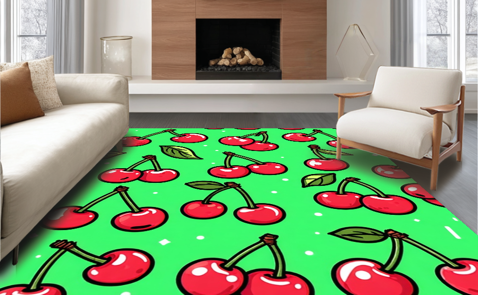 Ultra Soft Area Rug, Non Slip, Stain Resistant, Washable Area Rugs for Living Room, Bedroom, Lively Pastel Fruit Imagery(Green) Overview: