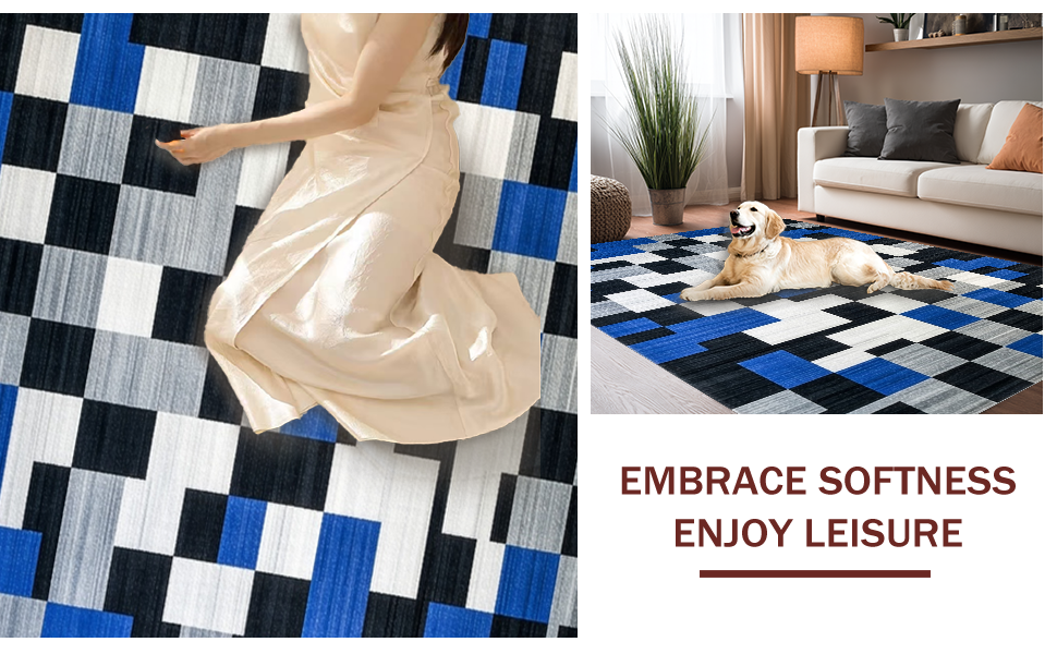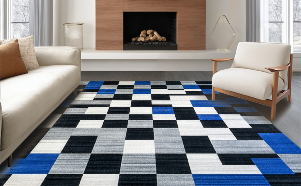 Ultra Soft Area Rug, Non Slip, Stain Resistant, Washable Area Rugs for Living Room, Bedroom, Lively Patterned Geometric Tapestry(Blue) Overview: