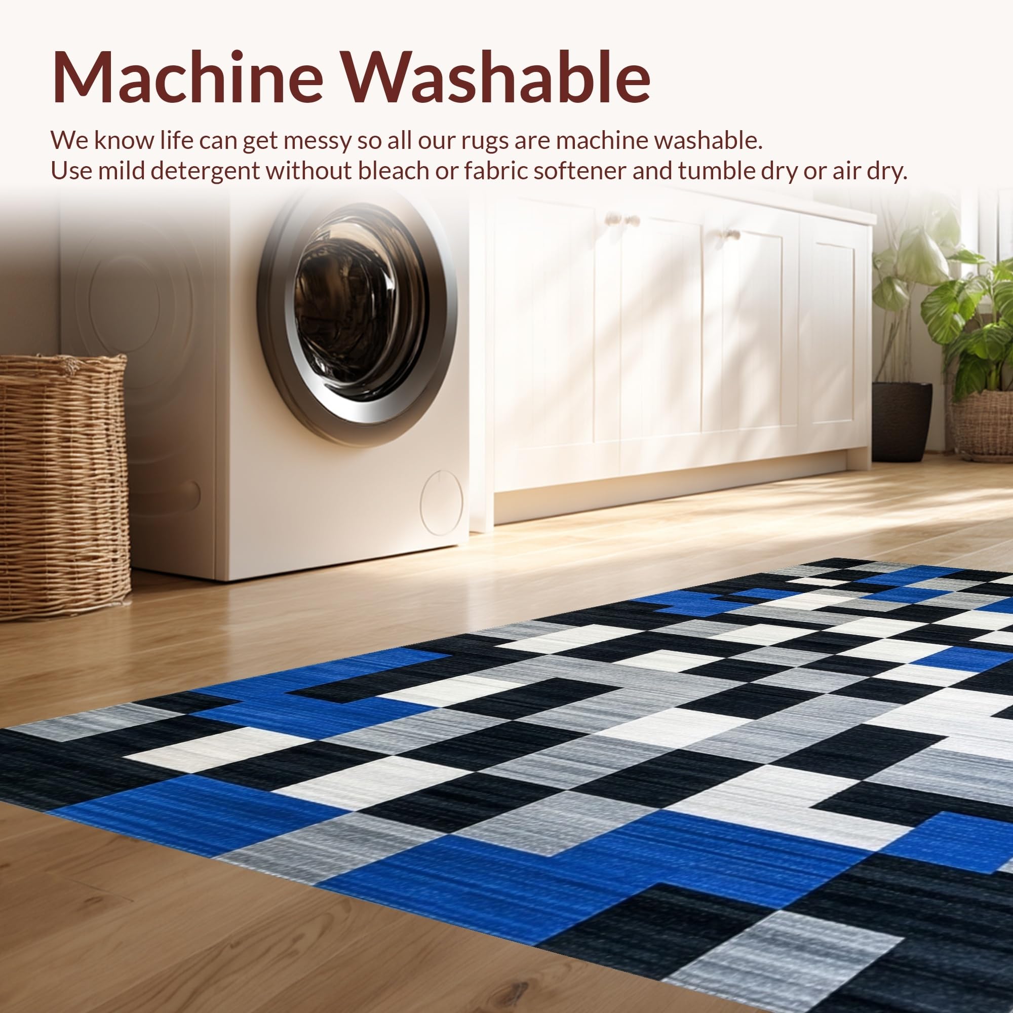 - Machine Washable: Our rugs can be easily thrown in the wash machine.