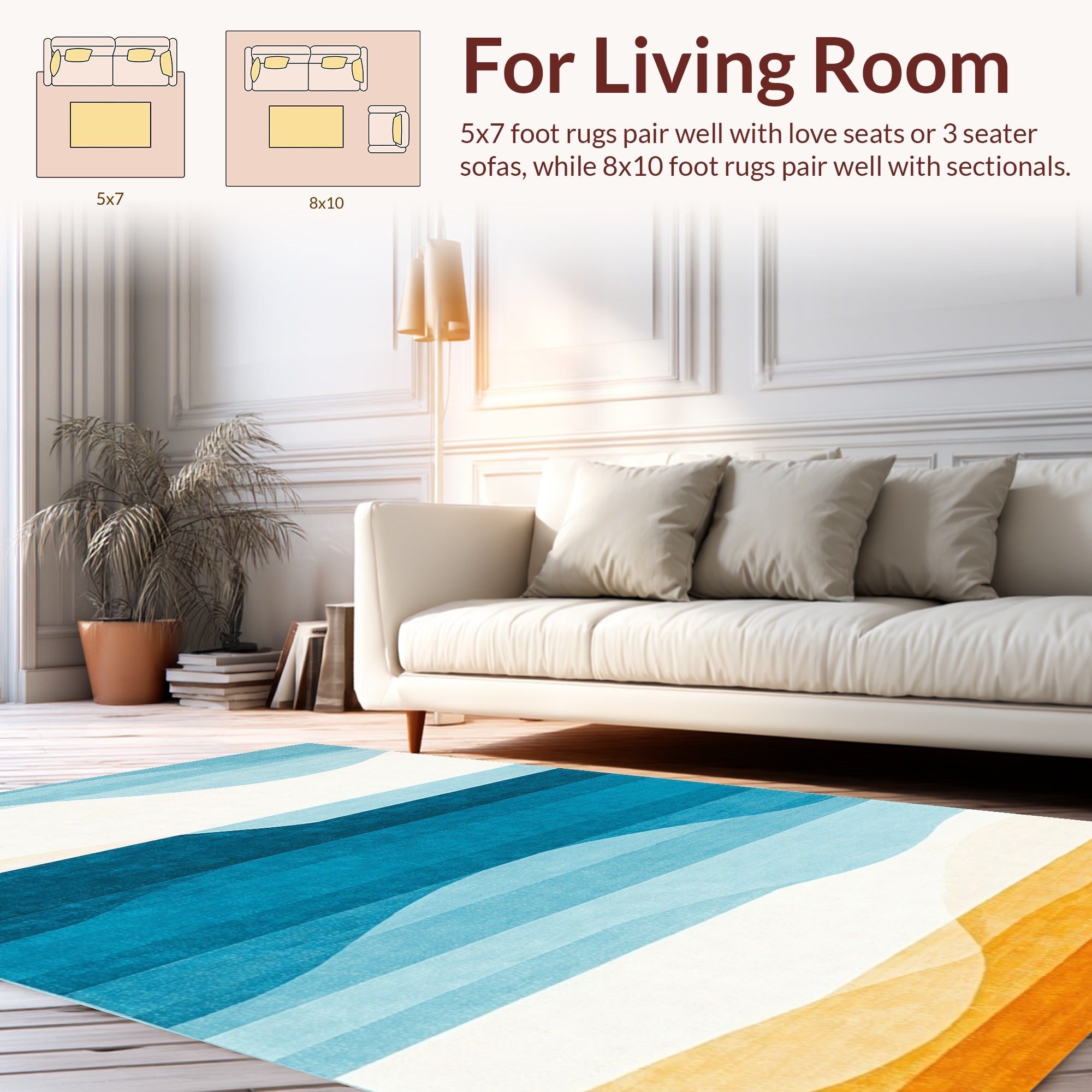 Flatwoven High Traffic Area Rug, Lively Retro Striped Bath, Non Slip, Stain Resistant, Washable Area Rugs for Living Room, Bedroom (Blue) Overview:
