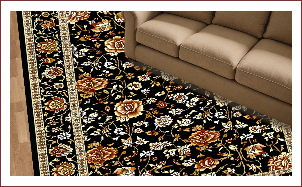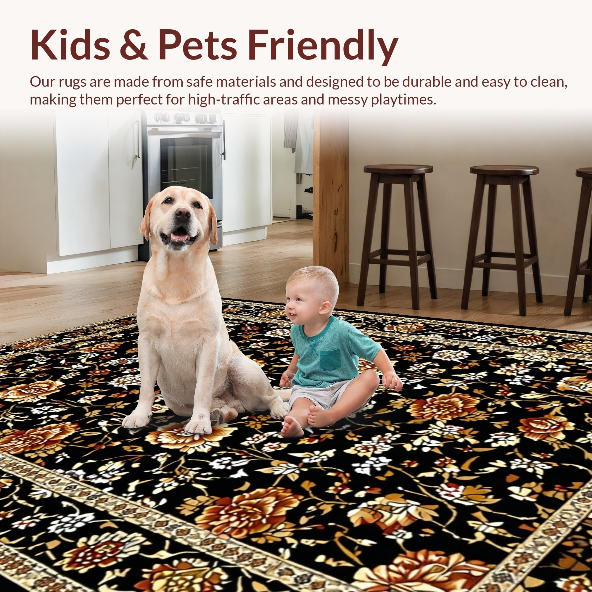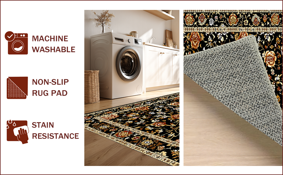 Ultra Soft Area Rug, Non Slip, Stain Resistant, Washable Area Rugs for Living Room, Bedroom, Lively Reversible Cottage Design(Black) Overview: