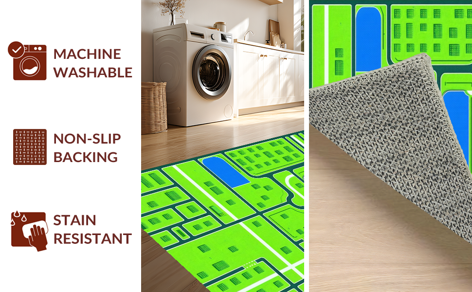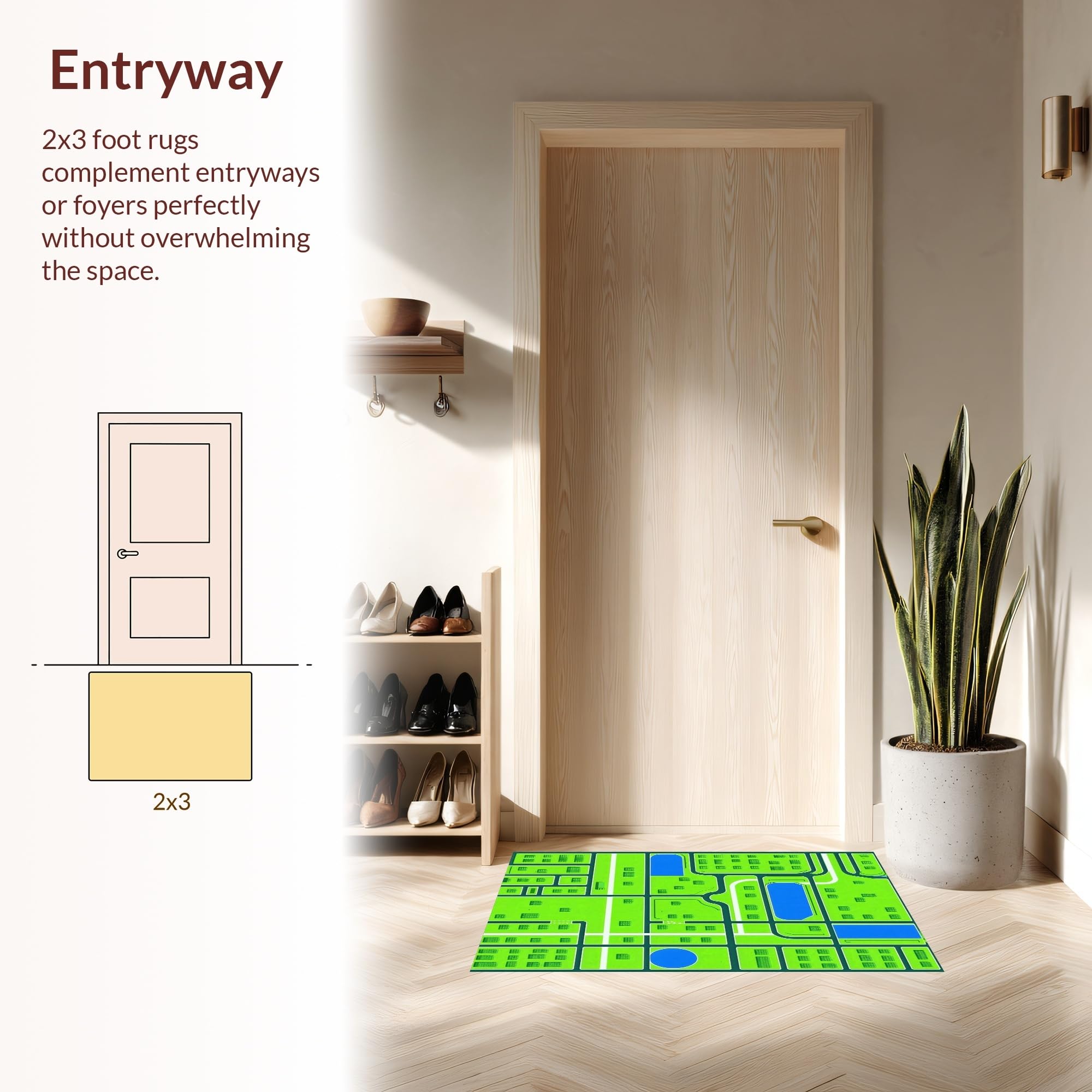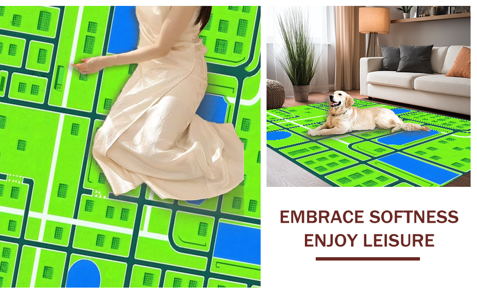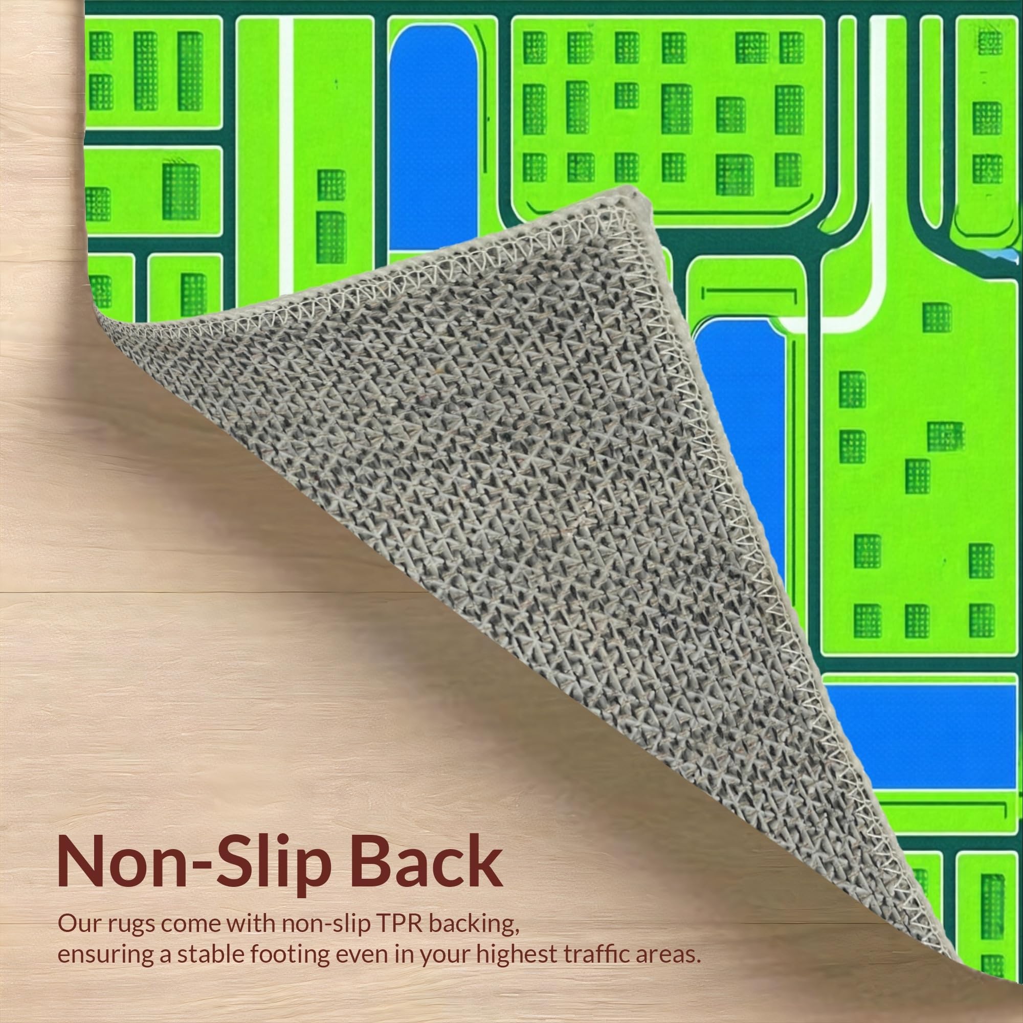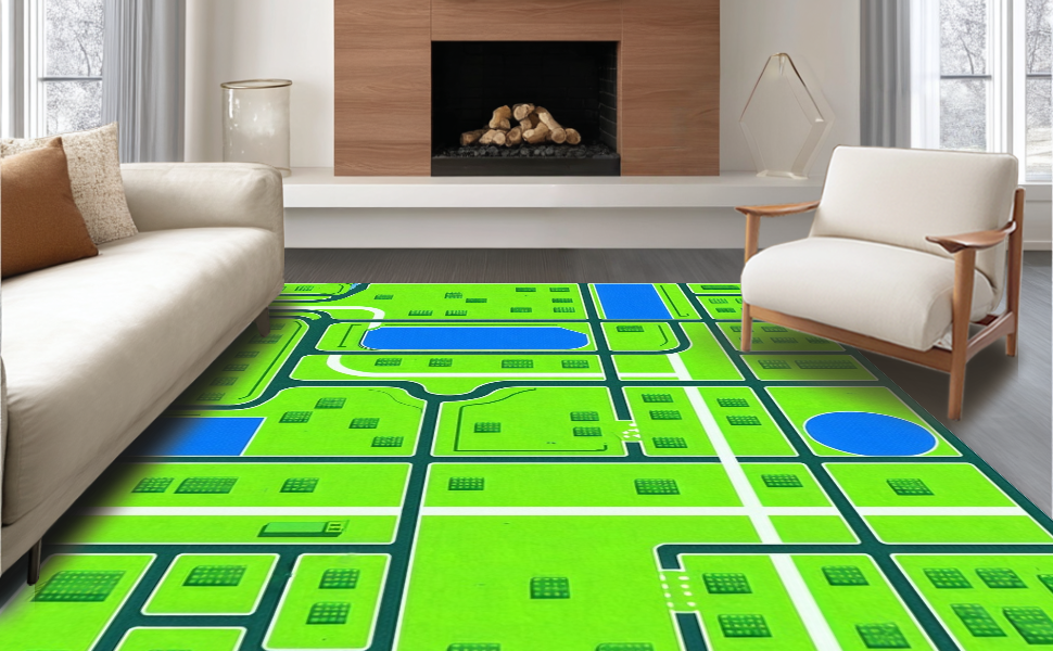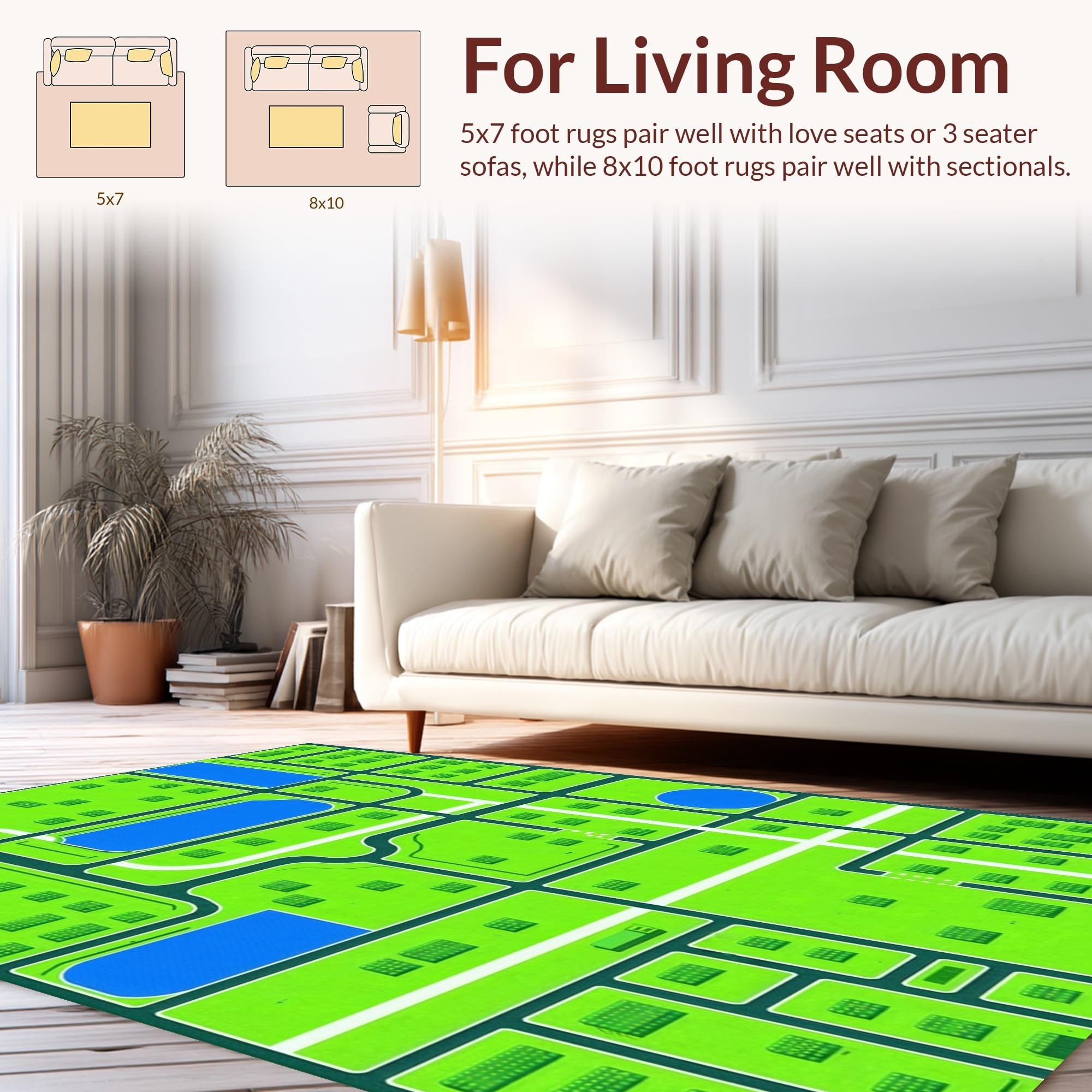 Ultra Soft Area Rug, Non Slip, Stain Resistant, Washable Area Rugs for Living Room, Bedroom, Lively Street Map Educational Visual(Green) Overview: