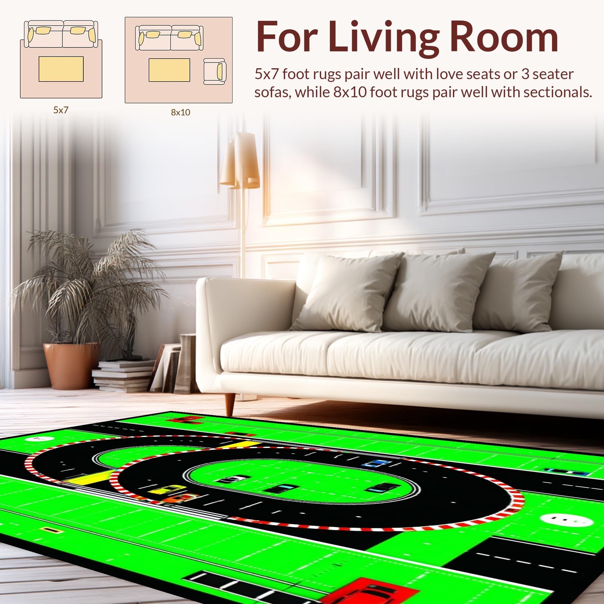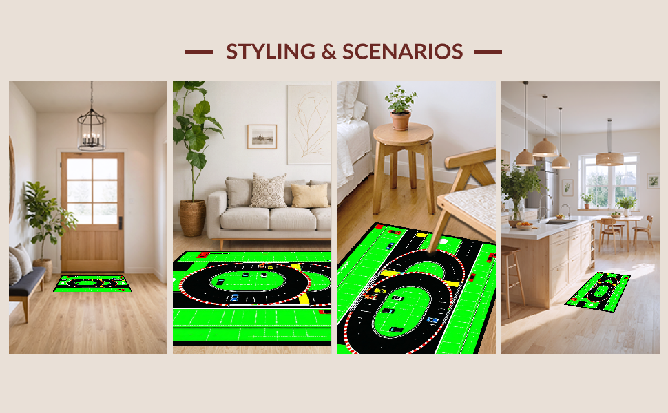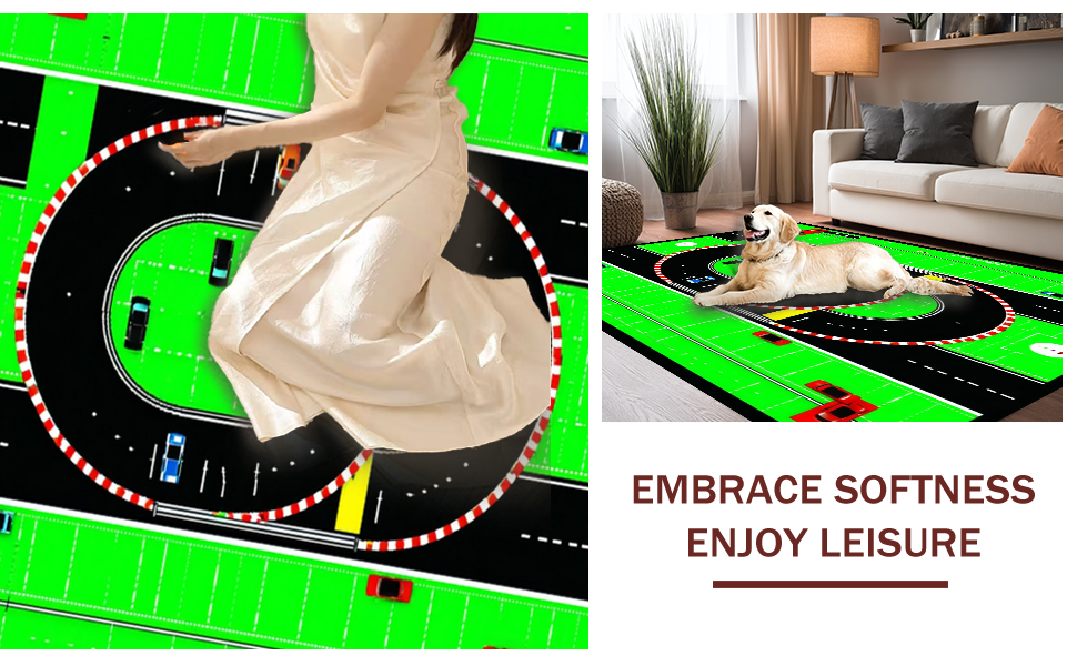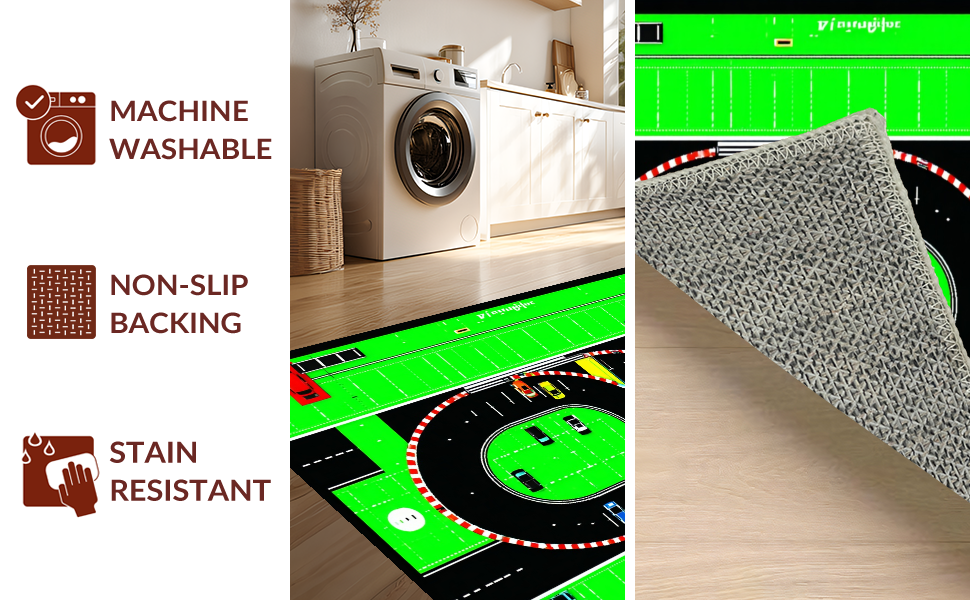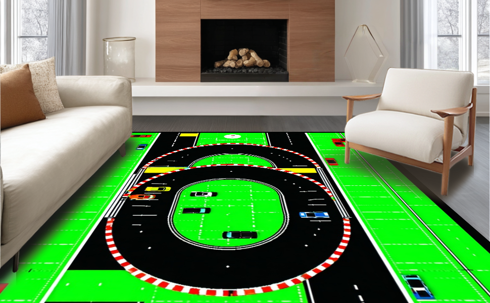 Ultra Soft Area Rug, Non Slip, Stain Resistant, Washable Area Rugs for Living Room, Bedroom, Lively Traffic Themed Play Surface(Green) Overview: