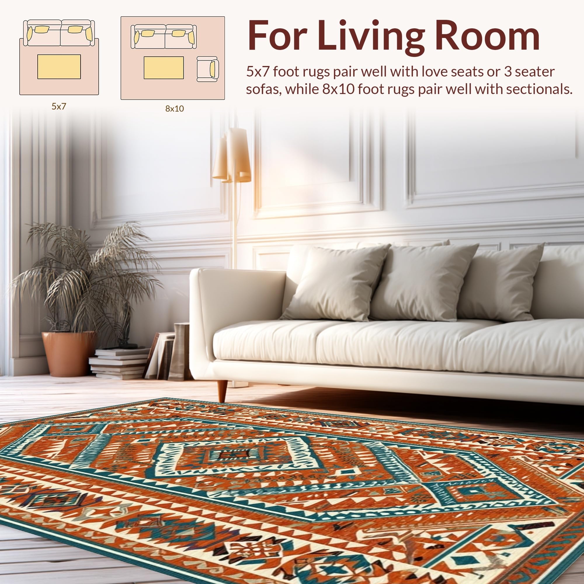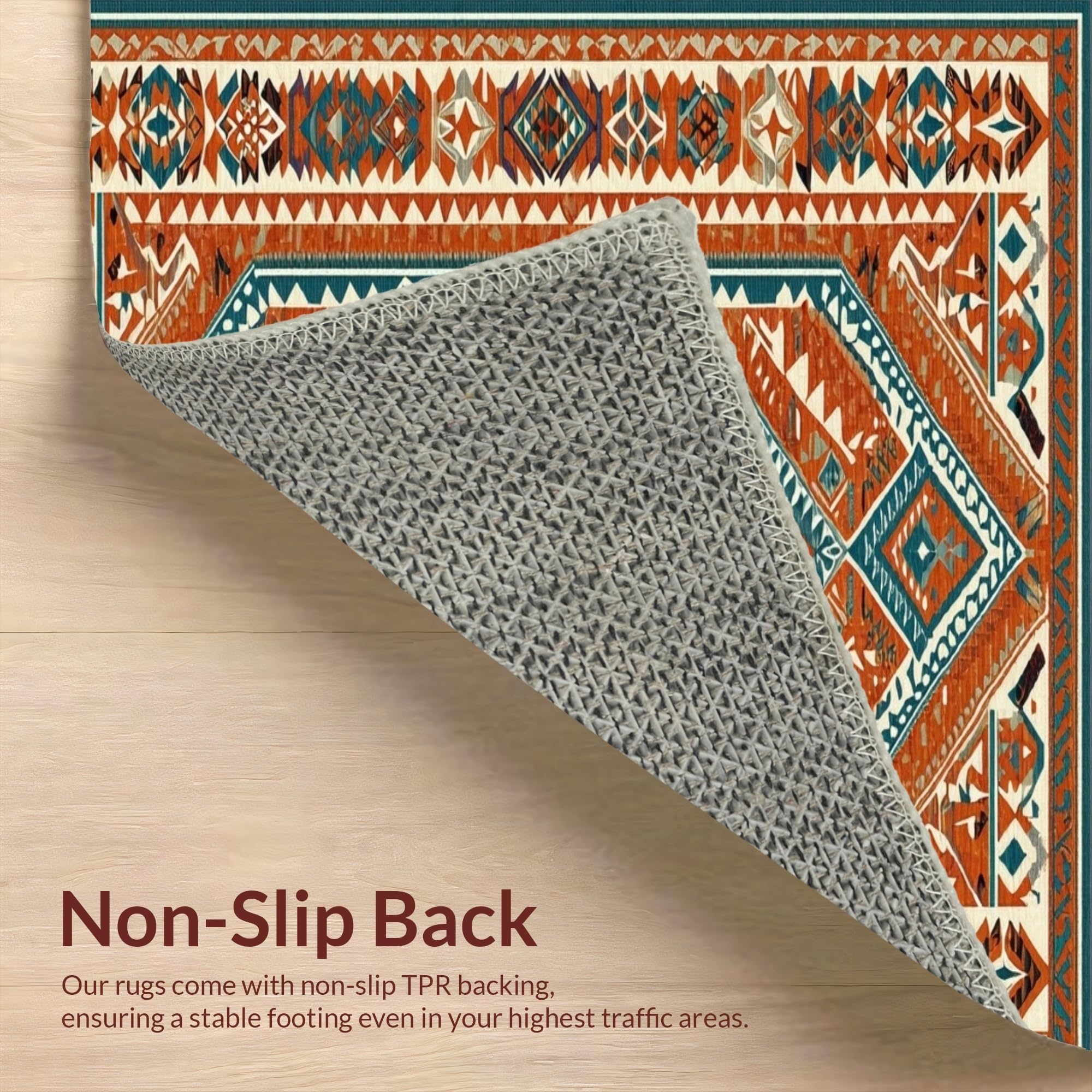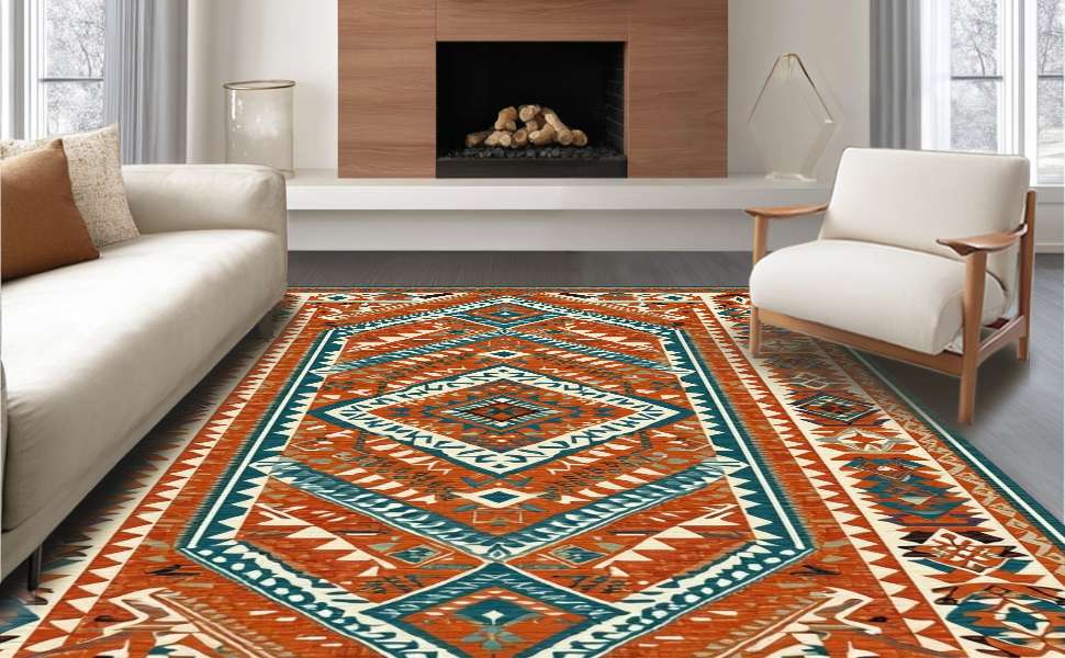 Ultra Soft Area Rug, Non Slip, Stain Resistant, Washable Area Rugs for Living Room, Bedroom, Lively Tribal Tiled Decoration(Red) Overview:
