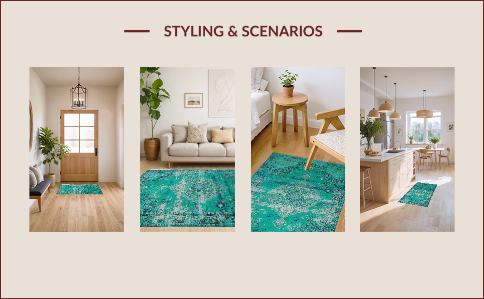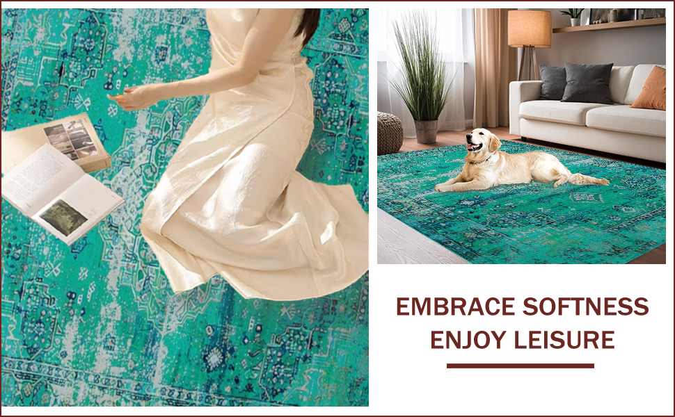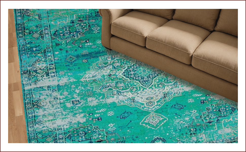 Ultra Soft Area Rug, Non Slip, Stain Resistant, Washable Area Rugs for Living Room, Bedroom, Lively Turquoise Floral Motif(Blue) Overview: