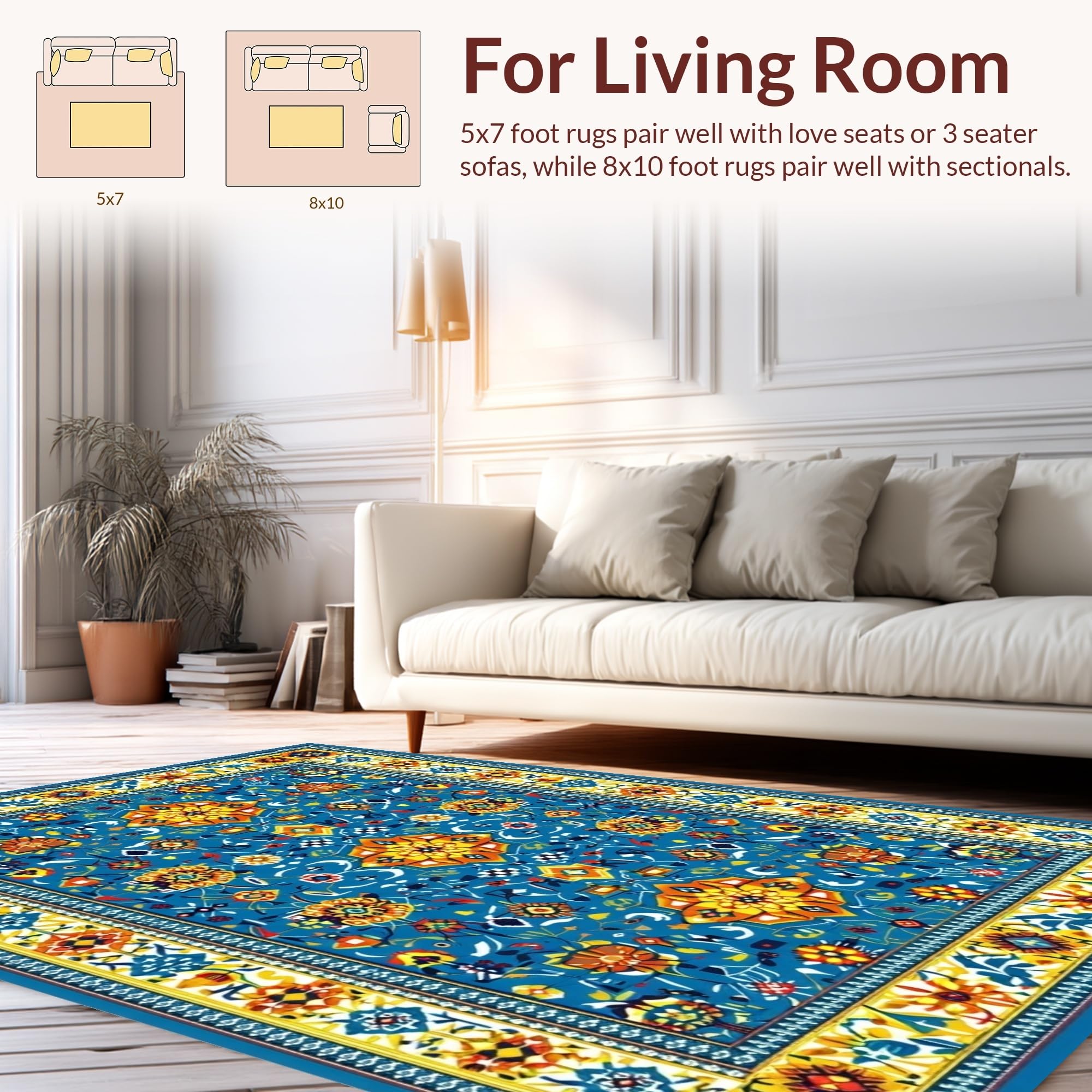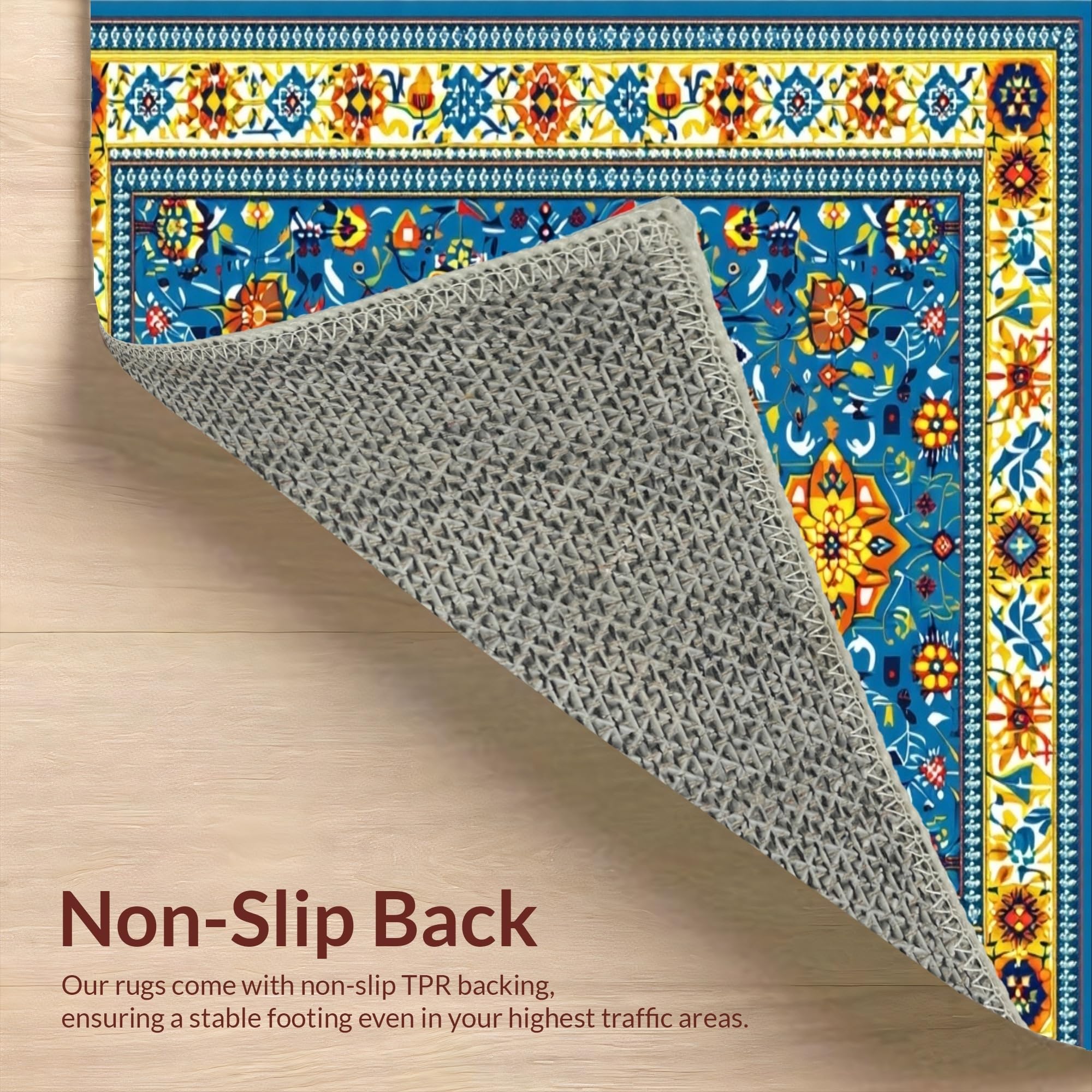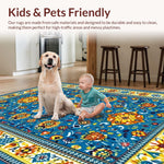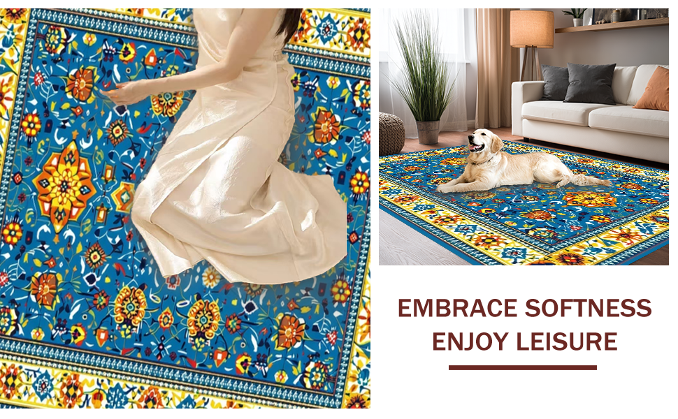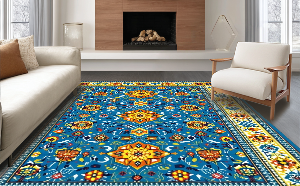 Ultra Soft Area Rug, Non Slip, Stain Resistant, Washable Area Rugs for Living Room, Bedroom, Lively Vintage Lattice Composition(Blue) Overview:
