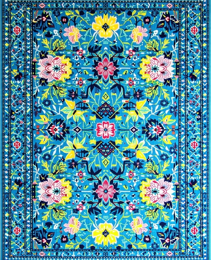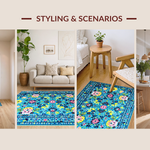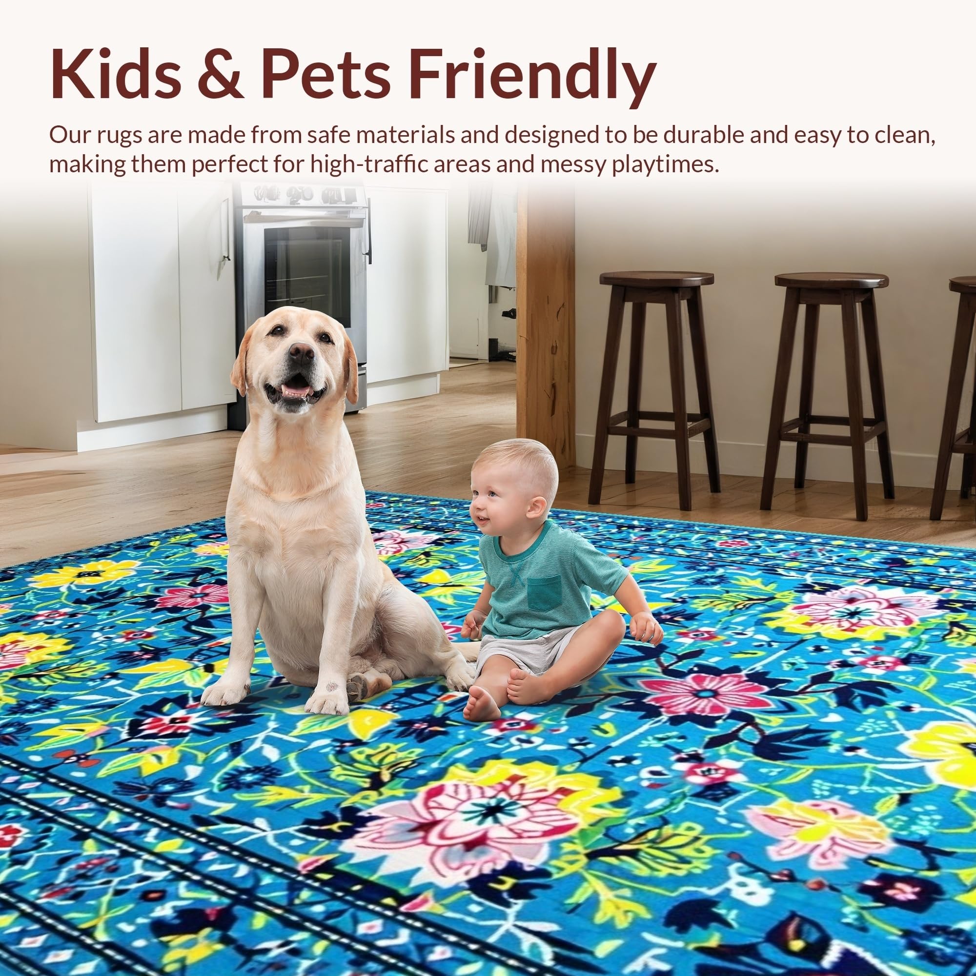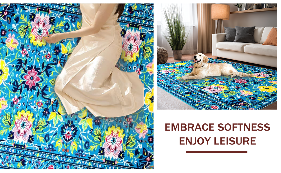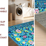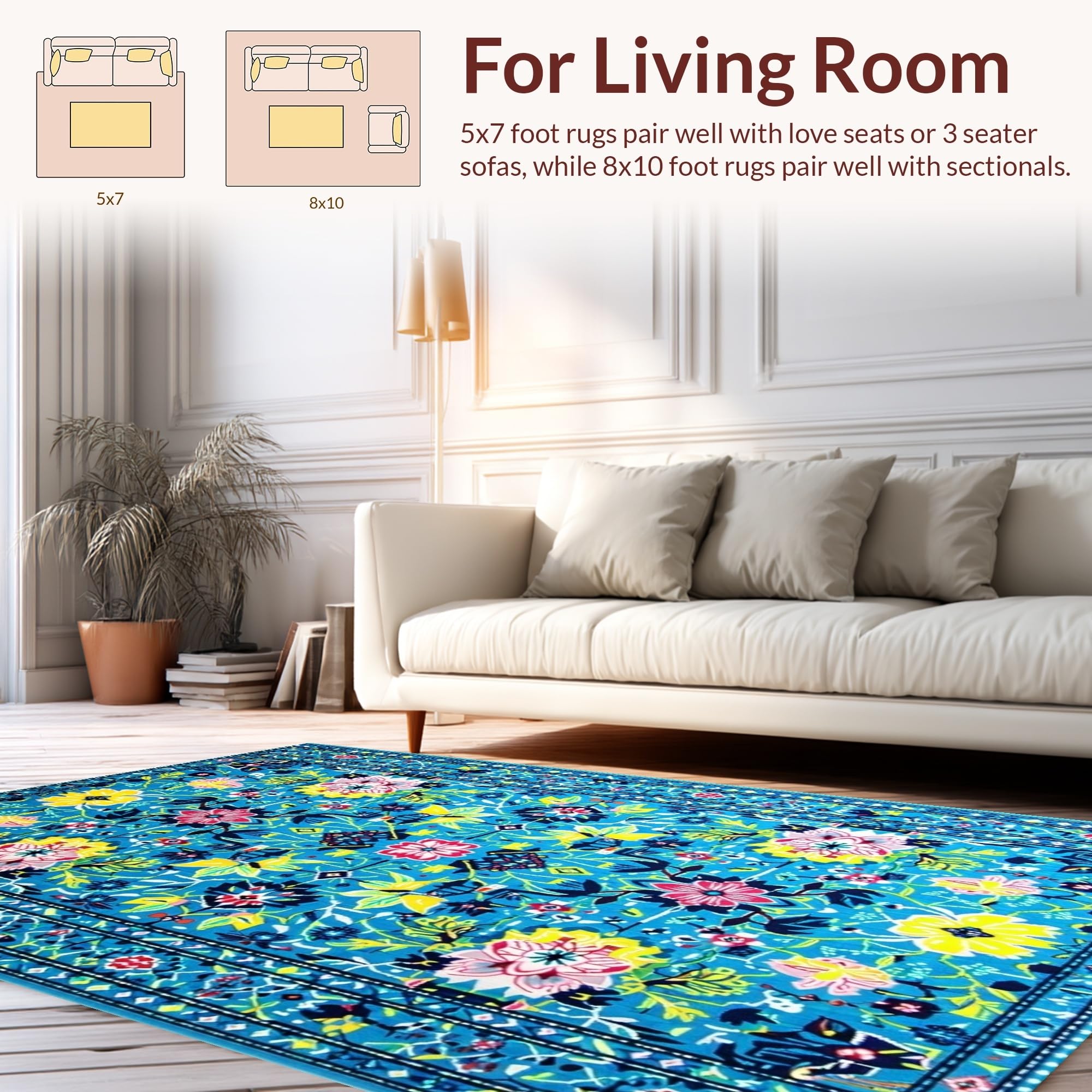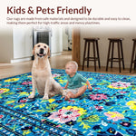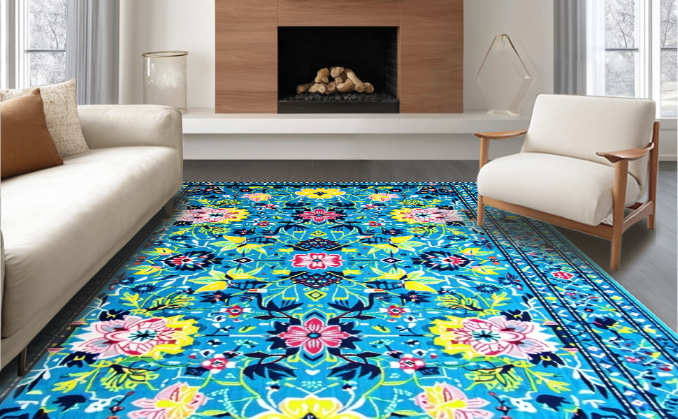 Ultra Soft Area Rug, Non Slip, Stain Resistant, Washable Area Rugs for Living Room, Bedroom, Lovely Pastel Flower Accents(Blue) Overview: