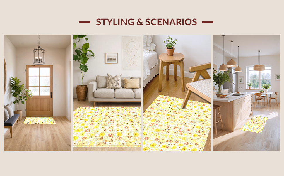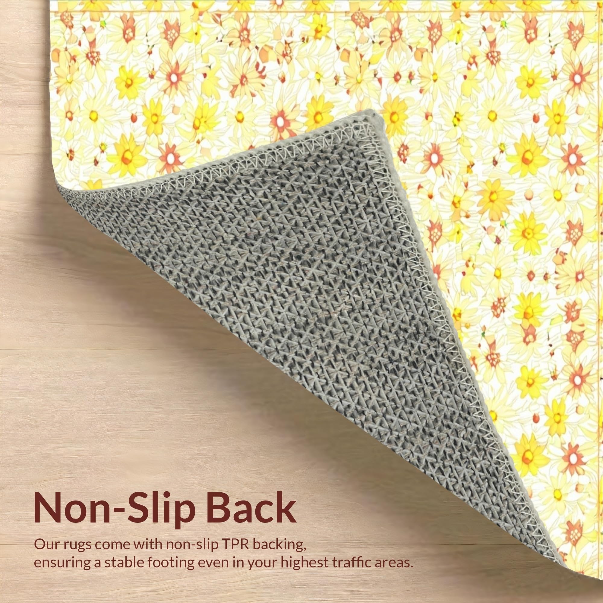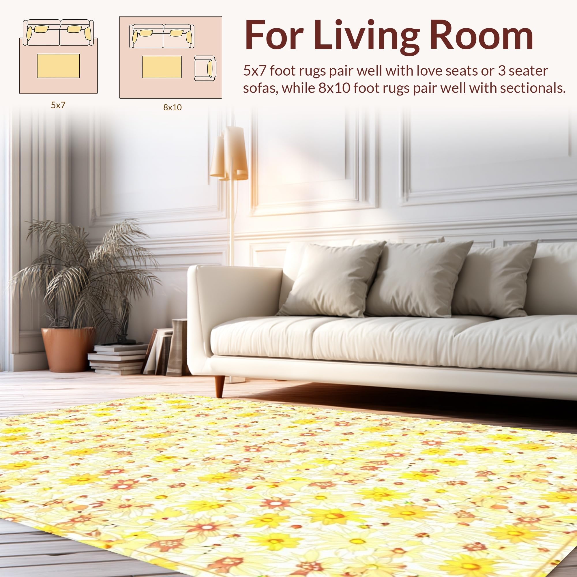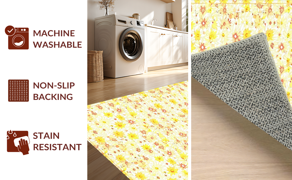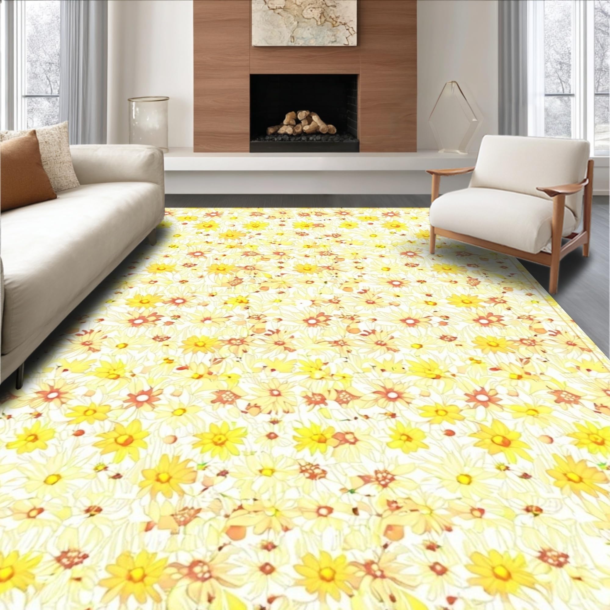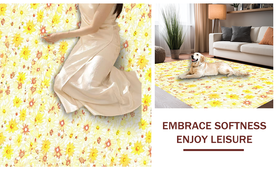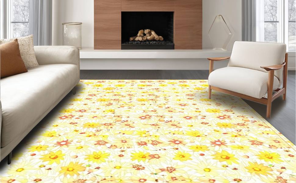Ultra Soft Area Rug, Non Slip, Stain Resistant, Washable Area Rugs for Living Room, Bedroom, Lovely Springtime Floral Texture(Yellow) Overview: