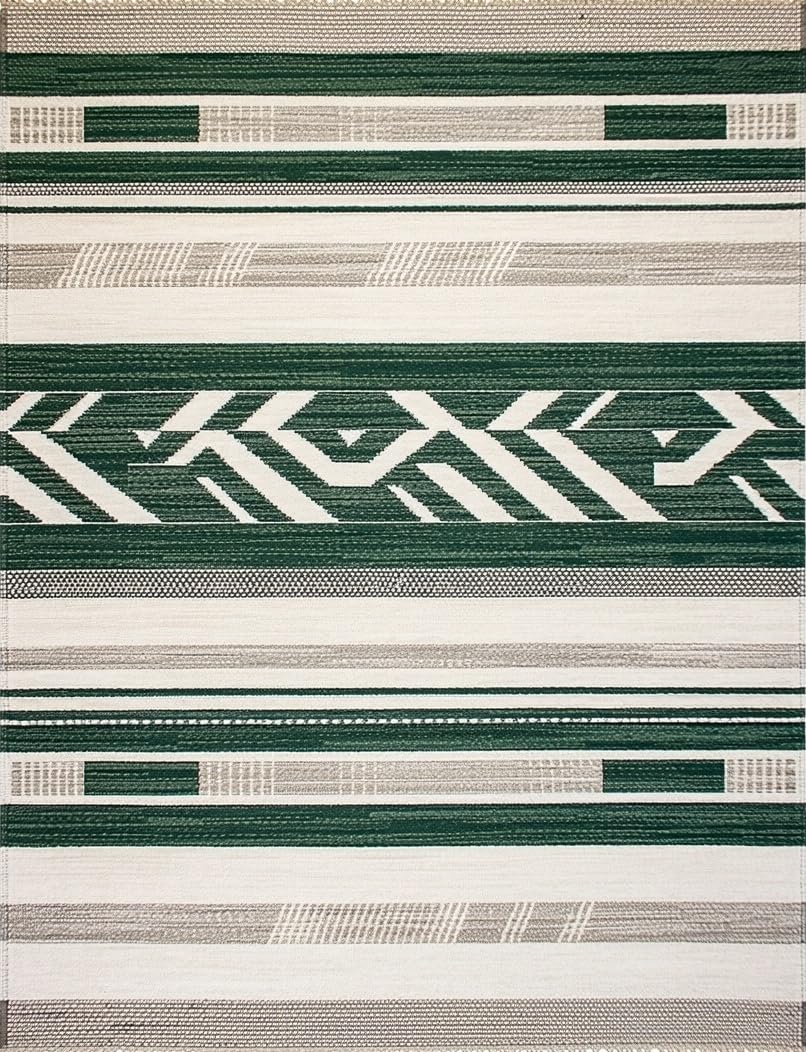 Low Pile Area with Beige and Green Boho Chevron(Green)