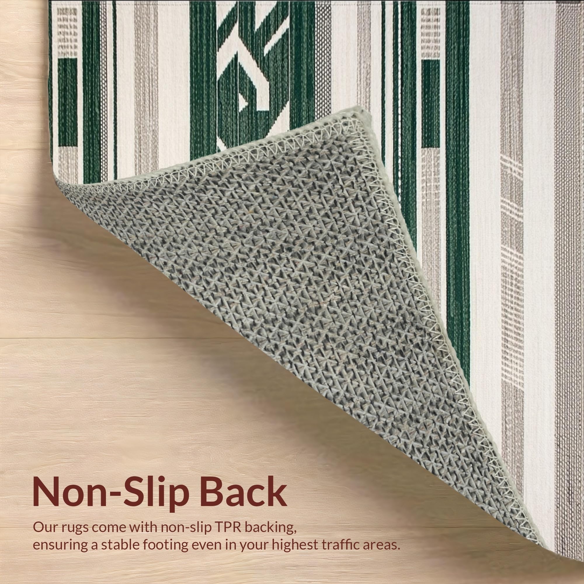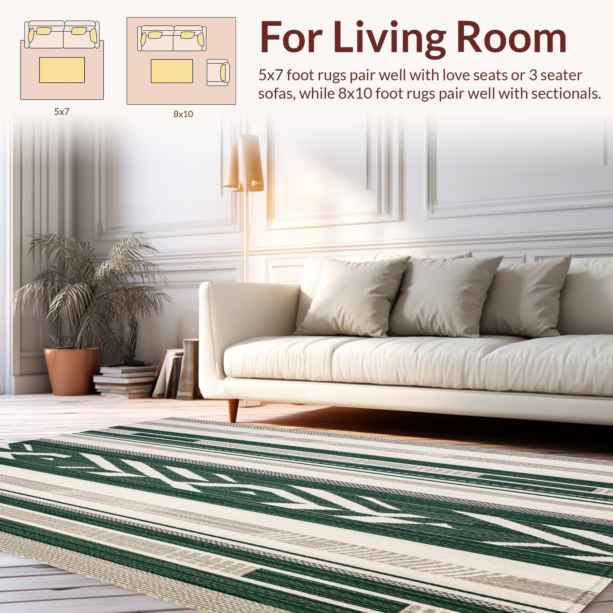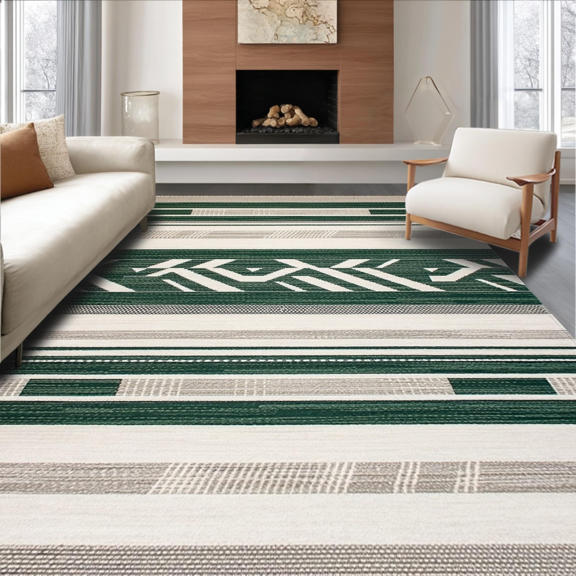 Ultra Soft Area Rug, Non Slip, Stain Resistant, Washable Area Rugs for Living Room, Bedroom, Low Pile Area with Beige and Green Boho Chevron(Green) Overview: