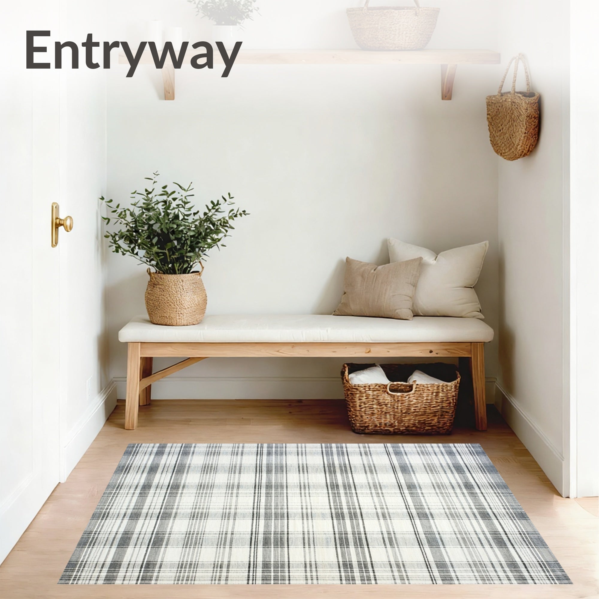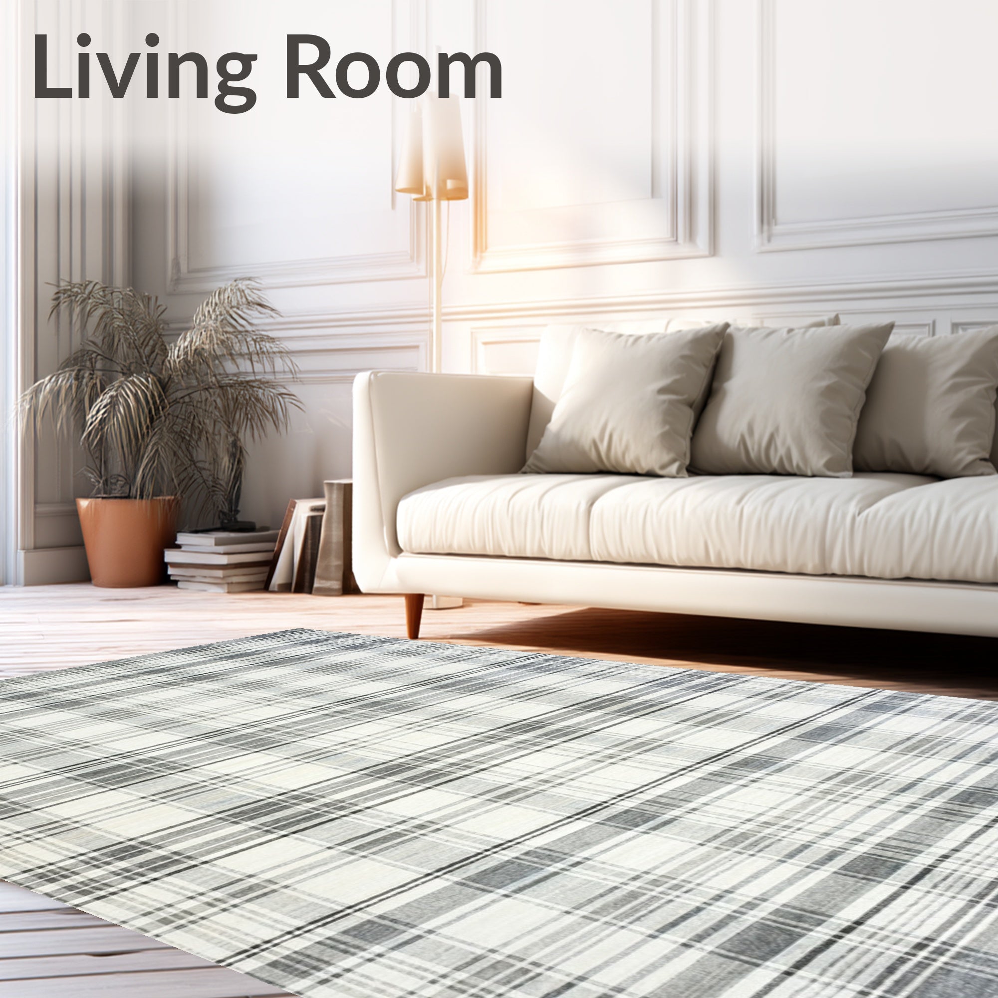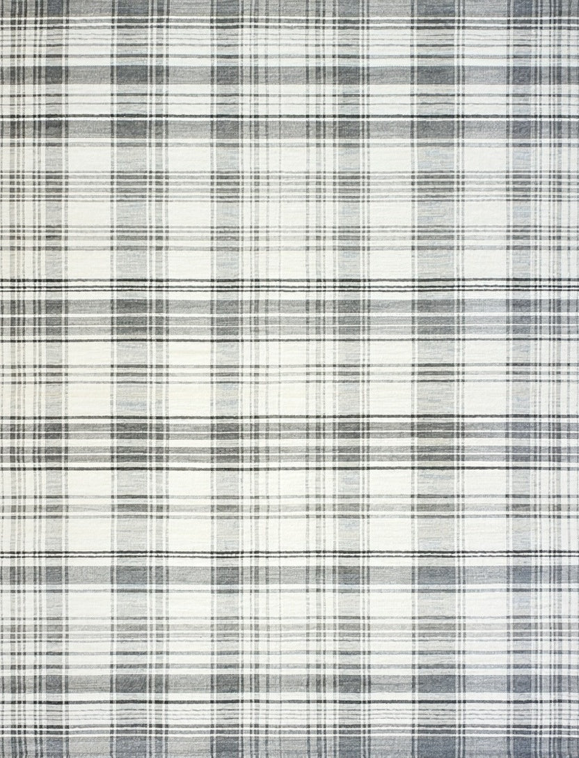 Flatwoven High Traffic Area Rug, Low Pile Non Shedding Rug with Classic Plaid Edge Design, Non Slip, Stain Resistant, Washable Area Rugs for Living Room, Bedroom (Gray) Overview: