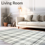 Low Pile Non Shedding Rug with Classic Plaid Edge Design(Gray)