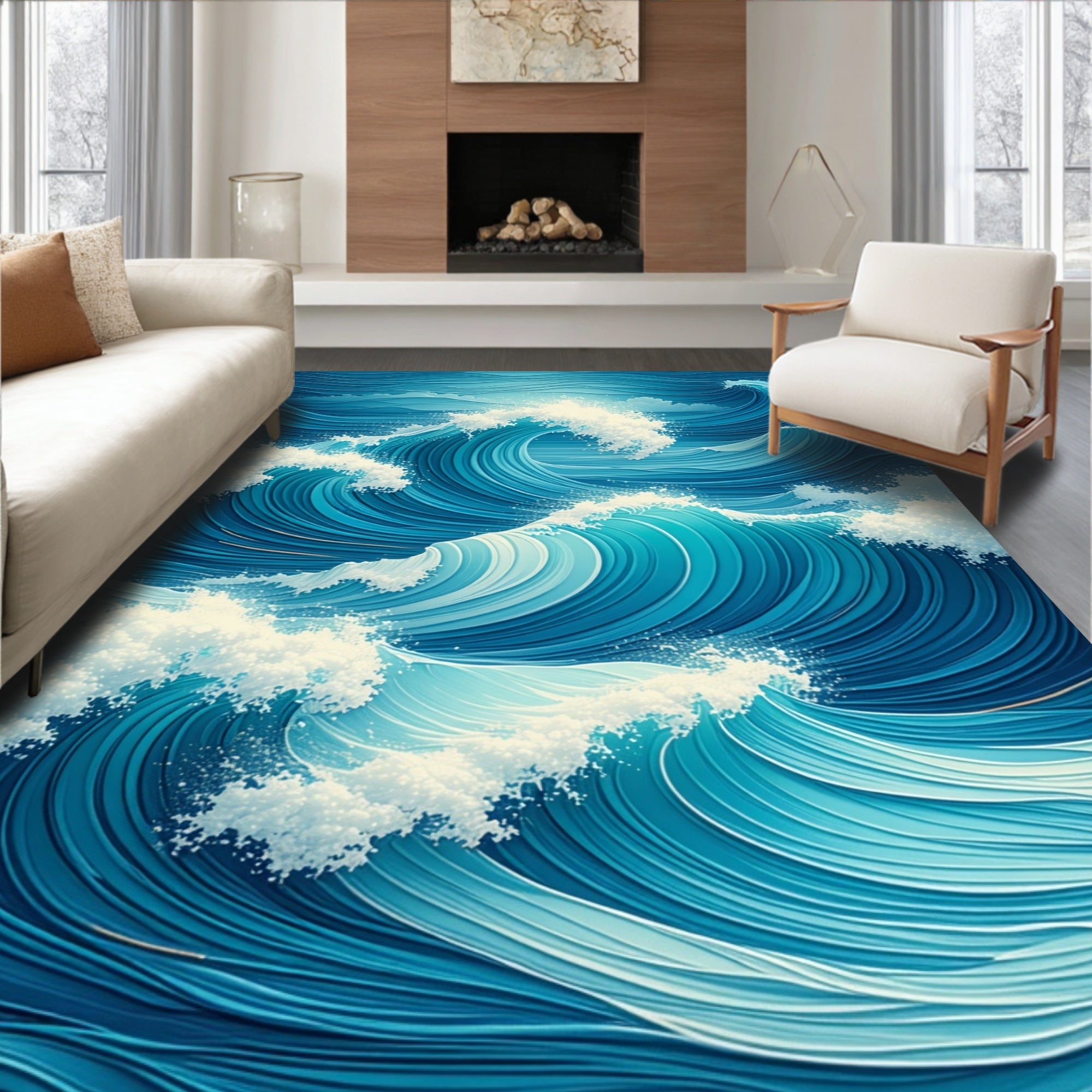 Flatwoven High Traffic Area Rug, Low Profile Beach House Doormat, Non Slip, Stain Resistant, Washable Area Rugs for Living Room, Bedroom (Blue) Overview: