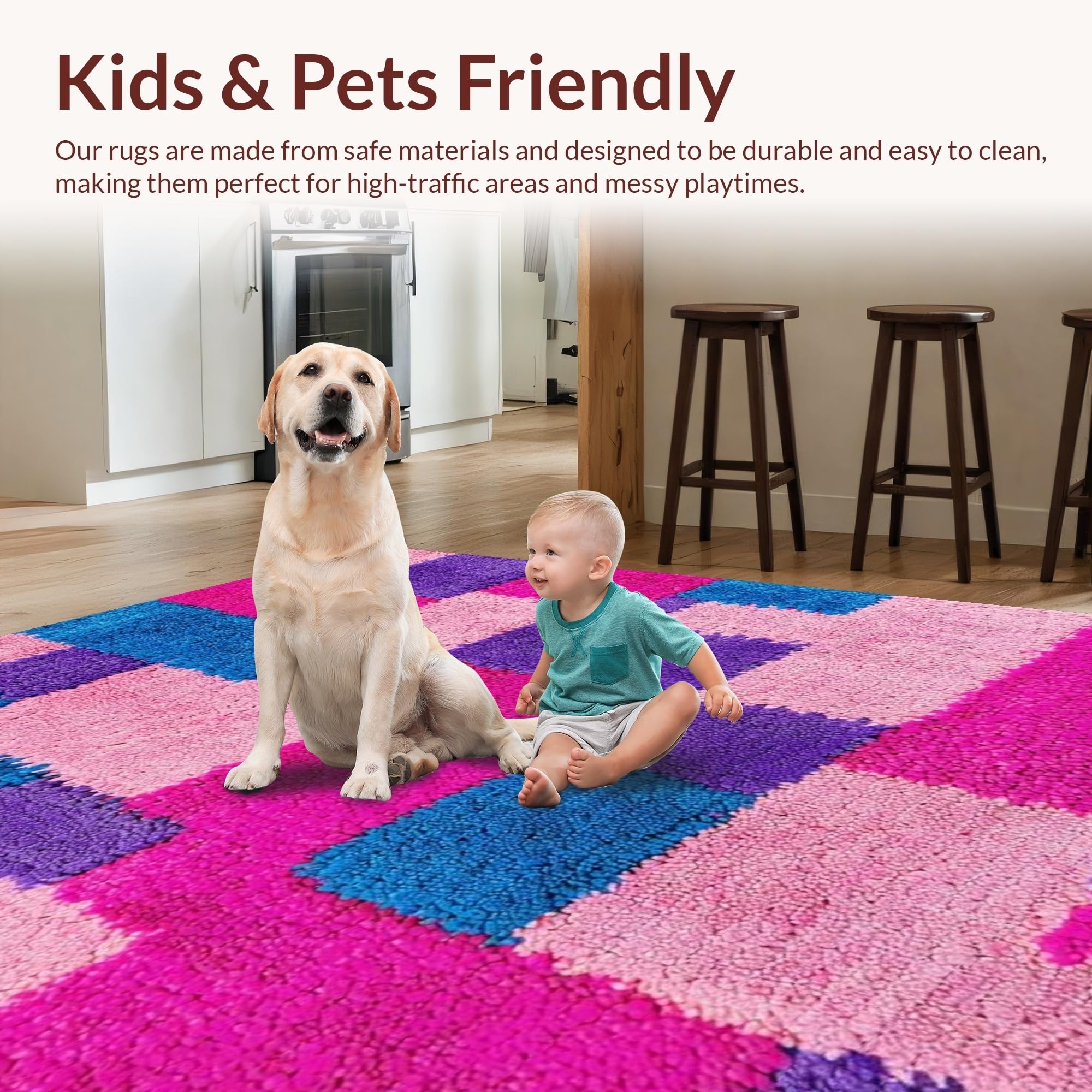Ultra Soft Area Rug, Non Slip, Stain Resistant, Washable Area Rugs for Living Room, Bedroom, Lush 3D Textured Botanical Design(Pink) Overview: