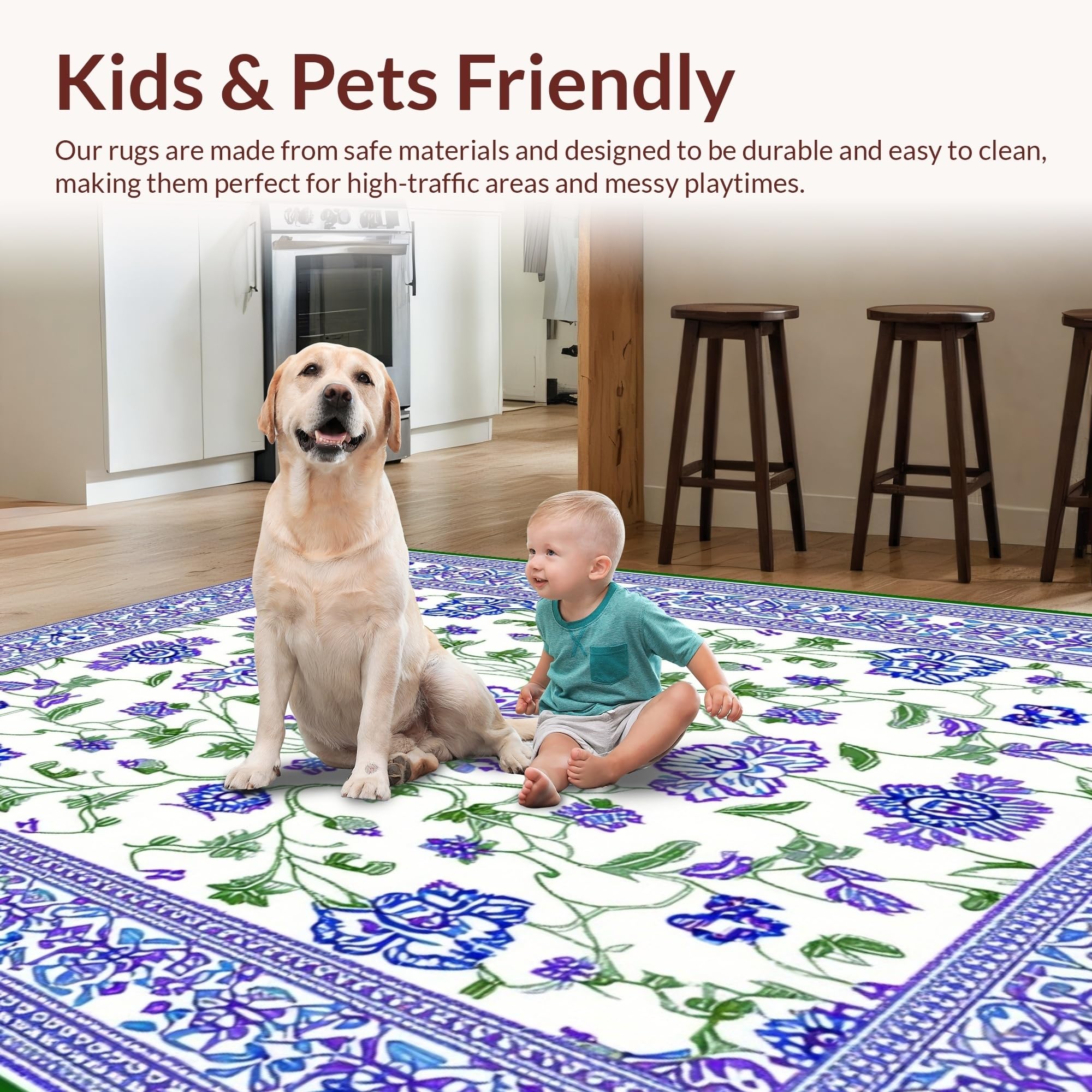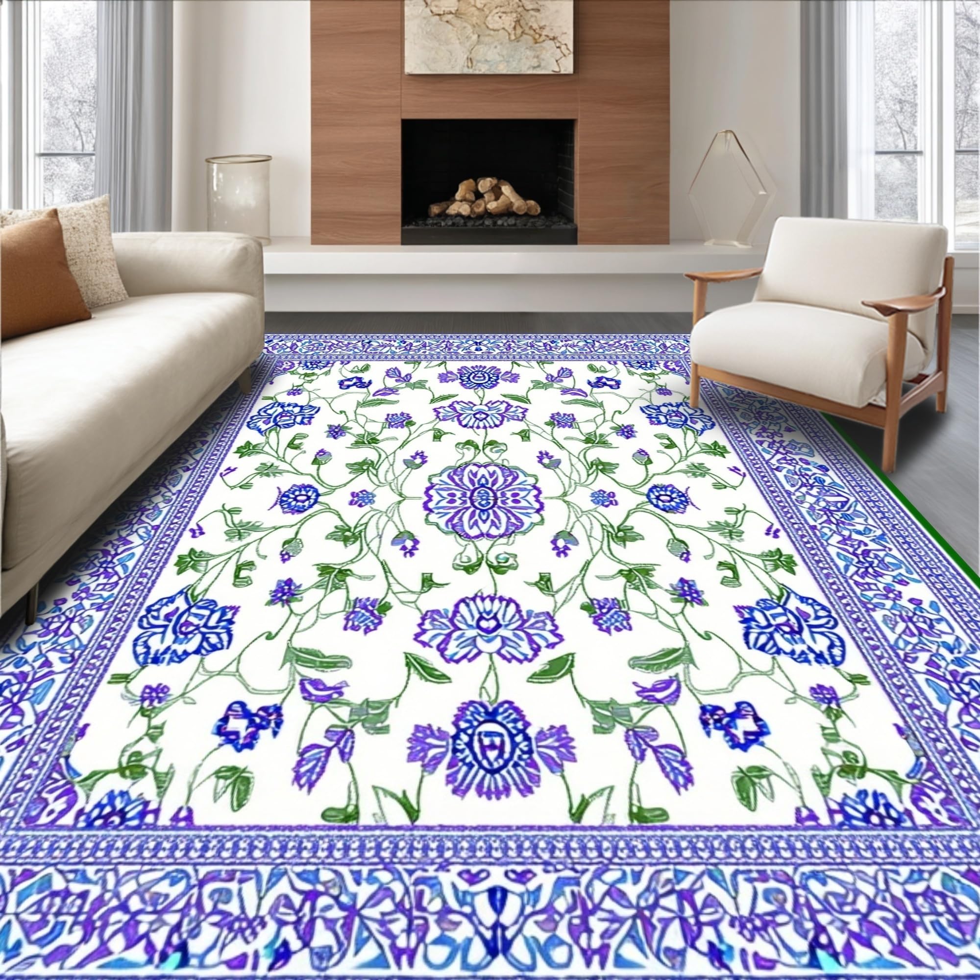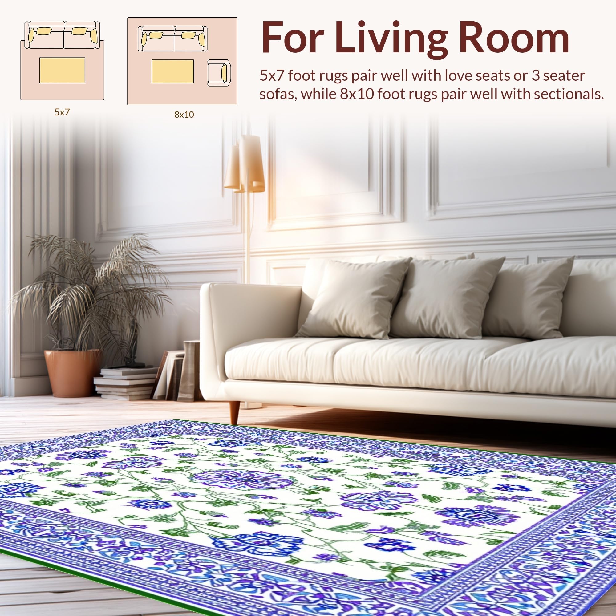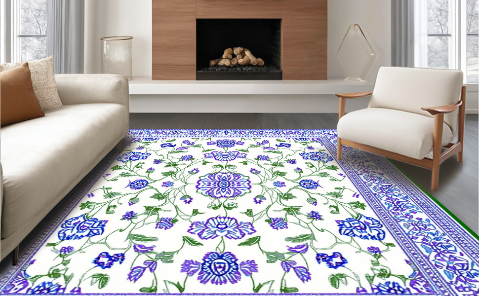 Ultra Soft Area Rug, Non Slip, Stain Resistant, Washable Area Rugs for Living Room, Bedroom, Lush Botanical Vintage Elegance(White) Overview: