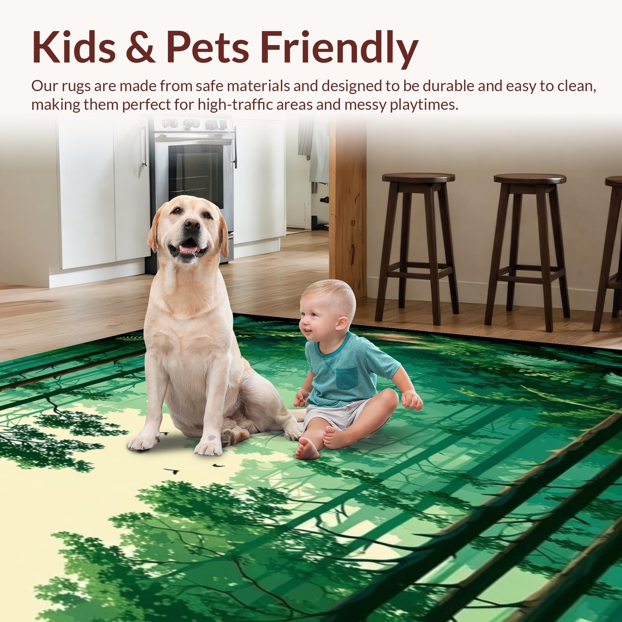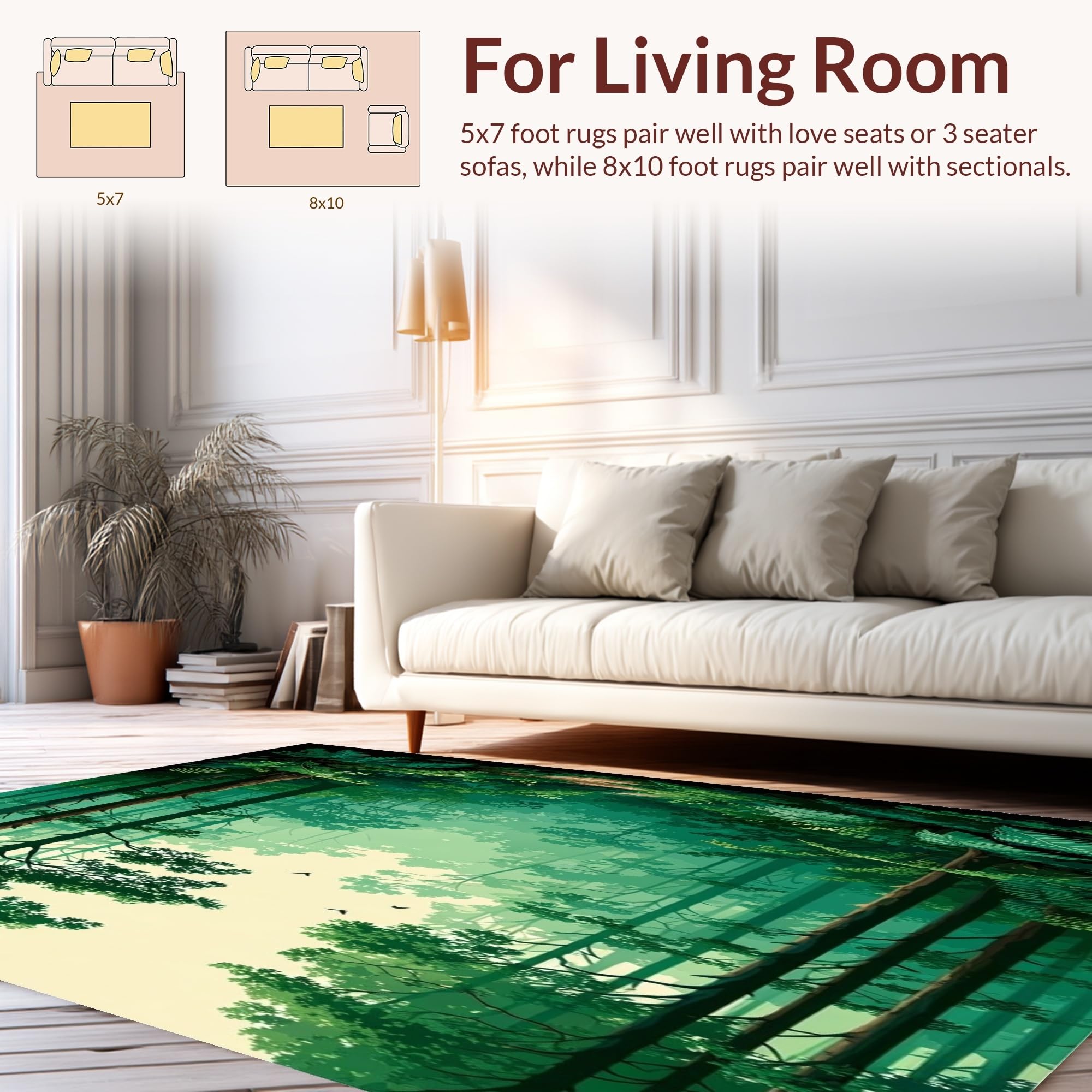 Ultra Soft Area Rug, Non Slip, Stain Resistant, Washable Area Rugs for Living Room, Bedroom, Lush Canopy Forest Green & Beige Blended Abstract(Green) Overview: